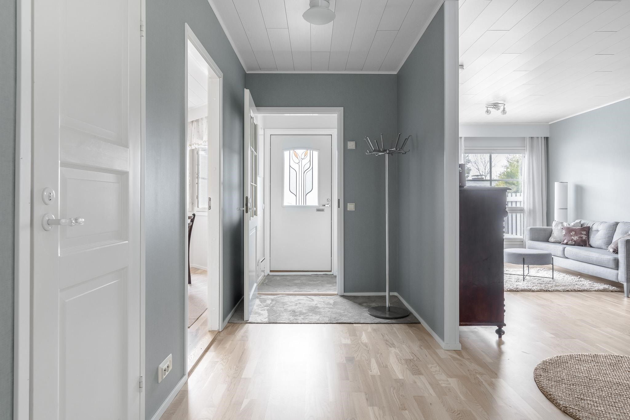 Keittiö: Parketti 2026/maali. Olohuone: Parketti 2026/maali/tapetti. Makuuhuone 1: Parketti 2026/maali/tapetti. Makuuhuone 2: Parketti 2026/maali/tapetti. Sauna: laatta/puu. Kylpyhuone: laatta/kaakeli. Eteinen: parketti. Wc: laatta/kaakeli.