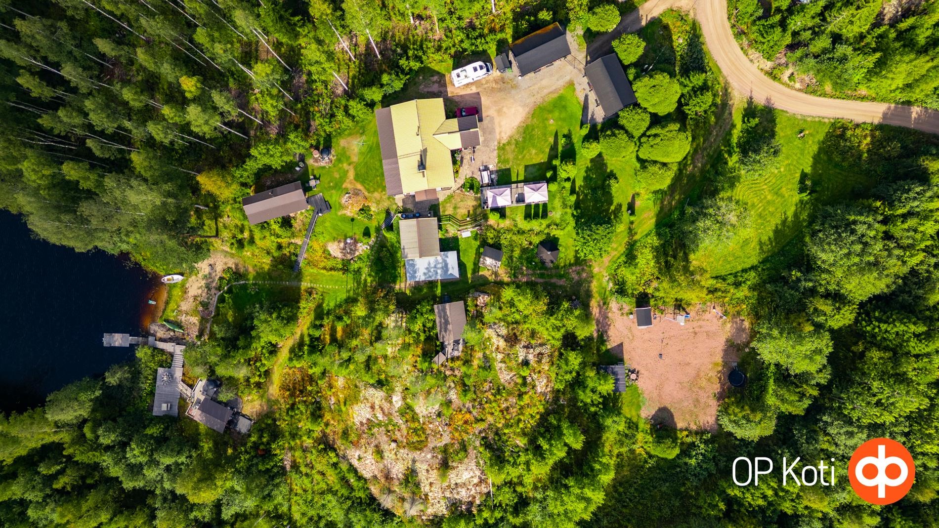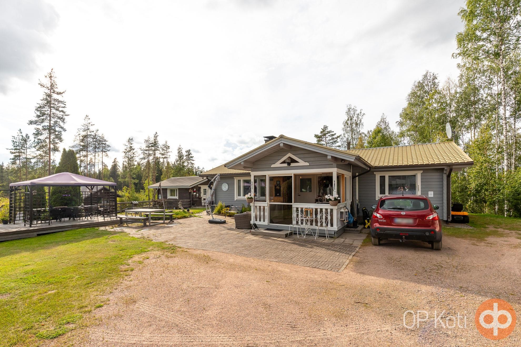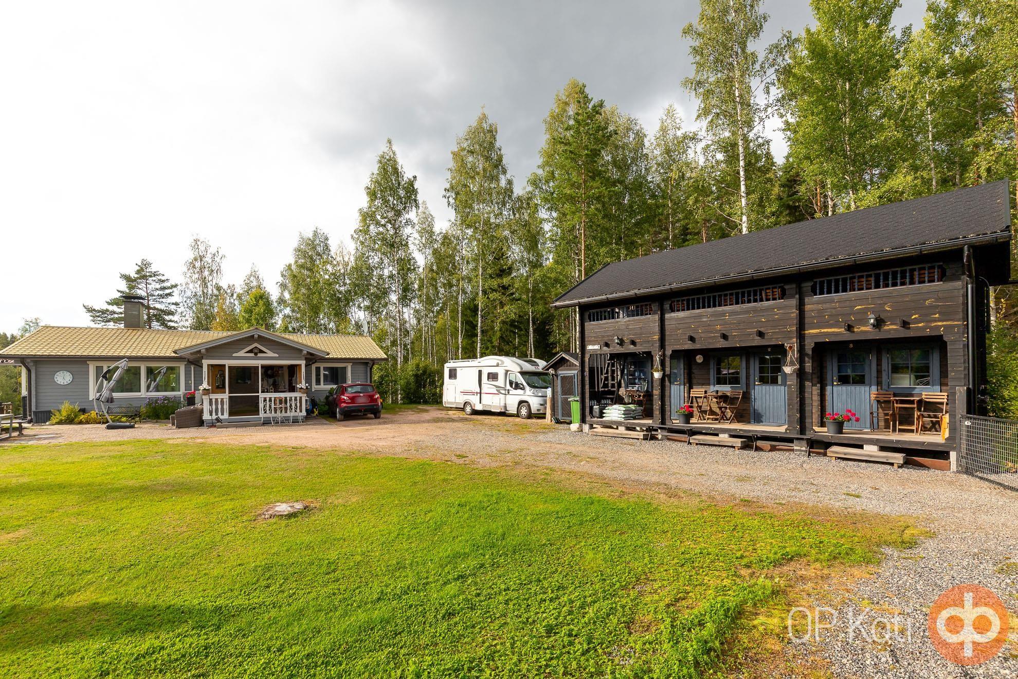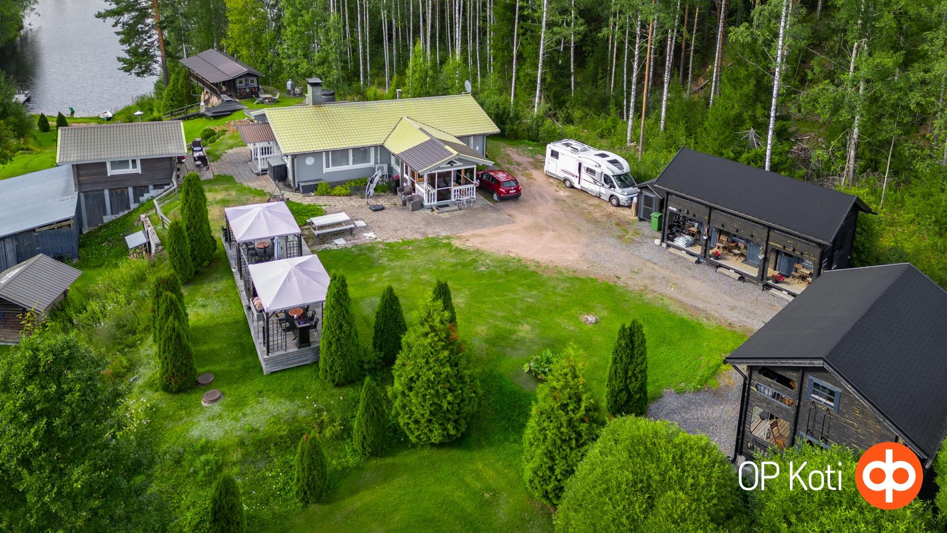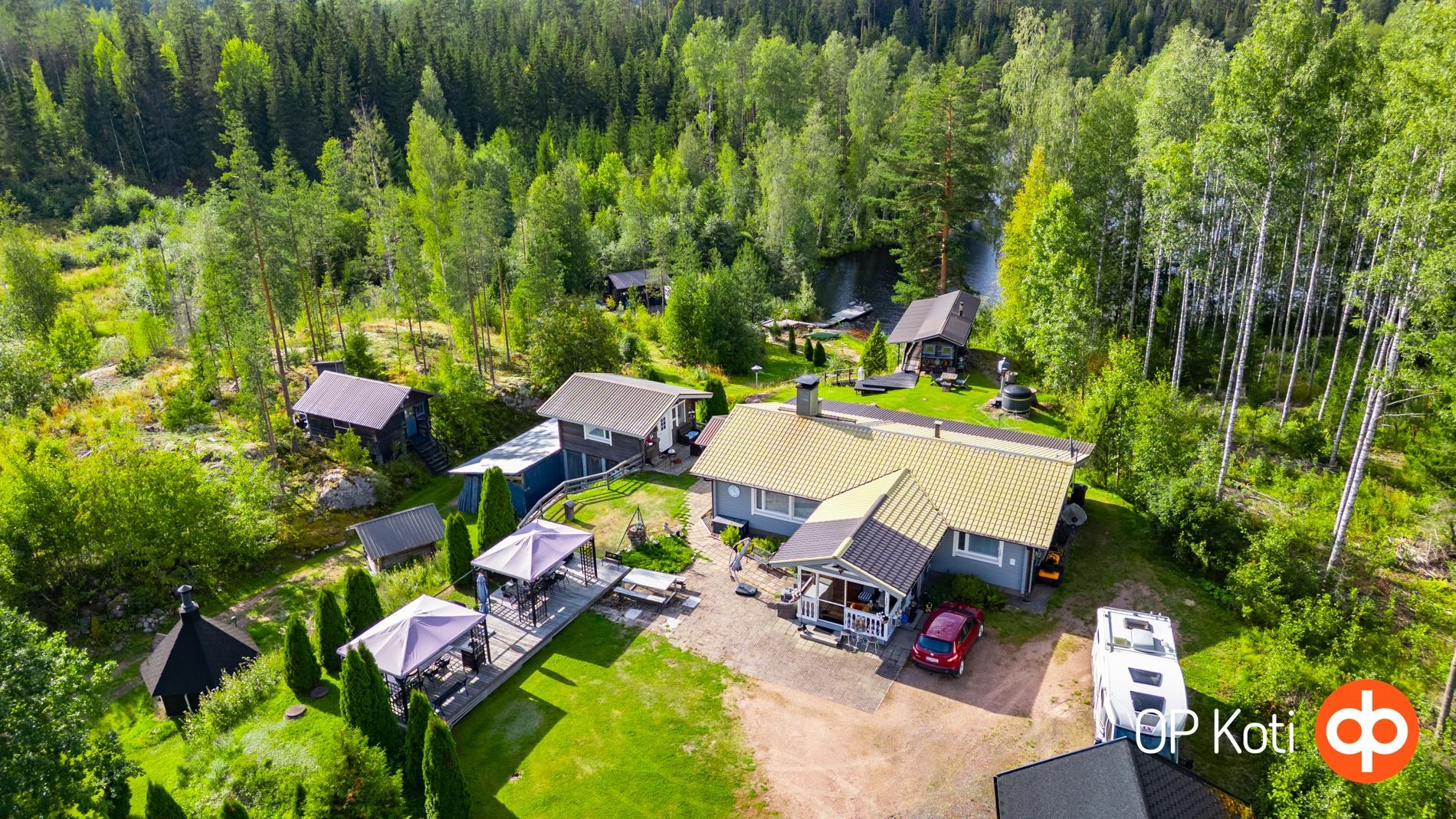 Päärakennus on rakennettu vuonna 1989 ja tarjoaa asuintilaa kahden makuuhuoneen kera. Kodin edessä ja takana sijaitsevat isot lasitetut terassit tuovat tilaa yhteiseen oleiluun. Lämmitys tapahtuu puukattilalla, joka on uusittu vuonna 2021. Kodinhoitohuoneessa, eteisessä sekä vessassa on sähköinen lattialämmitys. Talon kuntoa on ylläpidetty hyvin: ikkunat ja ovet on uusittu vuonna 2021, varaava takka vuonna 2020 ja ilmalämpöpumppu asennettu vuonna 2019. Päätalon vieressä sijaitsee vierastalo, jossa on oma vesivessa, ja päätalon lämmitysverkosto on yhteydessä vierastalon kanssa.