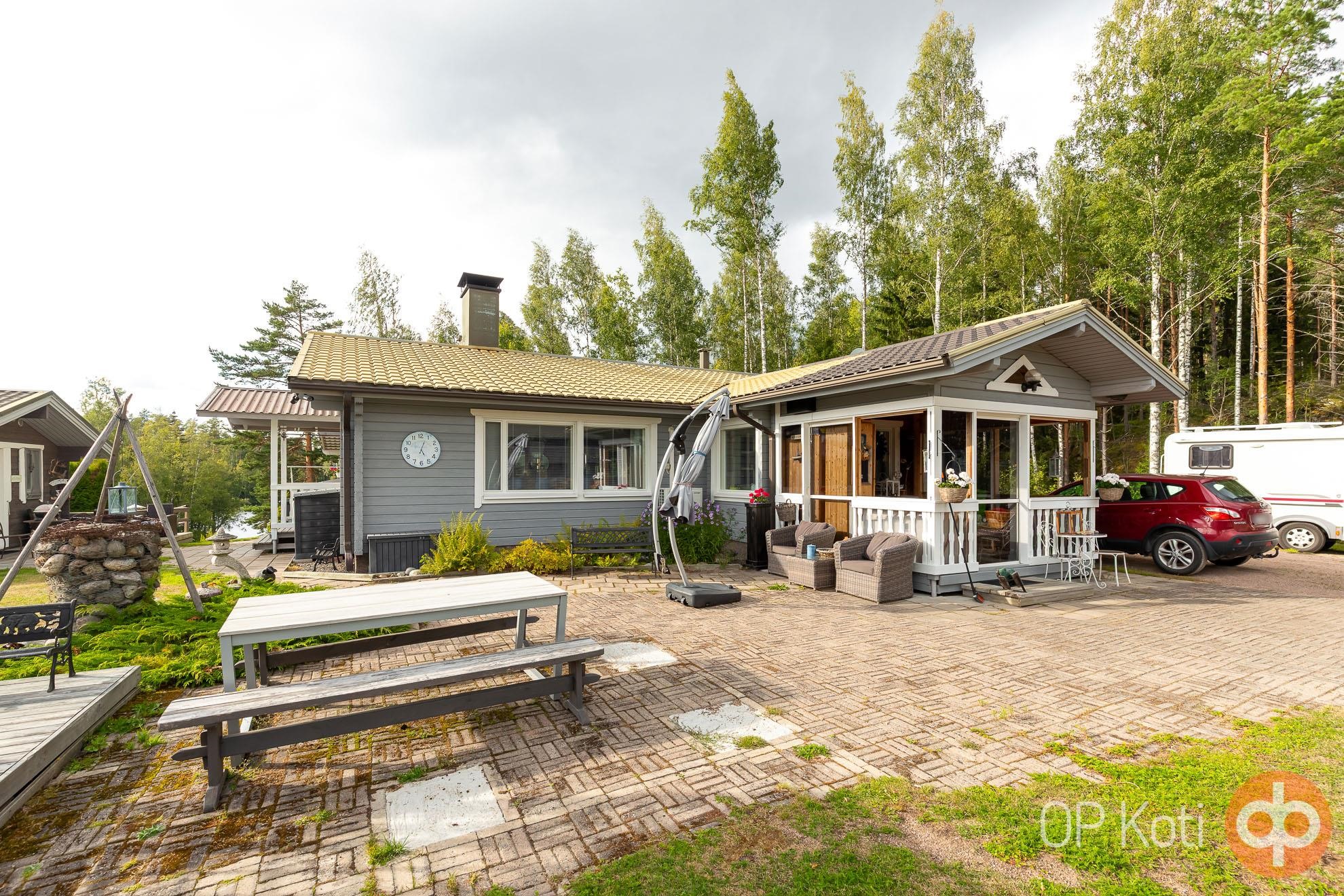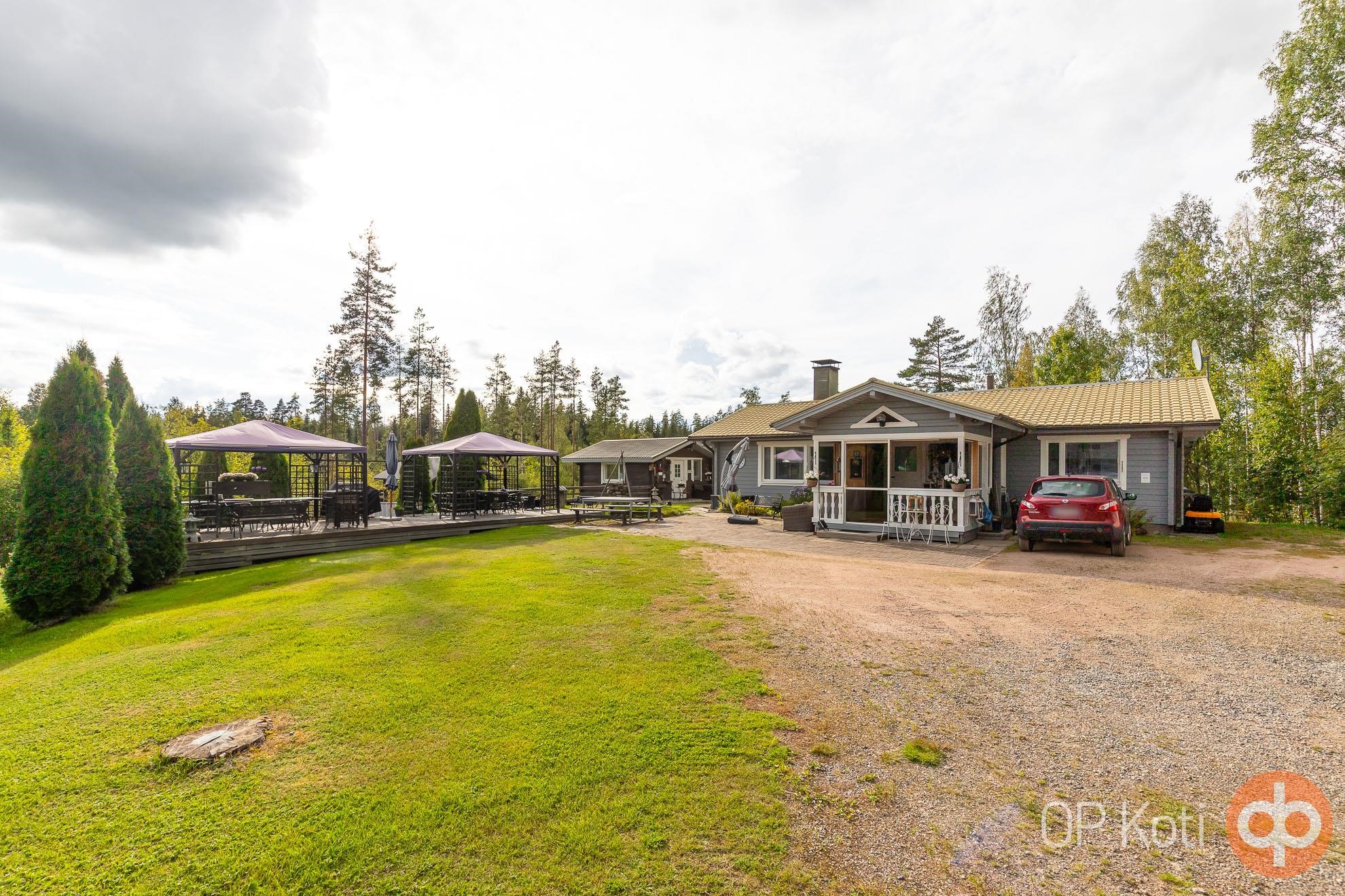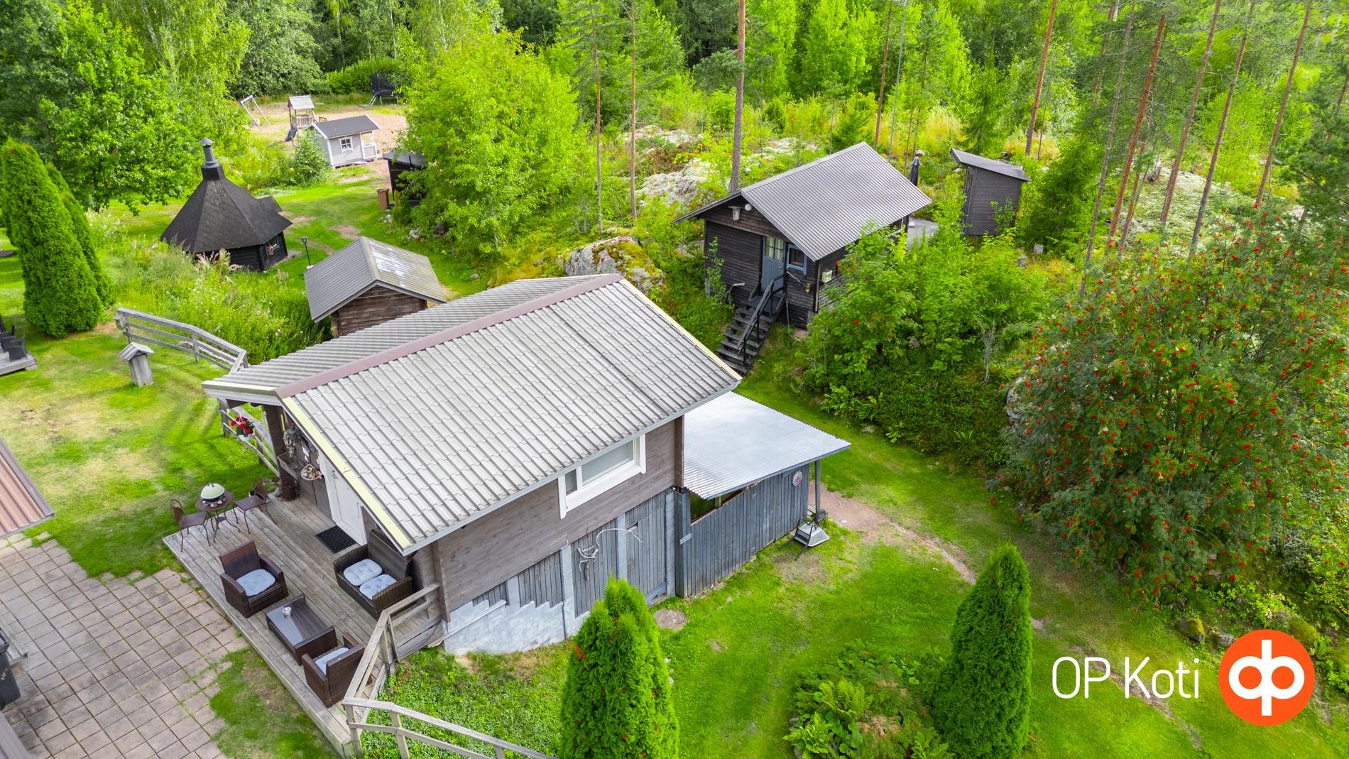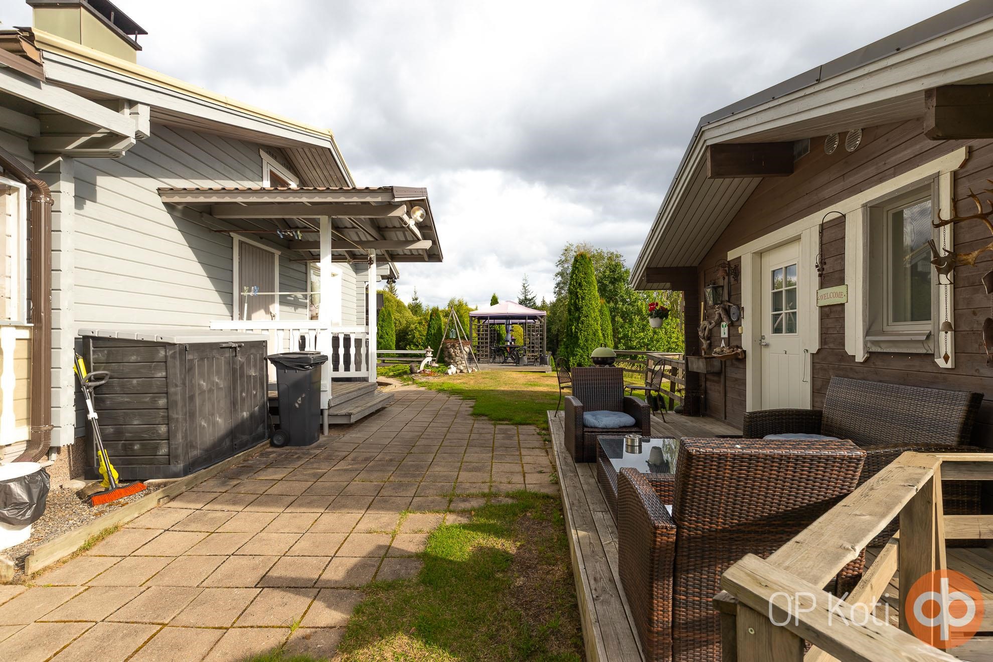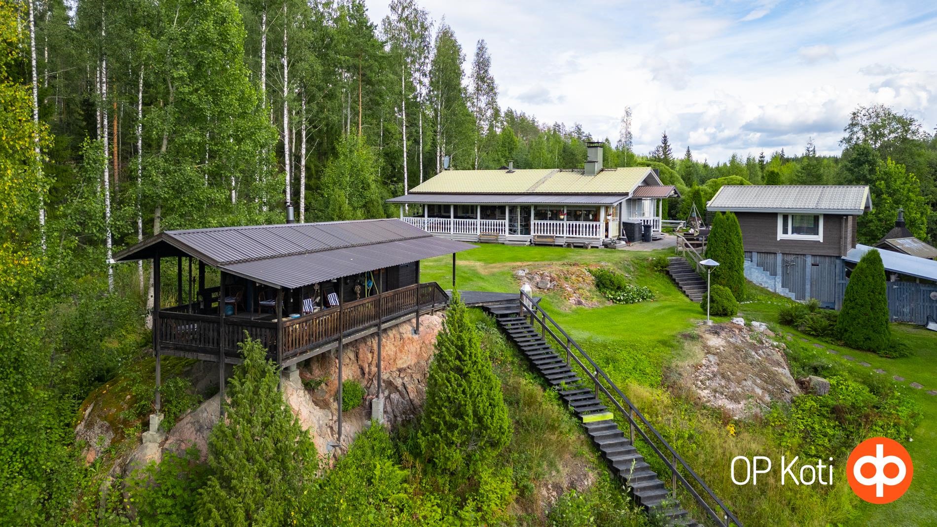 Päärakennus on rakennettu vuonna 1989 ja tarjoaa asuintilaa kahden makuuhuoneen kera. Kodin edessä ja takana sijaitsevat isot lasitetut terassit tuovat tilaa yhteiseen oleiluun. Lämmitys tapahtuu puukattilalla, joka on uusittu vuonna 2021. Kodinhoitohuoneessa, eteisessä sekä vessassa on sähköinen lattialämmitys. Talon kuntoa on ylläpidetty hyvin: ikkunat ja ovet on uusittu vuonna 2021, varaava takka vuonna 2020 ja ilmalämpöpumppu asennettu vuonna 2019. Päätalon vieressä sijaitsee vierastalo, jossa on oma vesivessa, ja päätalon lämmitysverkosto on yhteydessä vierastalon kanssa.
