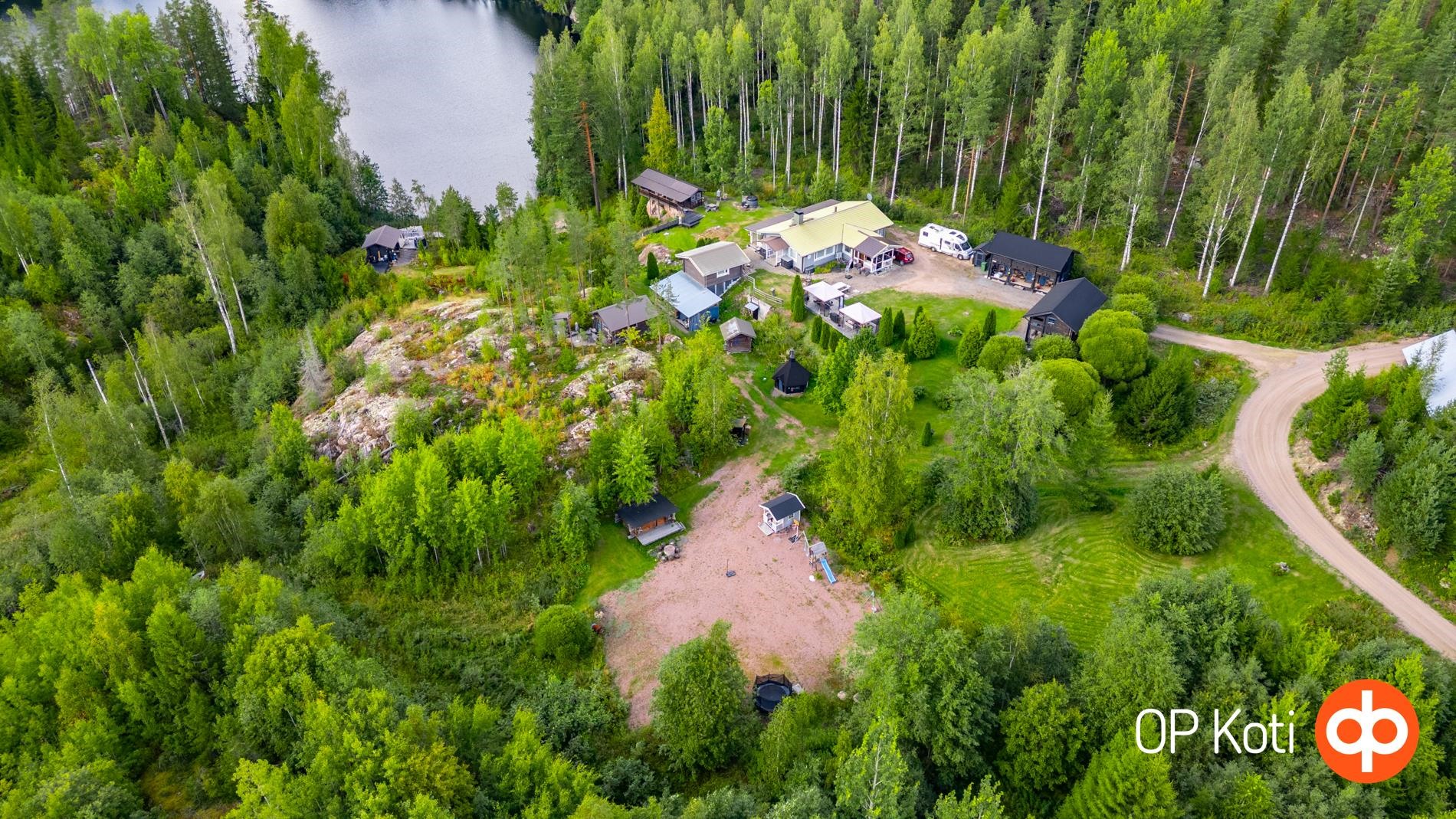 This 5.5-hectare property located in Suomenniemi, Mikkeli offers modern living and includes several additional buildings excellently suited for accommodation purposes. The private shoreline on Lahnalampi ensures that you can enjoy the beauty of the water year-round, and access routes open toward Kuolimo from the northern side of the pond depending on the season.