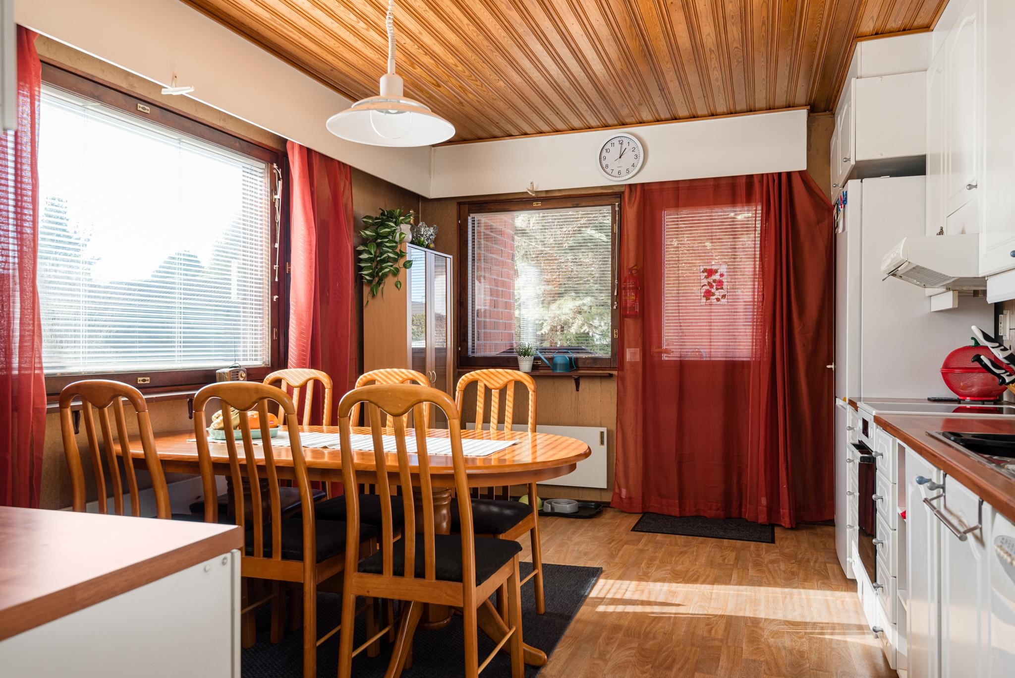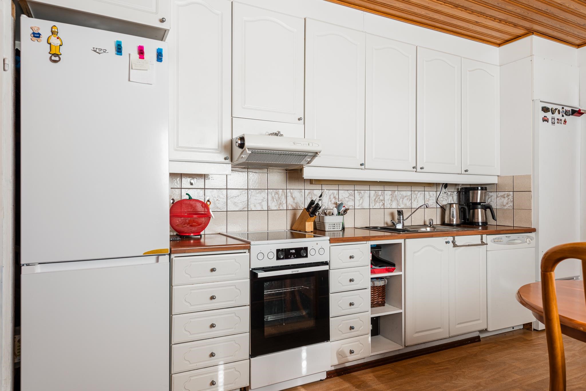 - Jääkaappipakastin, keraaminen liesi, liesituuletin, astianpesukone, kiinteät valaisimet.