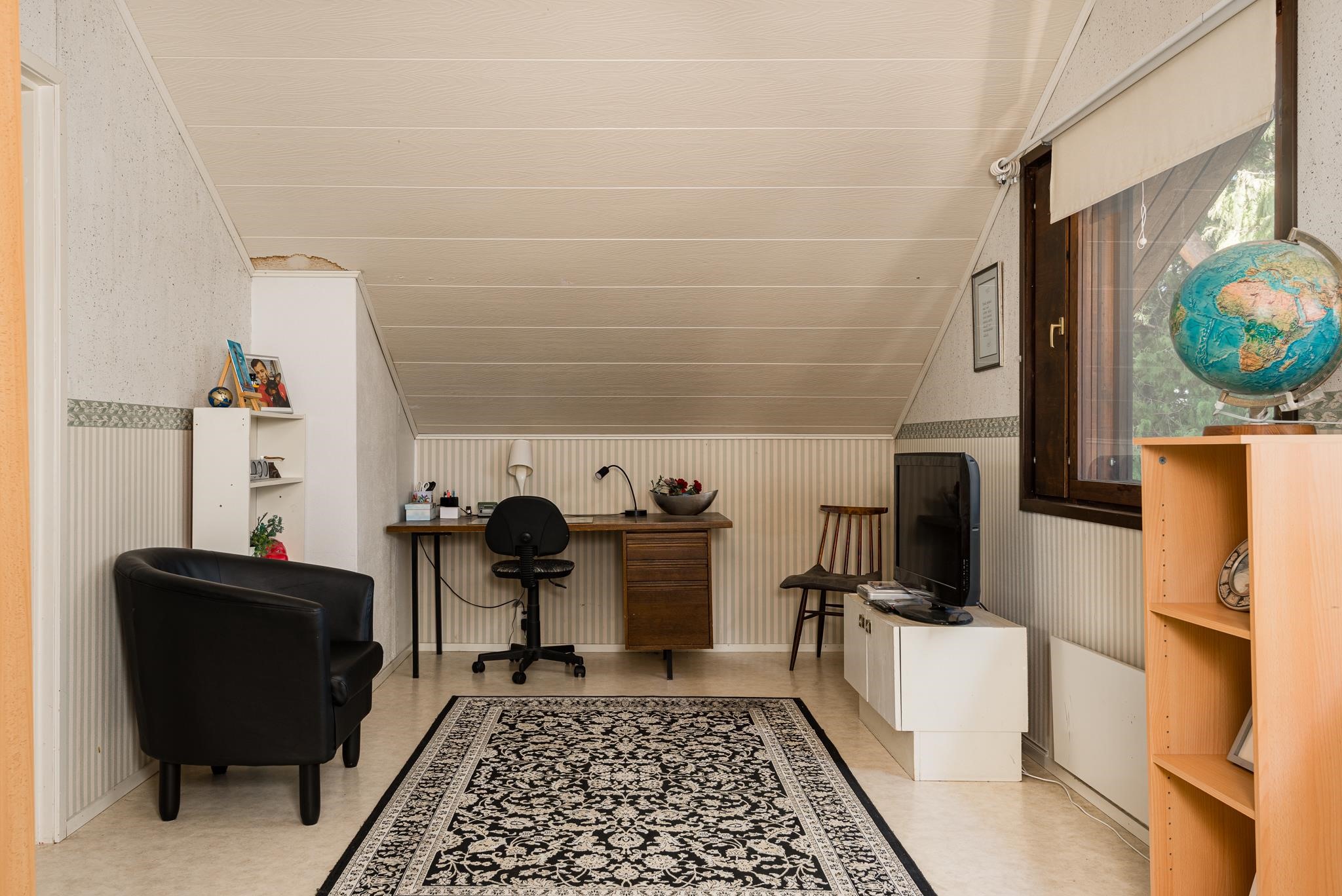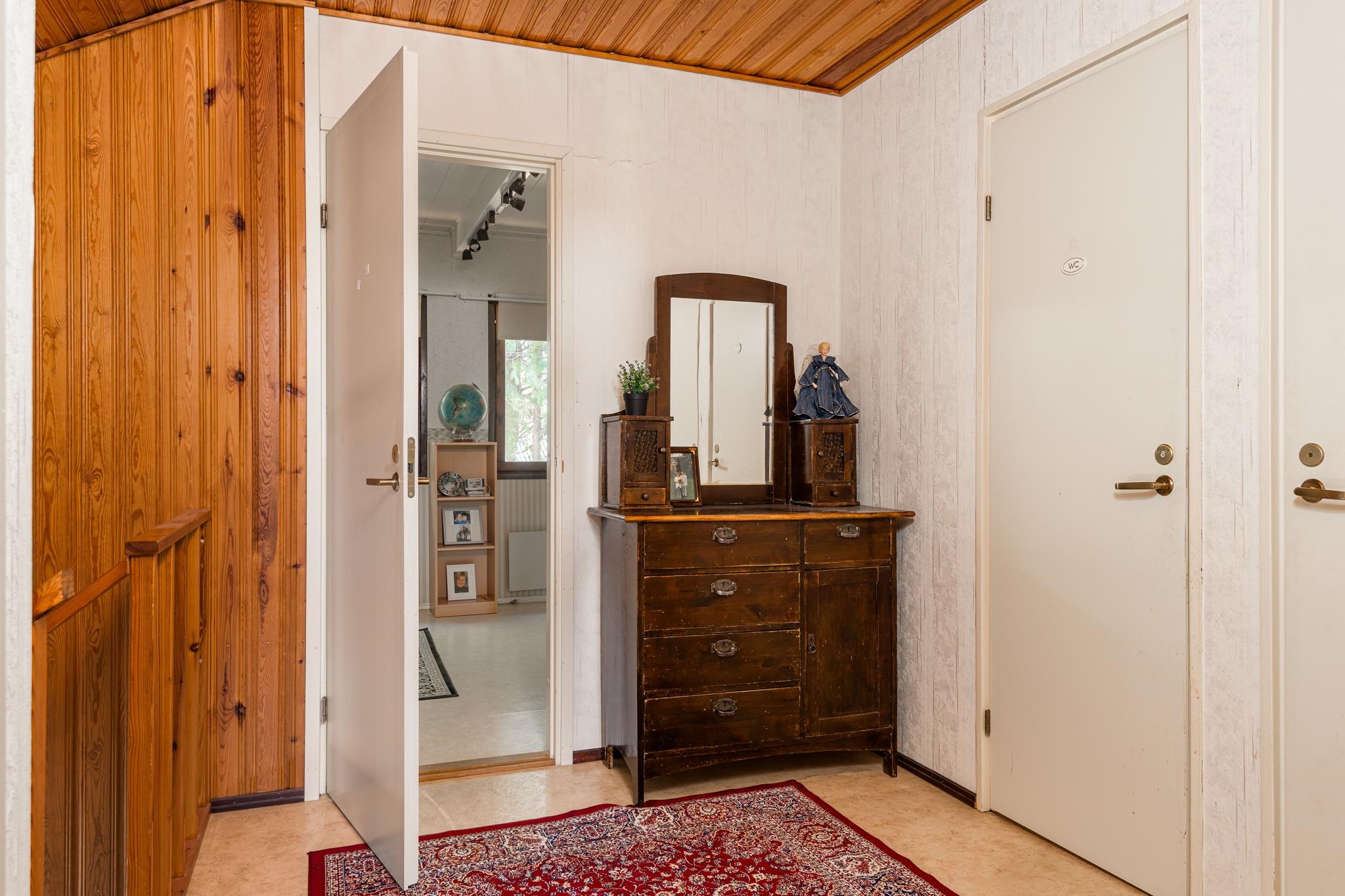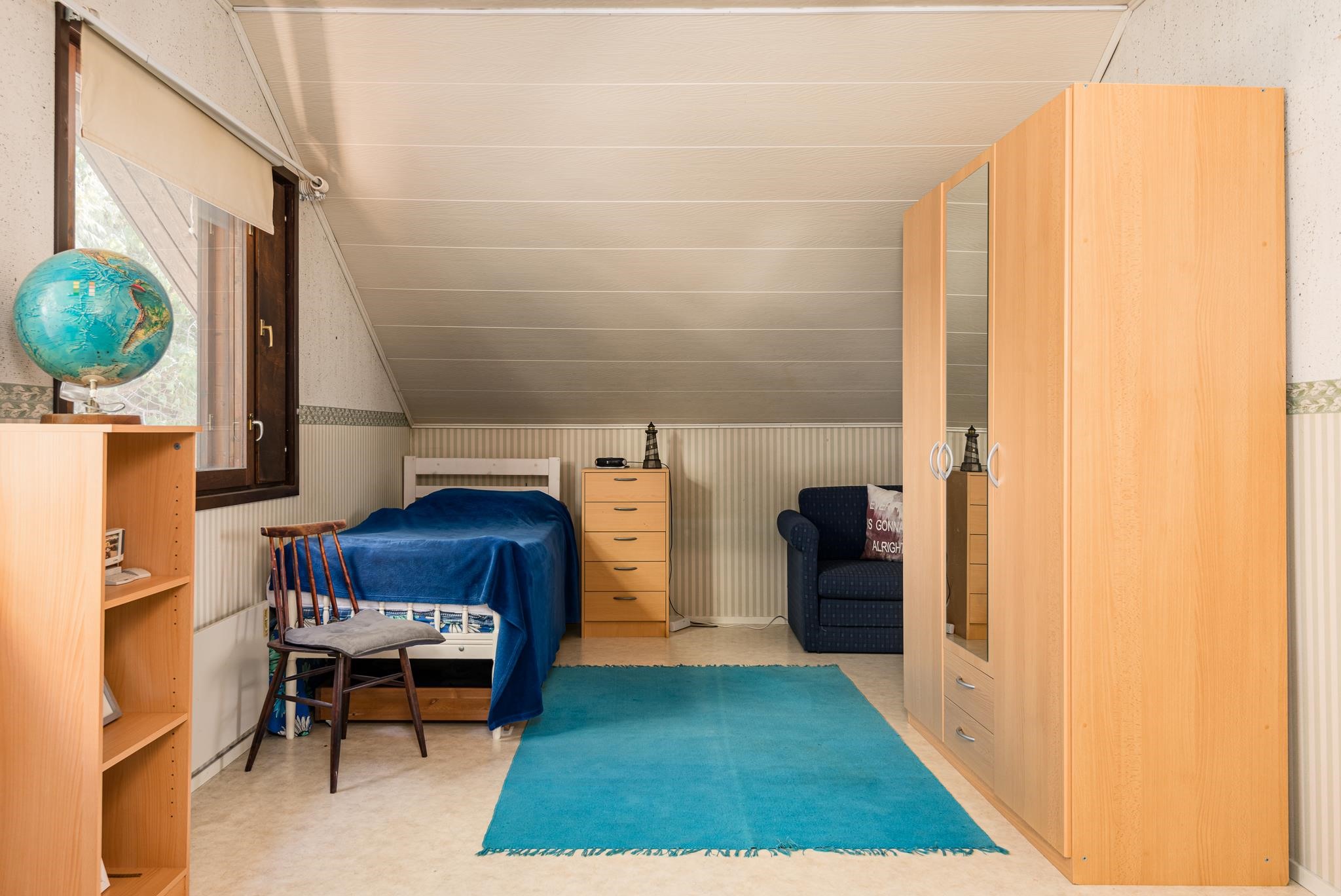Kodissa on tällä hetkellä kolme makuuhuonetta, ja yläkerran tilava huone on helposti jaettavissa kahdeksi, jolloin saat tarvittaessa neljännen makuuhuoneen. Toimiva pohjaratkaisu tekee arjesta sujuvaa, ja molemmista kerroksista löytyy oma erillinen wc.