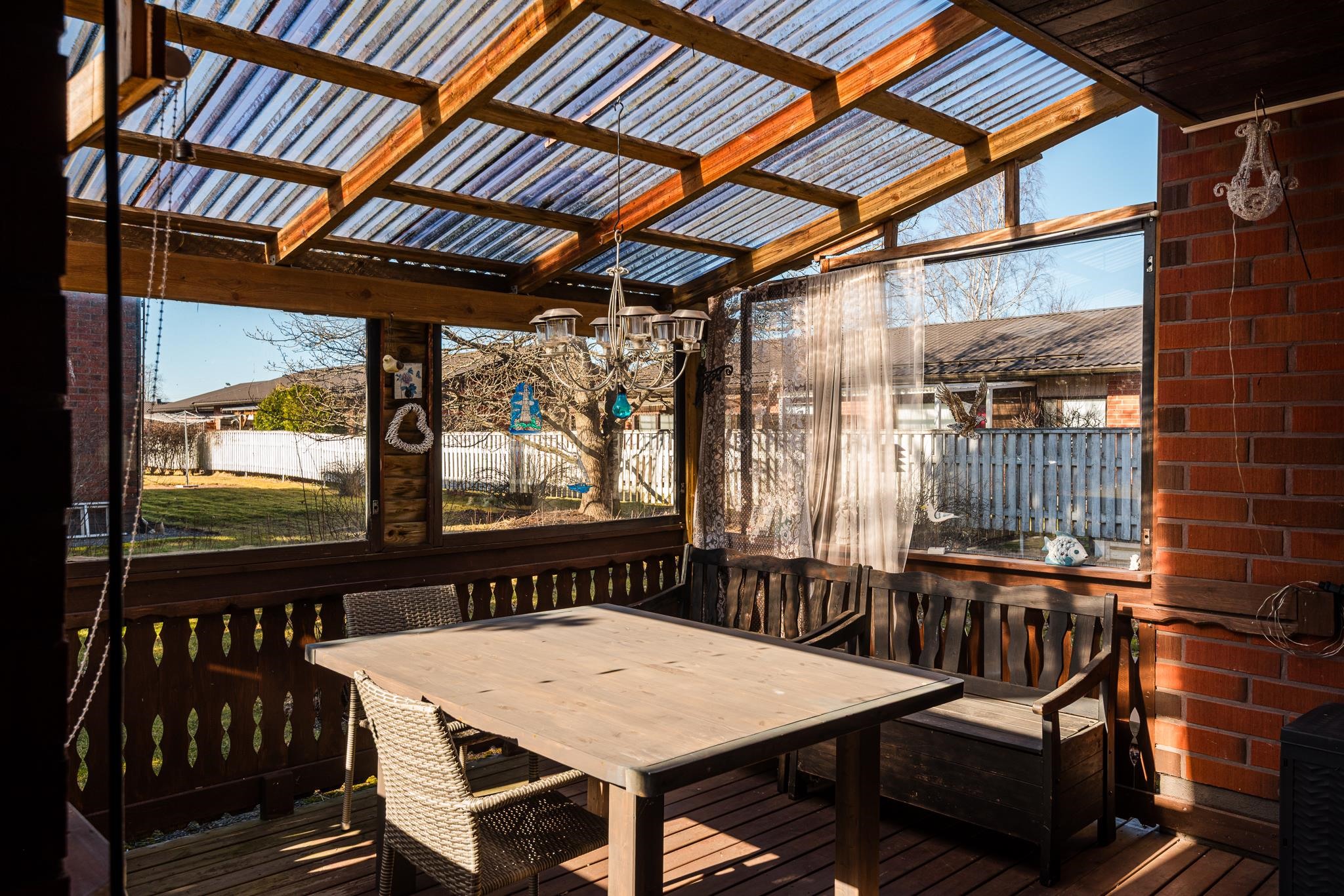 Pihapiiri tarjoaa turvallisen ympäristön esimerkiksi lasten leikkeihin. Lisäksi tontilta löytyy tilava erillinen autotallirakennus sekä autokatos.