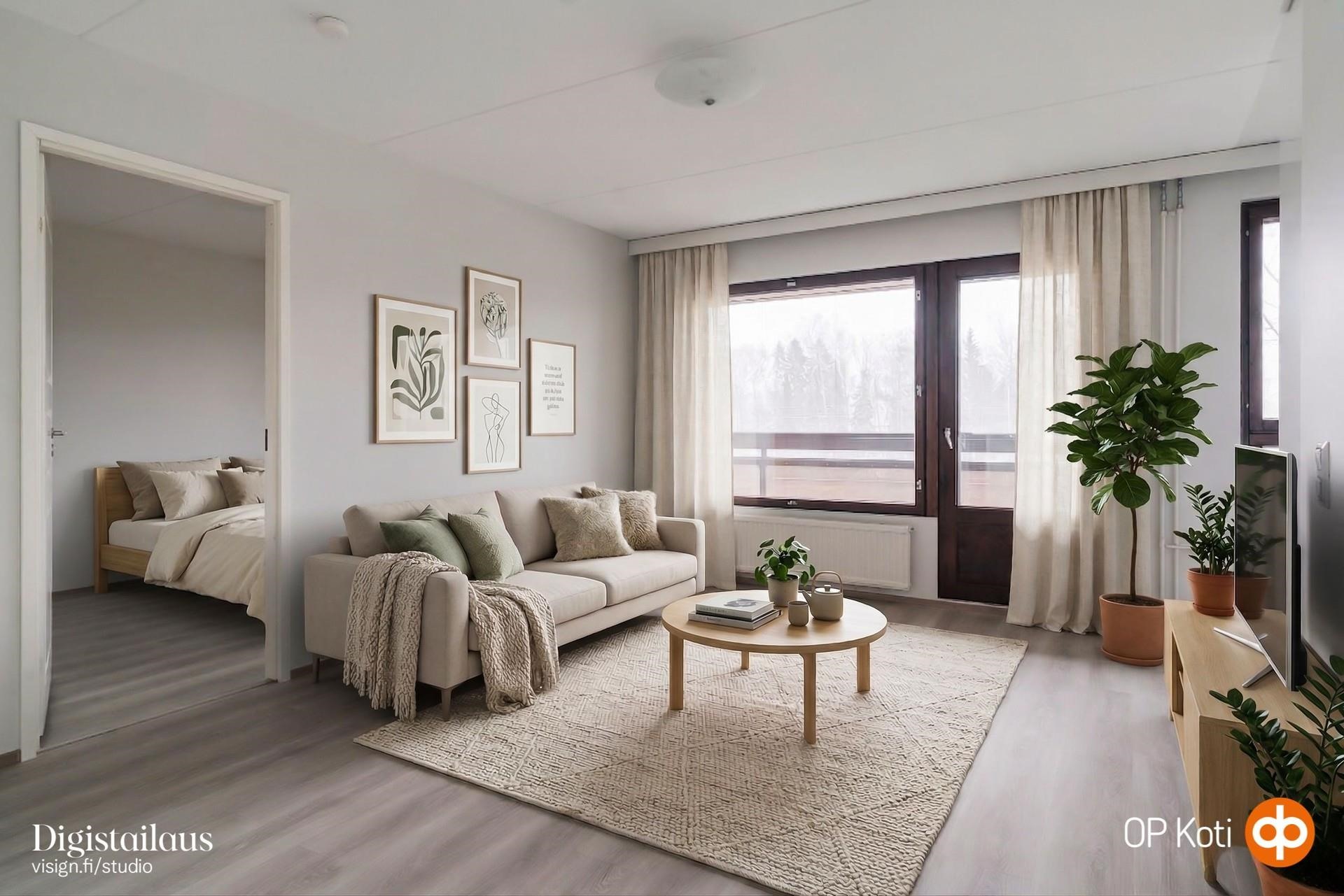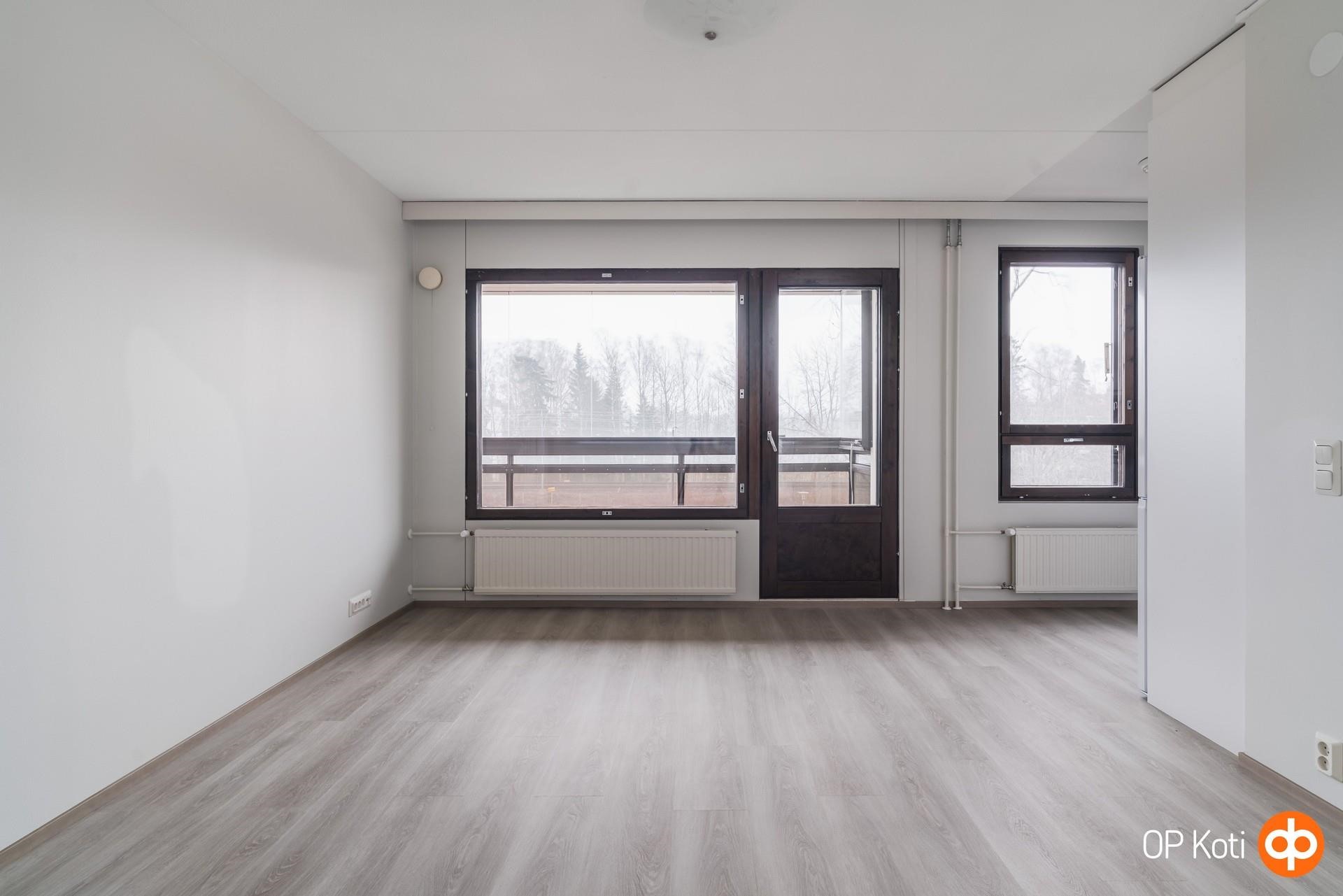 Tämä muuttovalmis koti hurmaa erityisesti laajoilla, kokonaan uusituilla keittiö- ja kylpyhuoneremonteilla sekä tyylikkäästi uudistetuilla saunatiloilla. Kaikki pinnat ja lattiat on päivitetty erikseen vuonna 2026, mikä viimeistelee kodin raikkaan ja modernin ilmeen. Asunnon kohokohta on poikkeuksellisen suuri lasitettu parveke, joka toimii todellisena lisähuoneena suurimman osan vuotta. Sisällä on miellyttävän hiljaista, liikenteen äänet eivät kantaudu asuntoon lainkaan. Taloyhtiö on hyvässä kunnossa ja suuret taloyhtiöremontit, kuten julkisivut ja parvekkeet, on toteutettu vuonna 2023. Arki sujuu Myyrmäen kattavien palveluiden äärellä, ja Louhelan juna-asema aivan vieressä takaa nopeat yhteydet Helsinkiin ja koko pääkaupunkiseudulle.