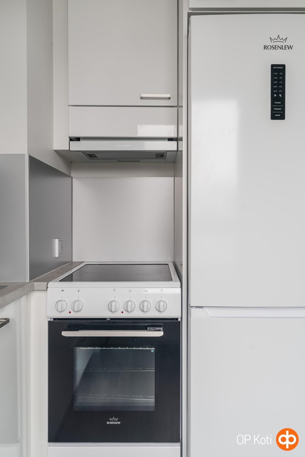 - Jääkaappipakastin, keraaminen liesi, liesituuletin (aktiivihiilisuodatin), astianpesukone, kaapistot, kiinteät valaisimet.