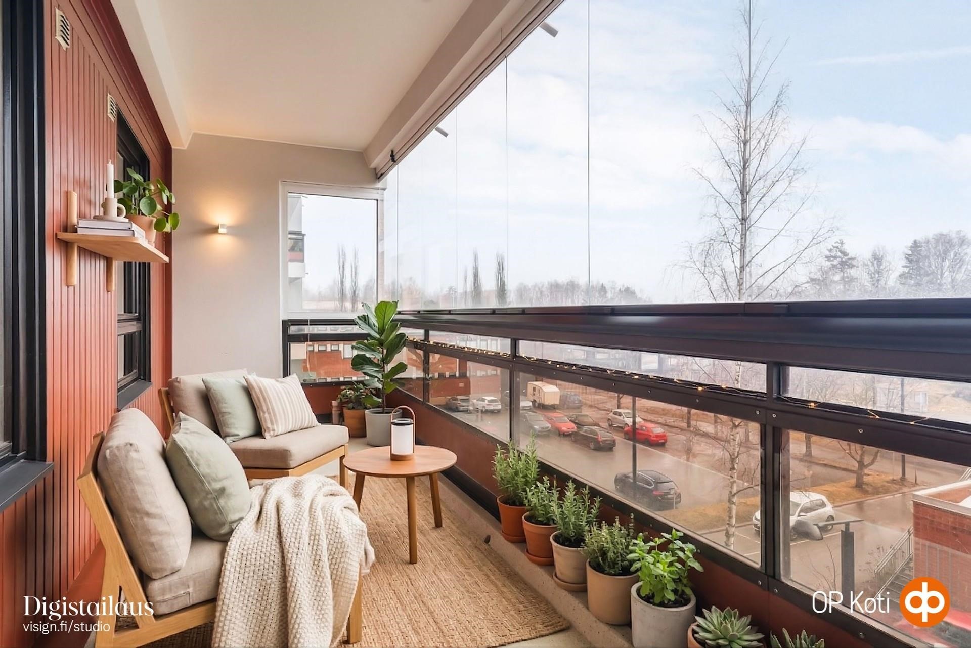 - Parveke ja ikkunat koilliseen.