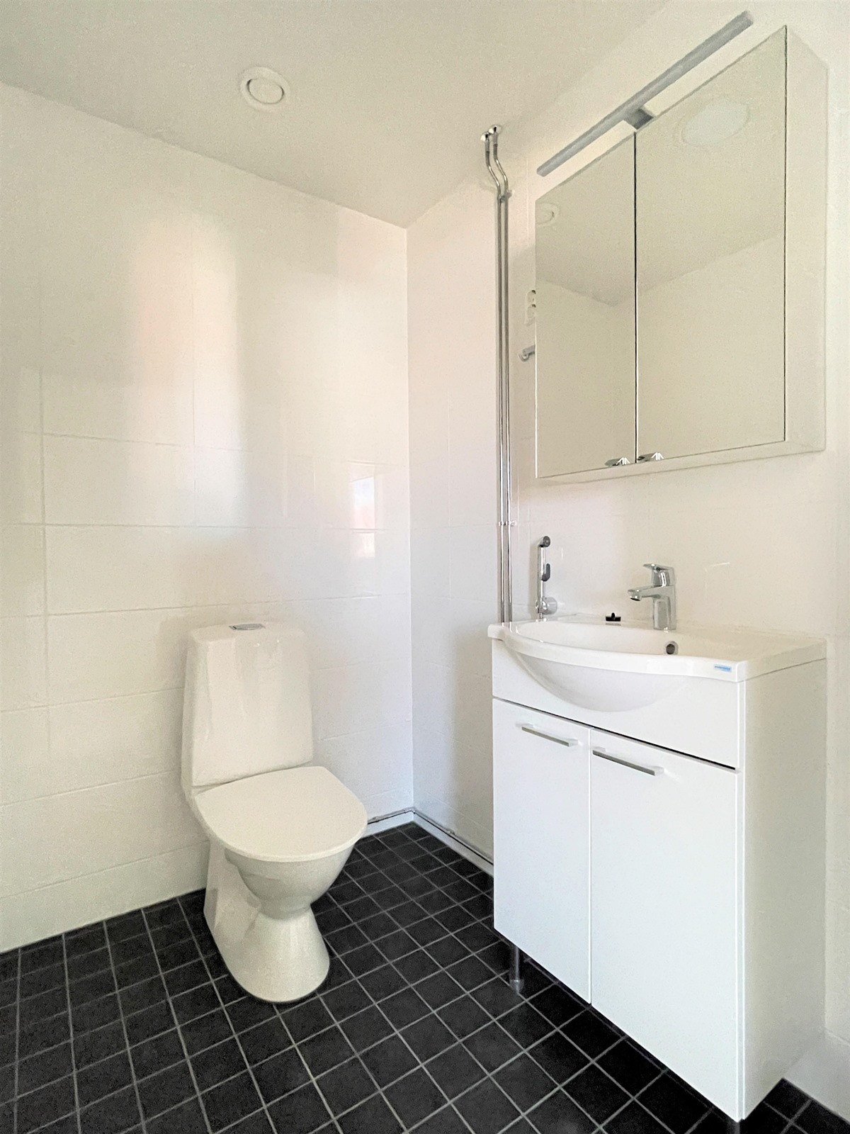 Hienolla sijainnilla, uudehkossa talossa, valoisa saunallinen kolmio.