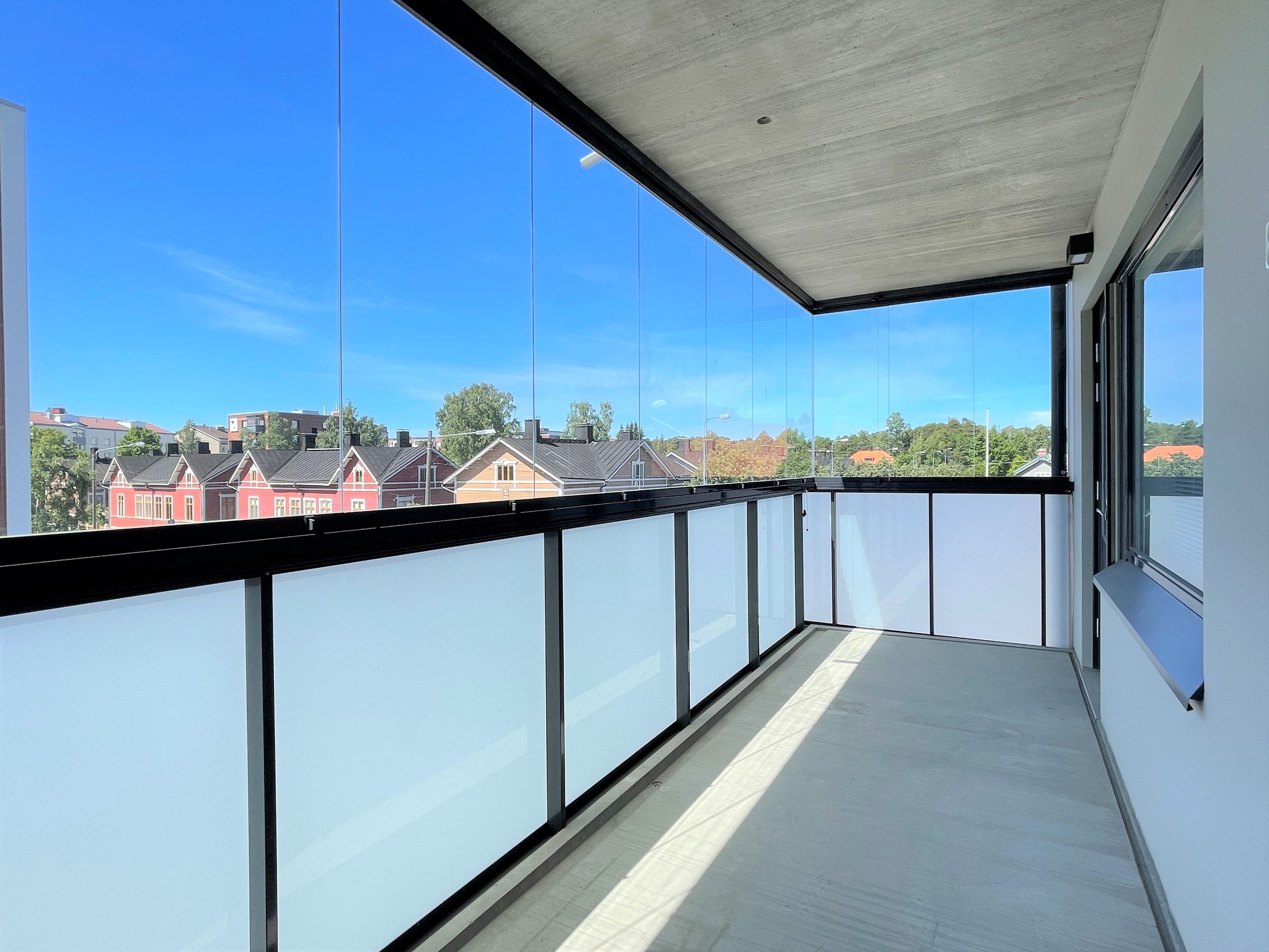 Asunnossa on vaaleat pinnat. Yhtenäinen keittö/olohuonetila, iso lasitettu länsiparveke, erillinen wc, tilava saunaosasto sekä kaksi makuuhuonetta ja vaatehuone mukailevat nykyaikaista, toimivaa pohjaratkaisua.