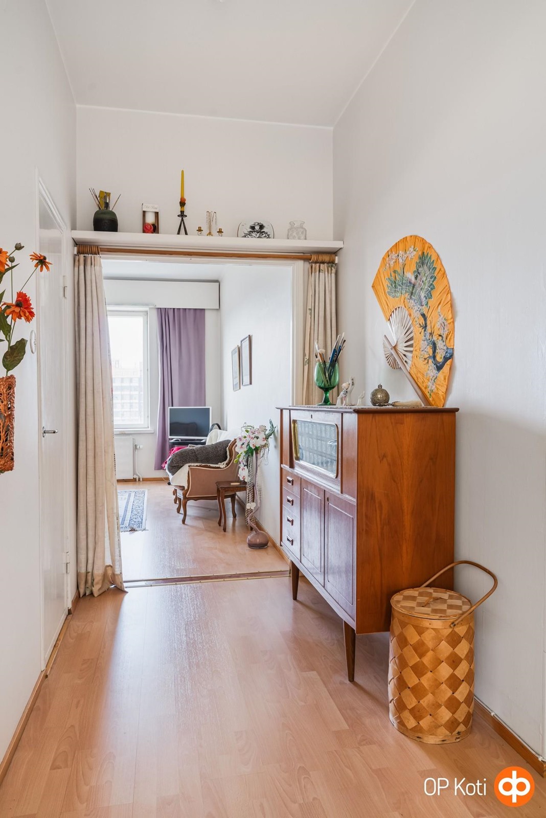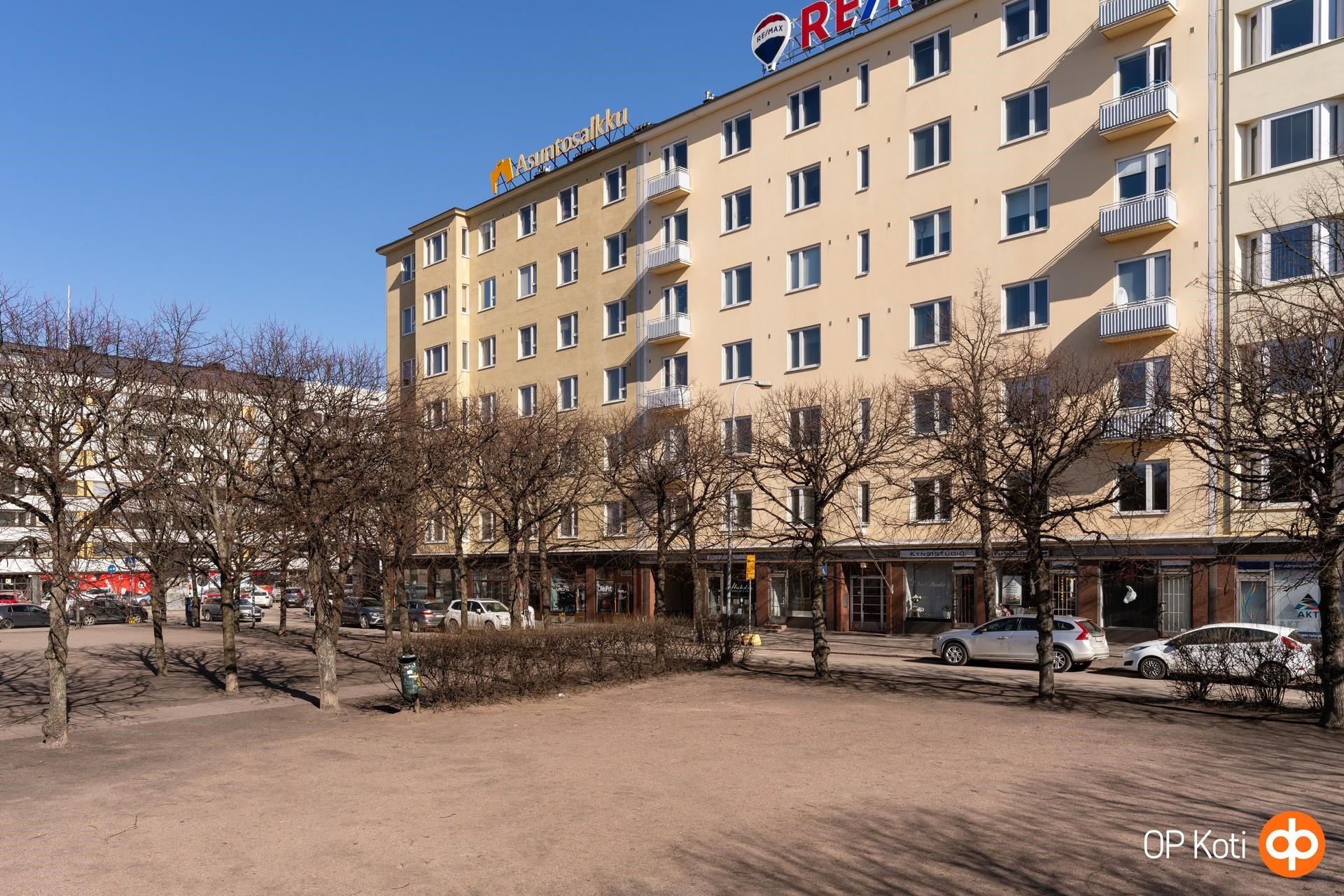 Tilava viidennen kerroksen läpitalon huoneisto huippusijainnilla Hakaniemen torin laidalta.Tämä on monien mahdollisuuksien koti. Upeat, vapaat näkymät Hakaniemen torille ja pilkahdus aina Tokoin rantaan saakka sekä suojaisalle sisäpihalle. Kaikki Hakaniemen palvelut lähietäisyydellä. Erikoisuutena alakerran kuntokeskuksen käyttö taloyhtiön osakkaille edulliseen hintaan. Metro, ratikka ja bussit mahdollistavat vaivattoman liikkumisen eri suuntiin.