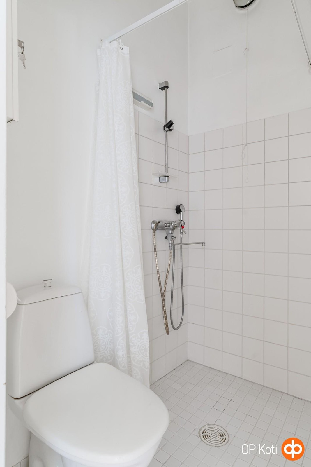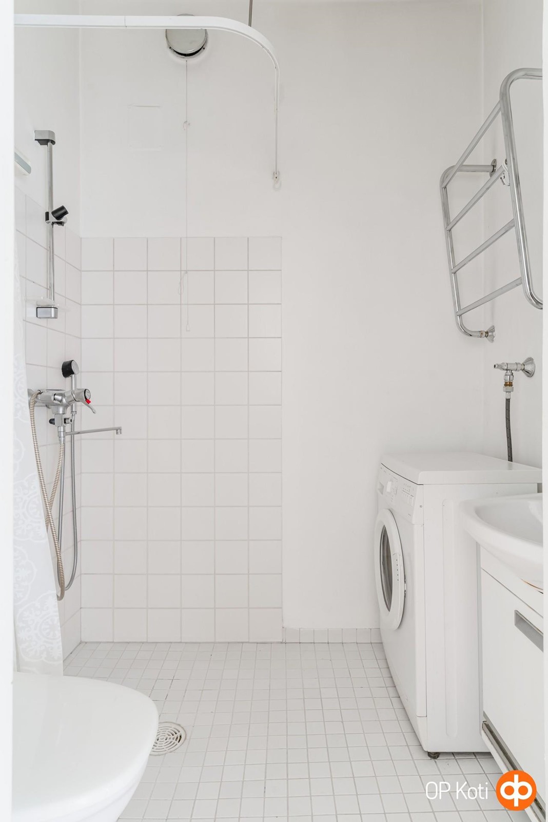 - Kylpyhuone, suihku, peilikaappi, allaskaappi, kiinteät valaisimet.