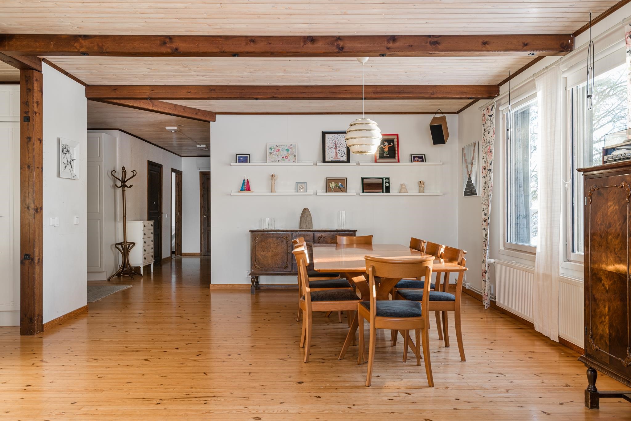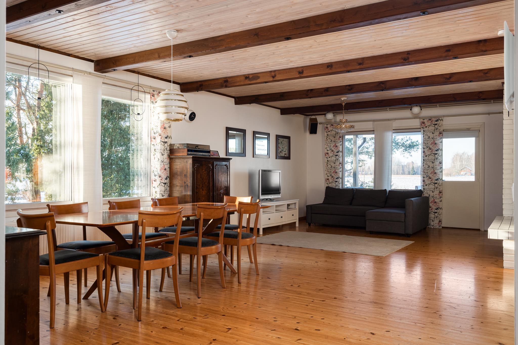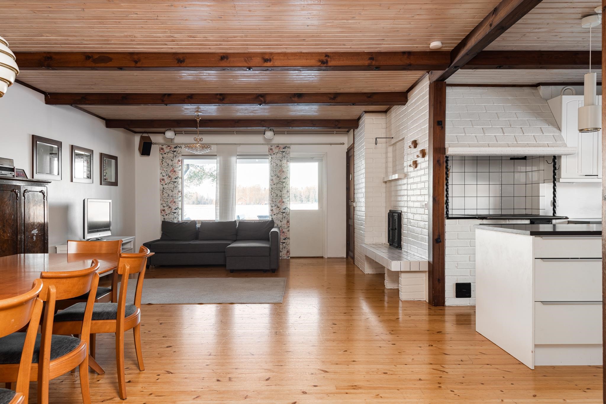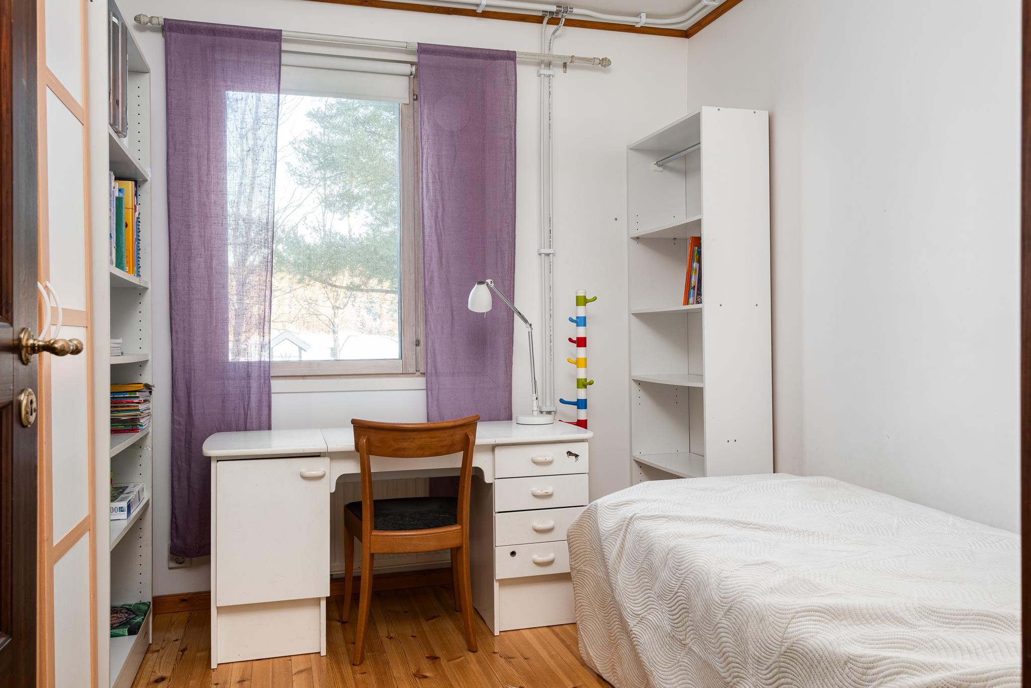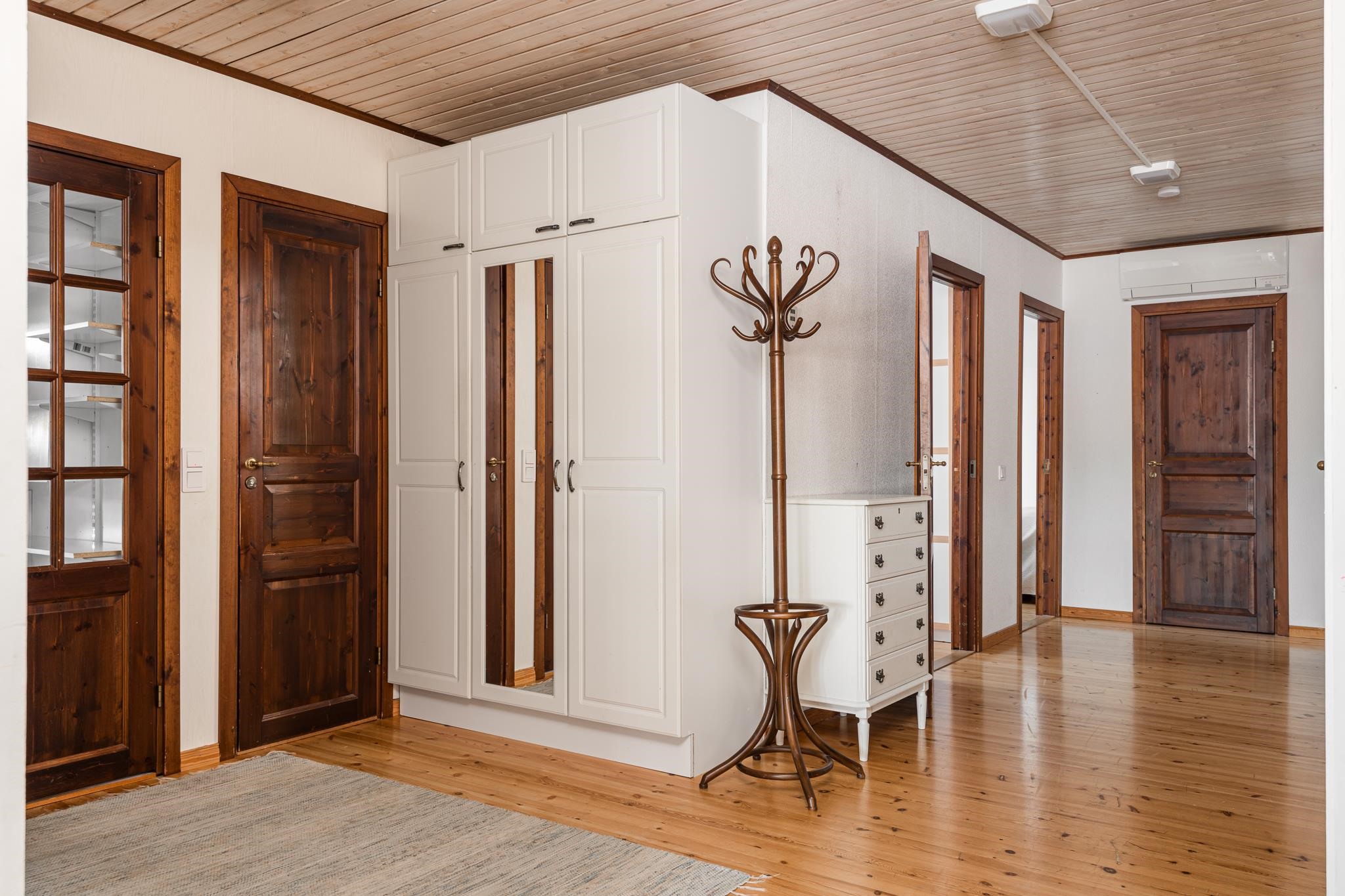 Keittiö: puulattia, maali. Olohuone: puulattia, maali. Makuuhuone 1: puulattia, maali. Makuuhuone 2: puulattia, maali. Makuuhuone 3: puulattia, maali/tapetti. Sauna: laatta, puu. Kylpyhuone: laatta, laatta. Eteinen: puulattia, tapetti. Wc: laatta, laatta/tapetti. vaatehuone: puulattia, maali.
