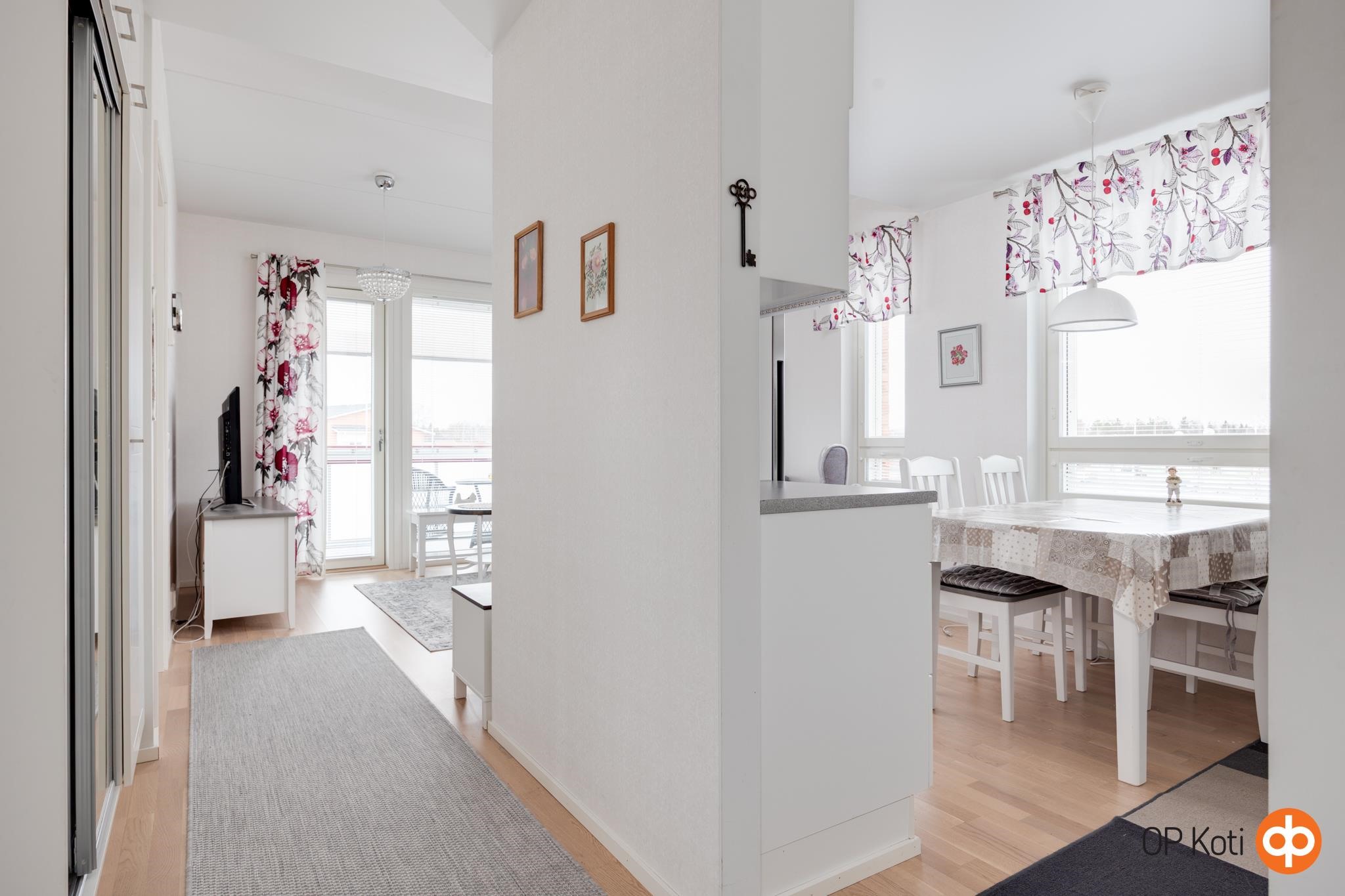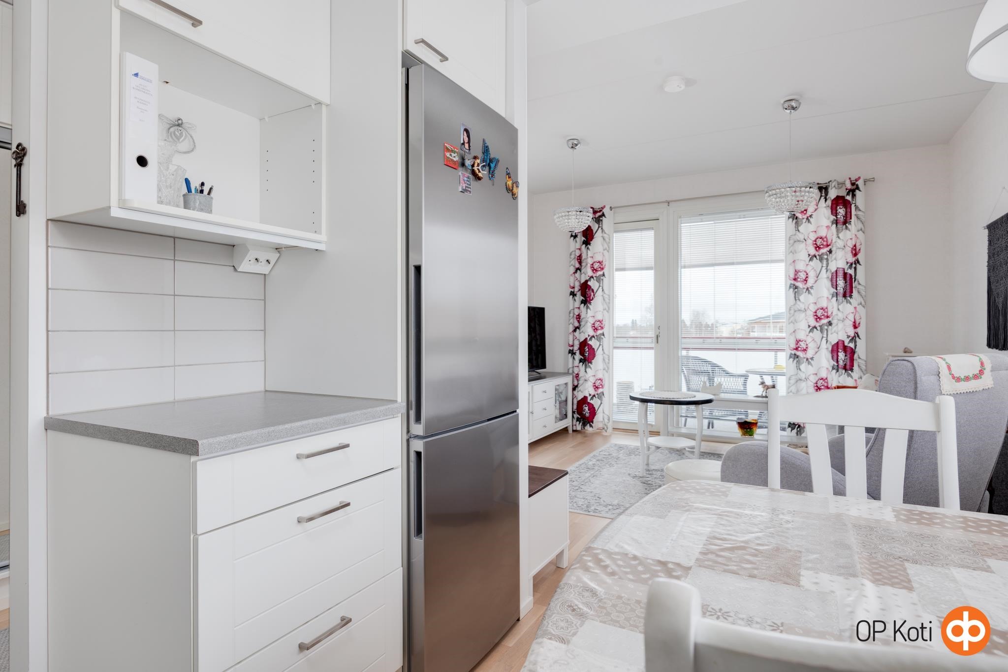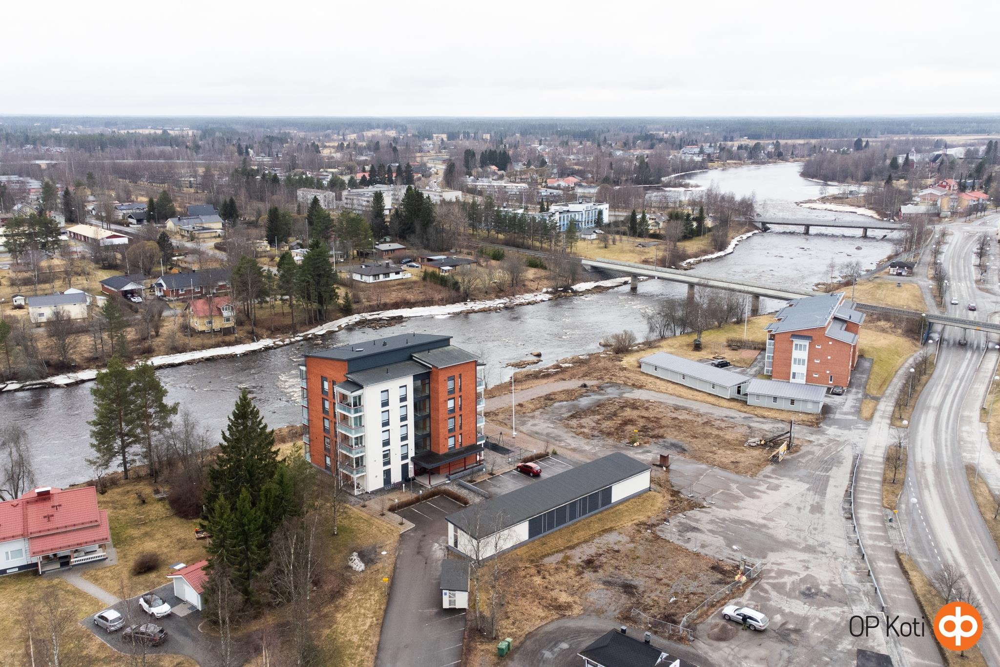 Kaikki keskustan palvelut, kaupat ja ravintolat löytyvät aivan vierestä, ja liikenneyhteydet kulkevat vaivattomasti. Luonnonläheinen ympäristö ja jokimaisemat tuovat viihtyisyyttä arkeen, ja taloyhtiöllä on oma piha-alue sekä autopaikat osakkeina - tämän asunnon hintaan sisältyy oma autokatospaikka.