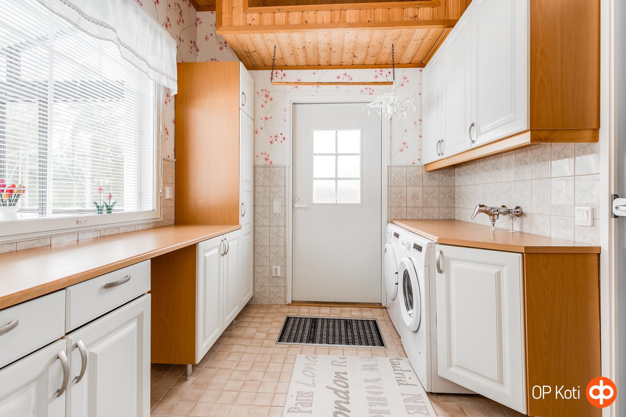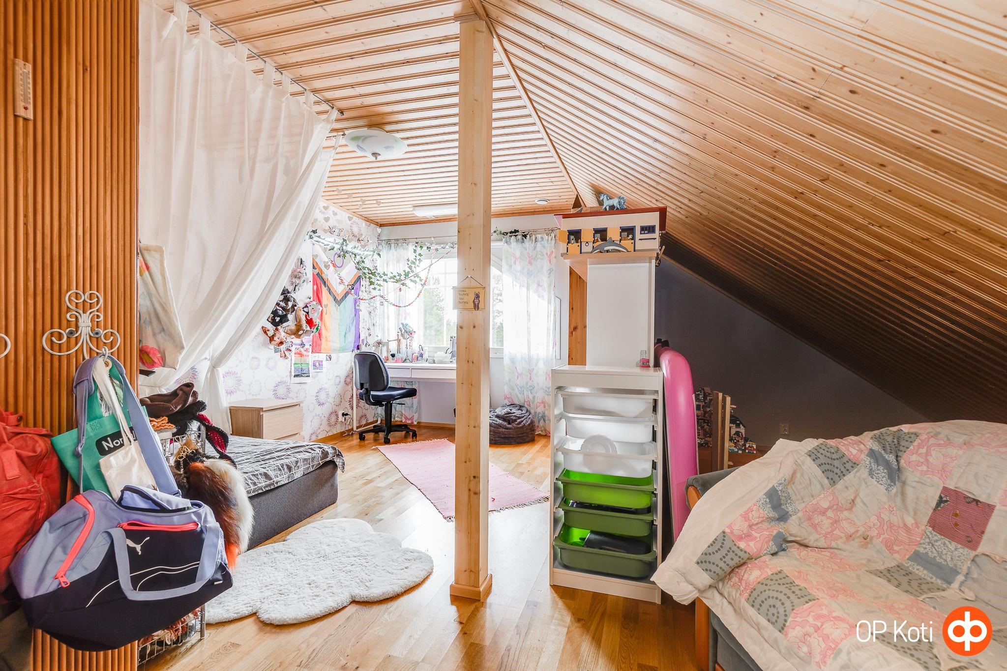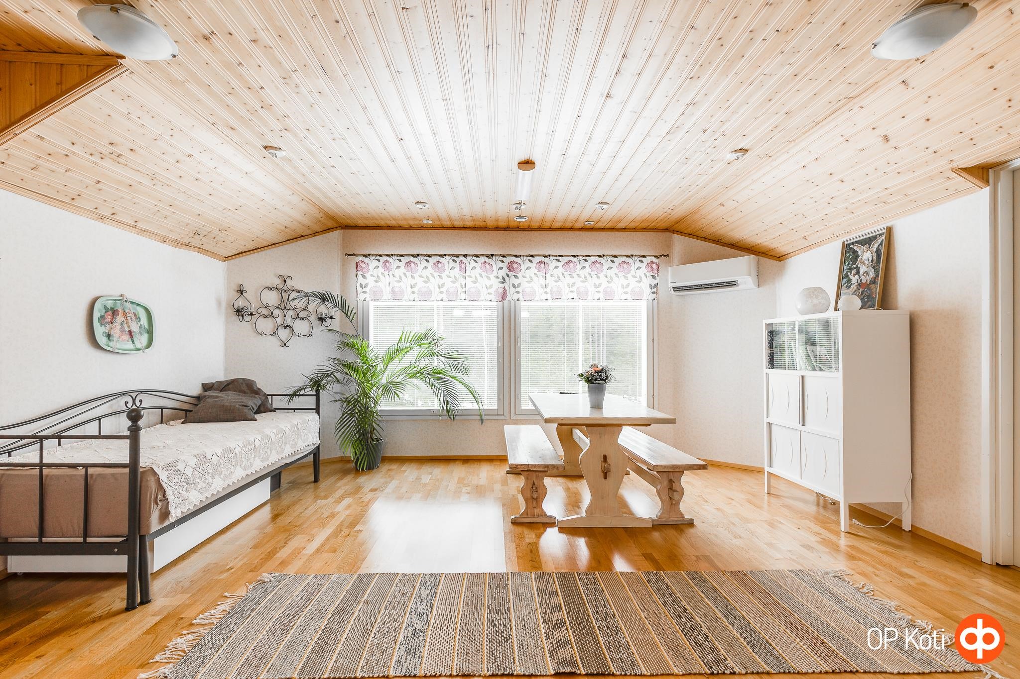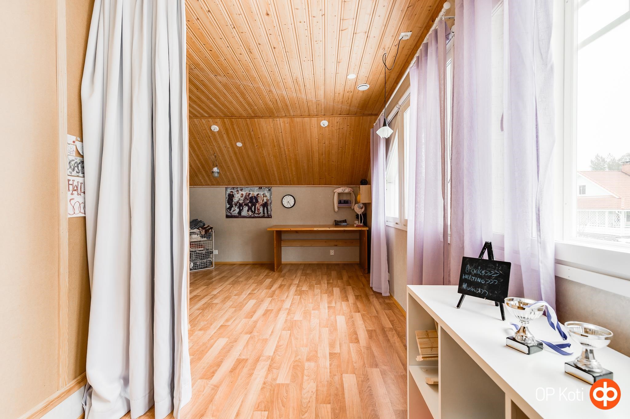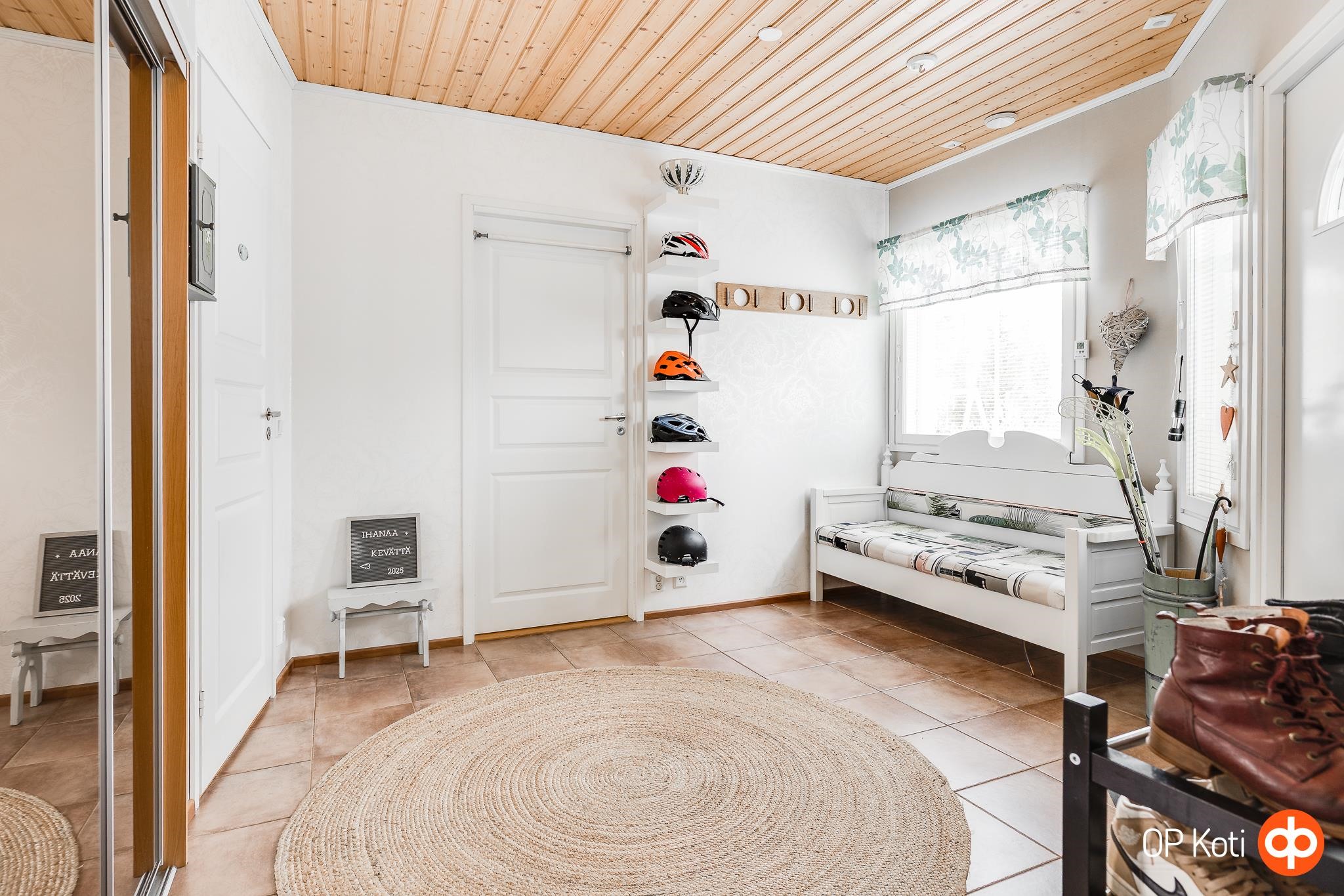 Tässä kodissa arki sujuu vaivattomasti monipuolisen tilaratkaisun ansiosta. Ensimmäisessä kerroksessa on kolme makuuhuonetta, tunnelmalliset oleskelutilat sekä muutama vuosi sitten remontoitu saunaosasto. Keittiössä yhdistyvät käytännöllisyys ja tunnelma, sillä varustukseen kuuluu leivinuuni ja puuhella. Kurasyöpöllä ja runsaalla kaappitilalla varustettu kodinhoitohuone helpottaa arjen askareita, ja kaksi erillistä wc:tä antavat joustavuutta. Yläkerrassa avara aulatila toimii oleskelu- tai työtilana, ja makuuhuoneet tarjoavat runsaasti yksityisyyttä perheenjäsenille.