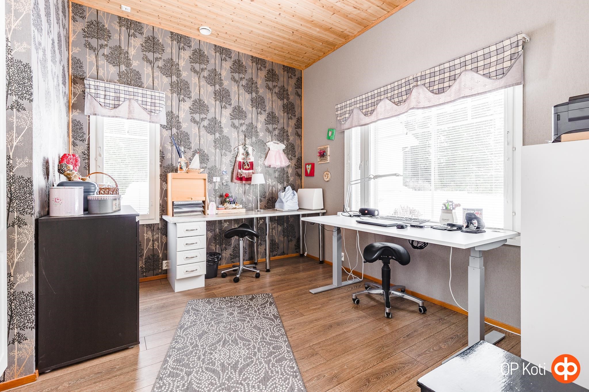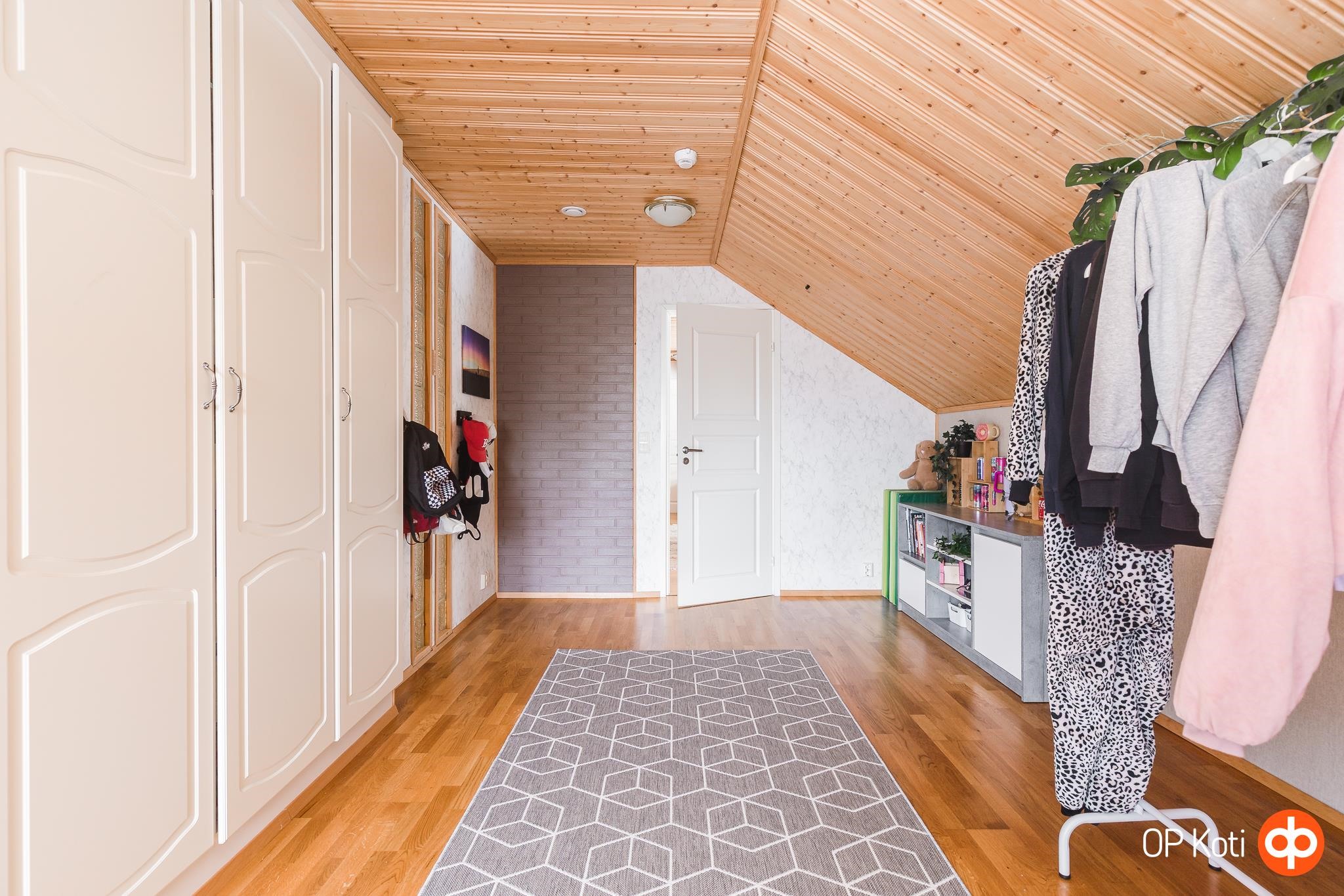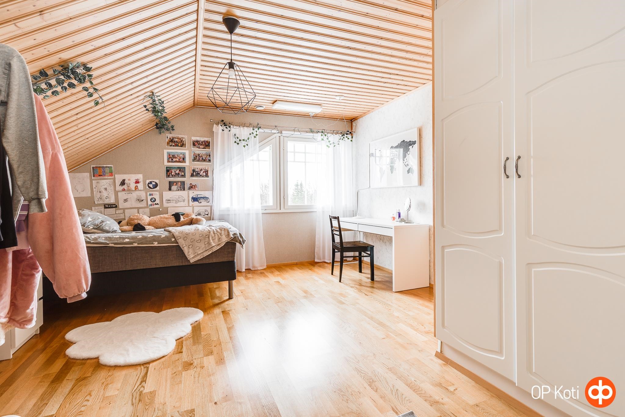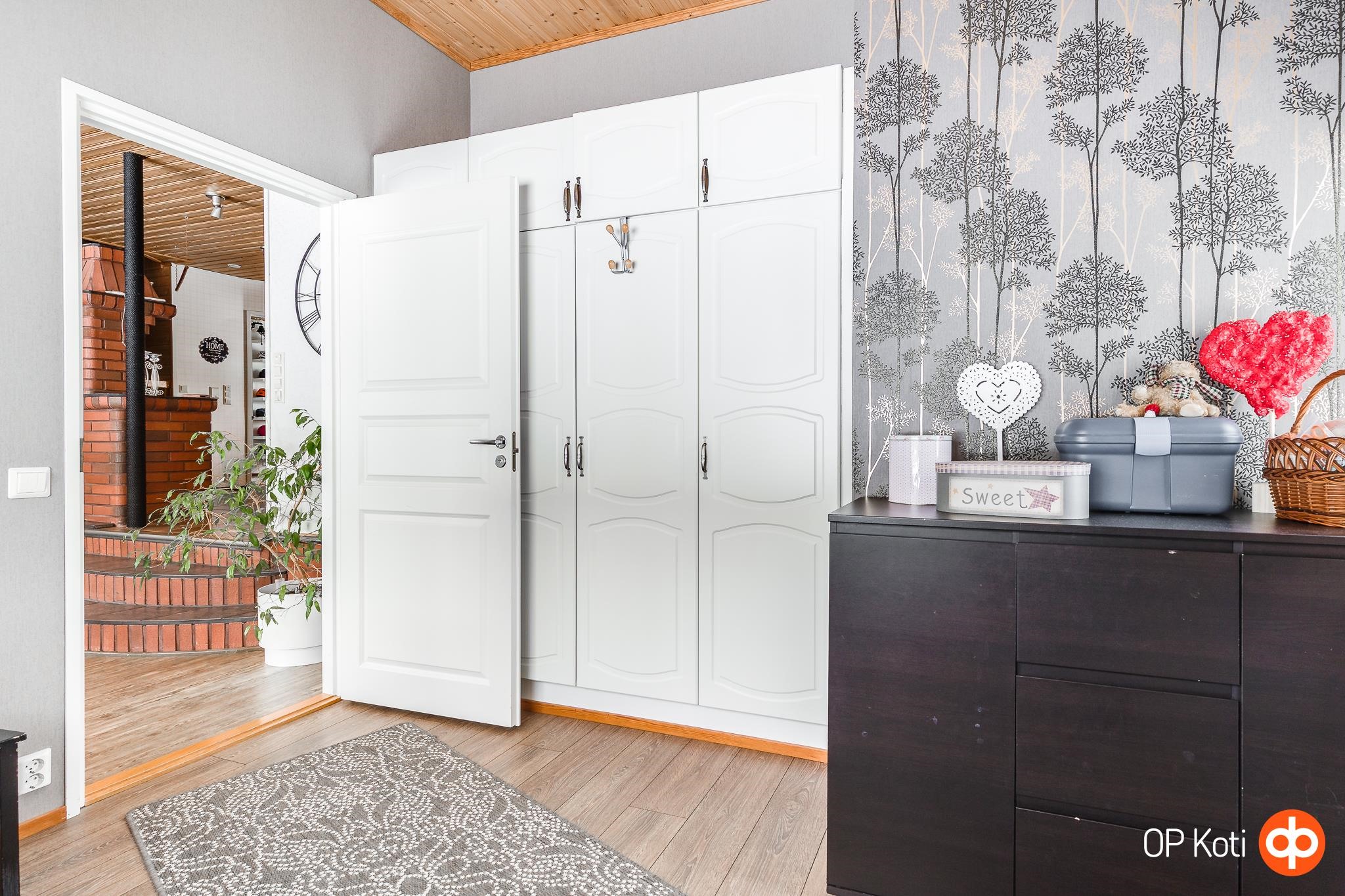 Tässä kodissa arki sujuu vaivattomasti monipuolisen tilaratkaisun ansiosta. Ensimmäisessä kerroksessa on kolme makuuhuonetta, tunnelmalliset oleskelutilat sekä muutama vuosi sitten remontoitu saunaosasto. Keittiössä yhdistyvät käytännöllisyys ja tunnelma, sillä varustukseen kuuluu leivinuuni ja puuhella. Kurasyöpöllä ja runsaalla kaappitilalla varustettu kodinhoitohuone helpottaa arjen askareita, ja kaksi erillistä wc:tä antavat joustavuutta. Yläkerrassa avara aulatila toimii oleskelu- tai työtilana, ja makuuhuoneet tarjoavat runsaasti yksityisyyttä perheenjäsenille.