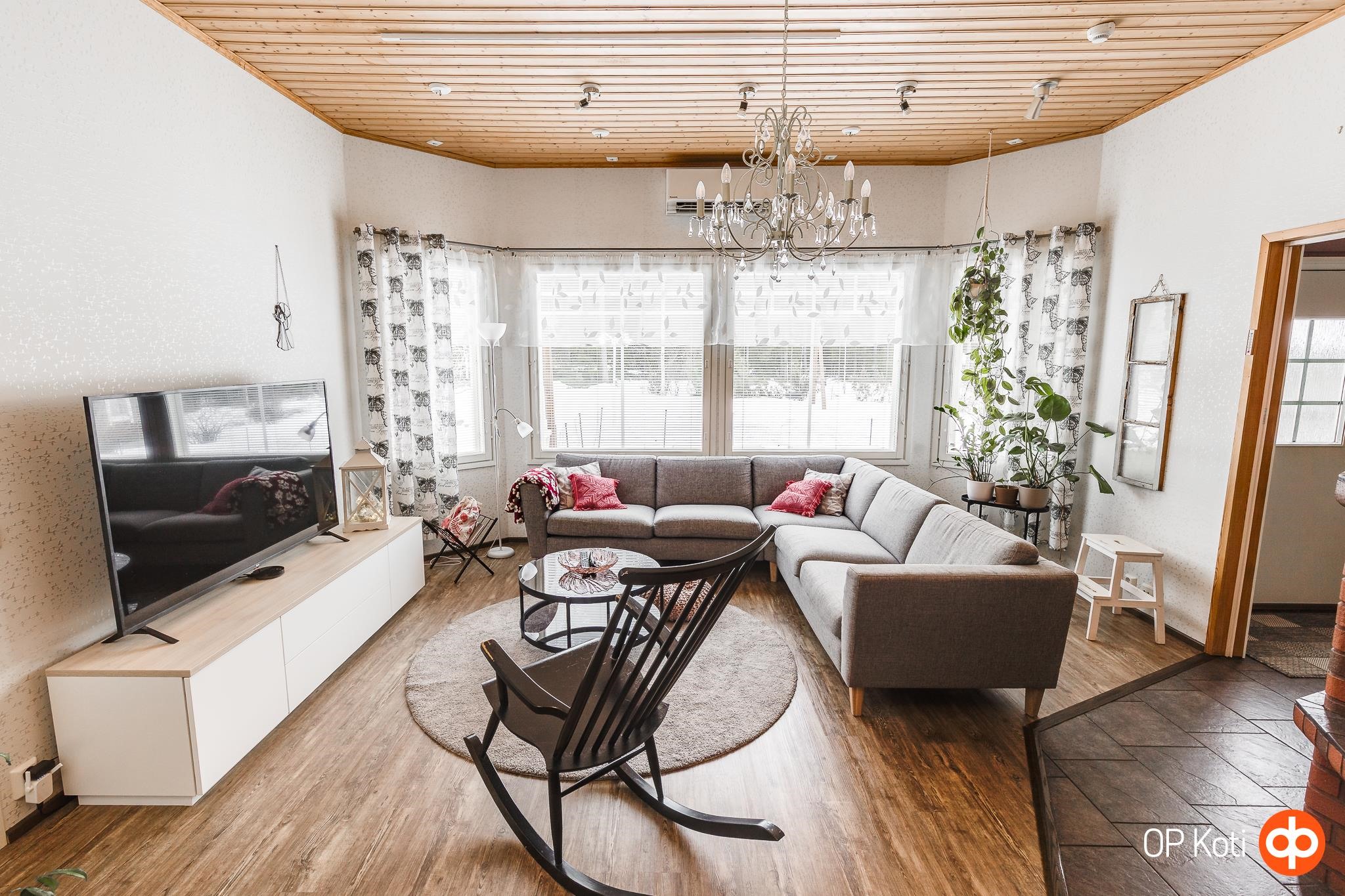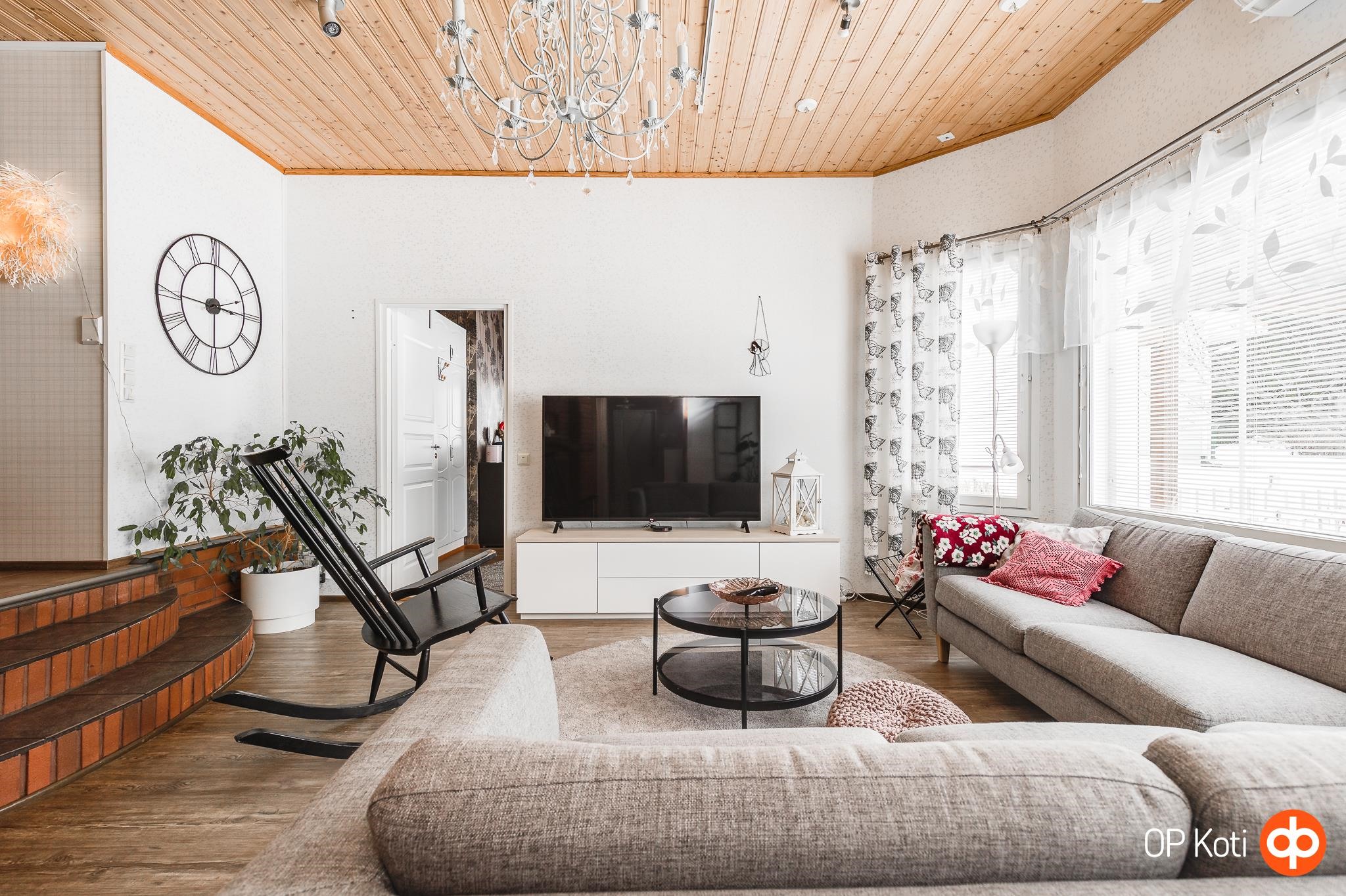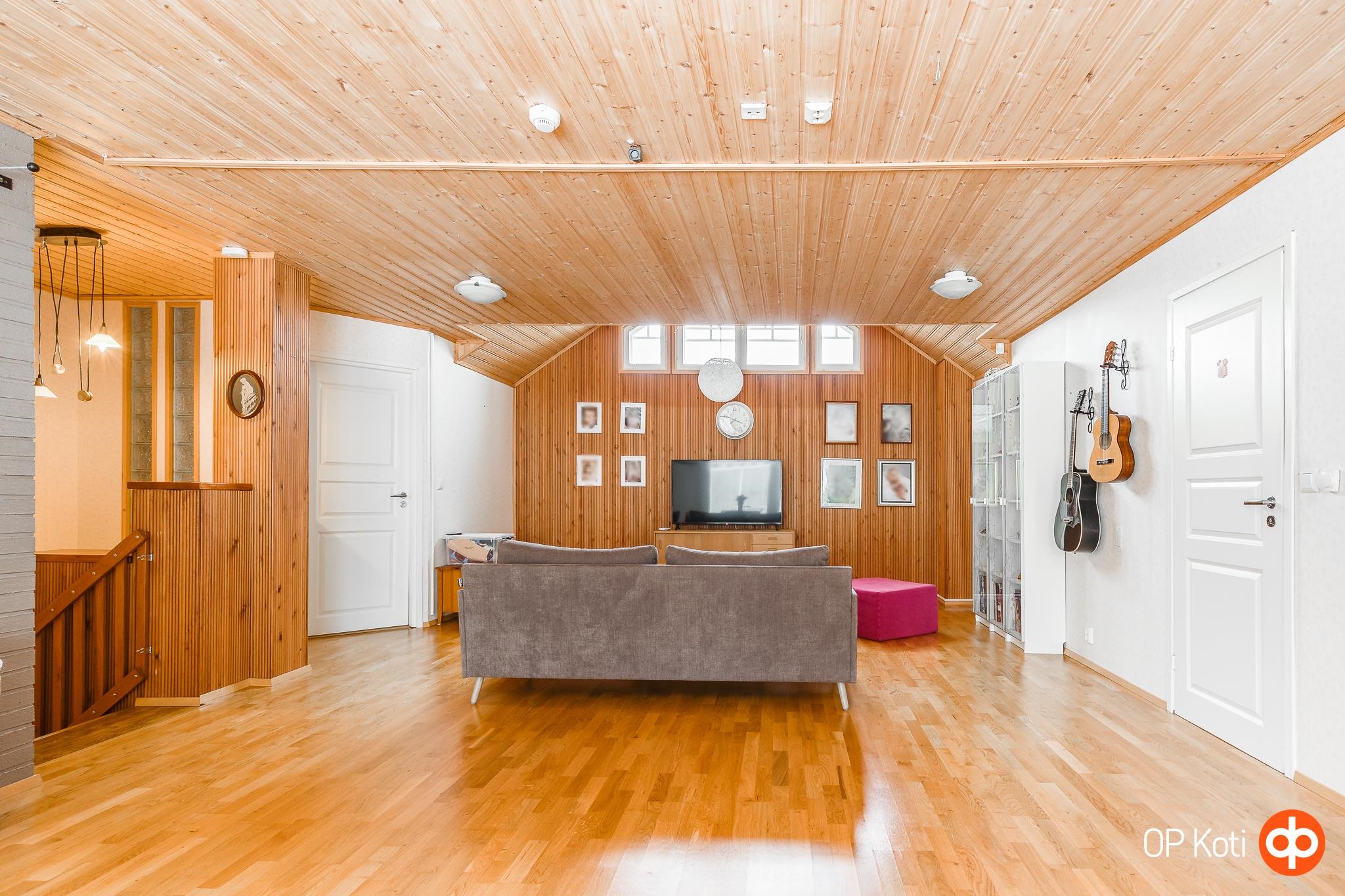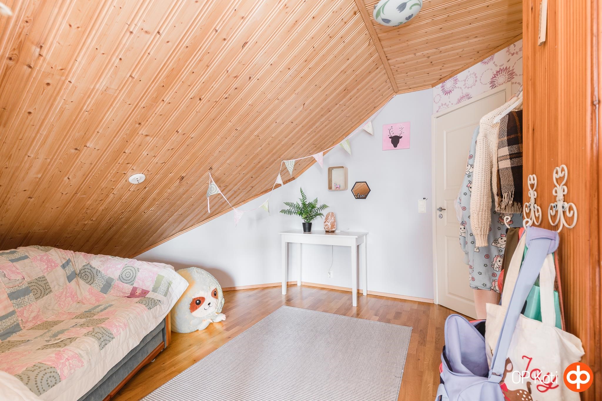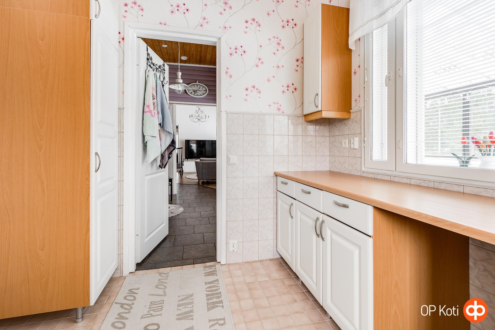 Tässä kodissa arki sujuu vaivattomasti monipuolisen tilaratkaisun ansiosta. Ensimmäisessä kerroksessa on kolme makuuhuonetta, tunnelmalliset oleskelutilat sekä muutama vuosi sitten remontoitu saunaosasto. Keittiössä yhdistyvät käytännöllisyys ja tunnelma, sillä varustukseen kuuluu leivinuuni ja puuhella. Kurasyöpöllä ja runsaalla kaappitilalla varustettu kodinhoitohuone helpottaa arjen askareita, ja kaksi erillistä wc:tä antavat joustavuutta. Yläkerrassa avara aulatila toimii oleskelu- tai työtilana, ja makuuhuoneet tarjoavat runsaasti yksityisyyttä perheenjäsenille.