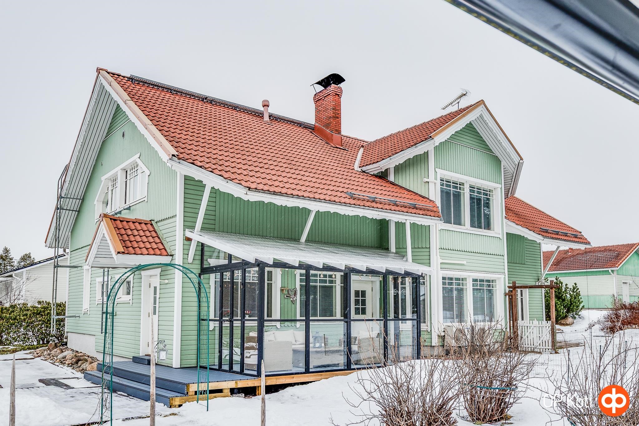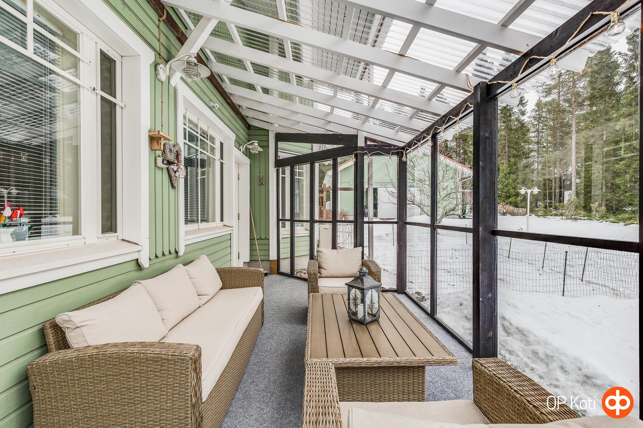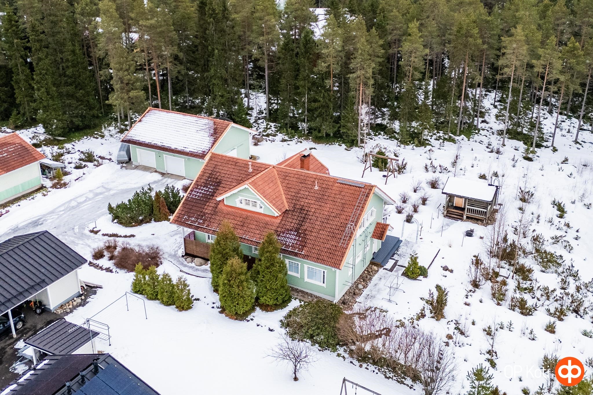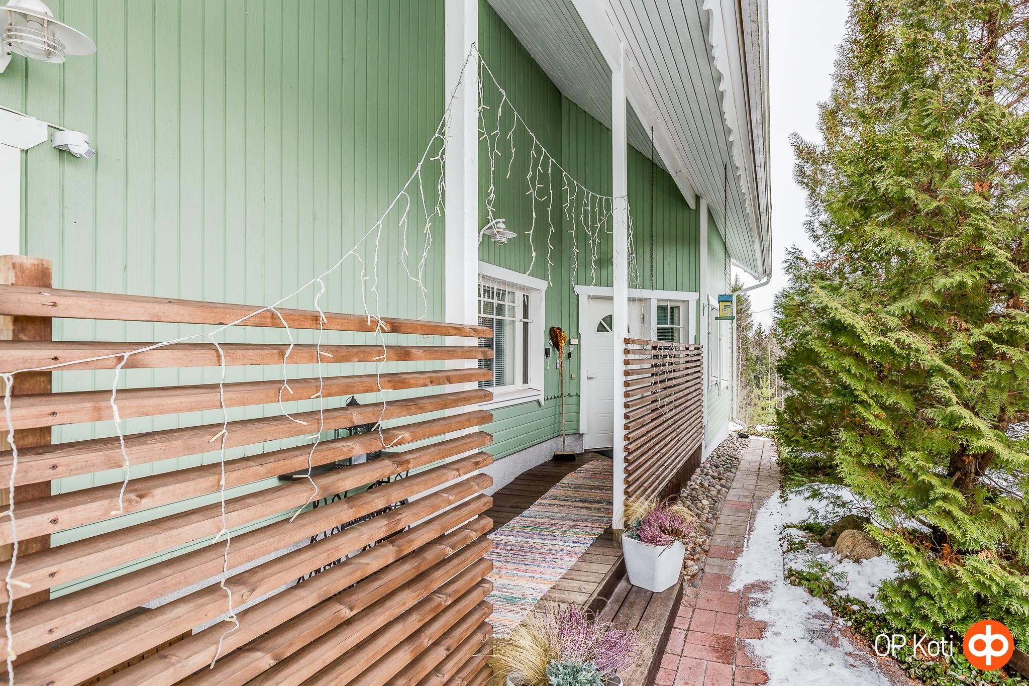 Vuonna 2001 rakennetun talon lämmityksestä huolehtii kaukolämpö yhdistettynä lattialämmitykseen, minkä lisäksi kaksi ilmalämpöpumppua tuovat energiatehokkuutta sekä toisaalta viilennystä kesäisin. Pihapiiri rajautuu metsän reunaan ja tarjoaa näin suojaisan ympäristön asumiseen. Katettu ja lasitettu terassi kutsuu nauttimaan ulkoilmasta pitkälle syksyyn. Autotalli- ja varastorakennuksessa on tilaa kahdelle autolle sekä runsaasti säilytystilaa. Metsän reunaan rakennettu erillinen pihasauna tuo arkeen ripauksen ylellisyyttä, ja liiteri helpottaa polttopuiden säilytystä.