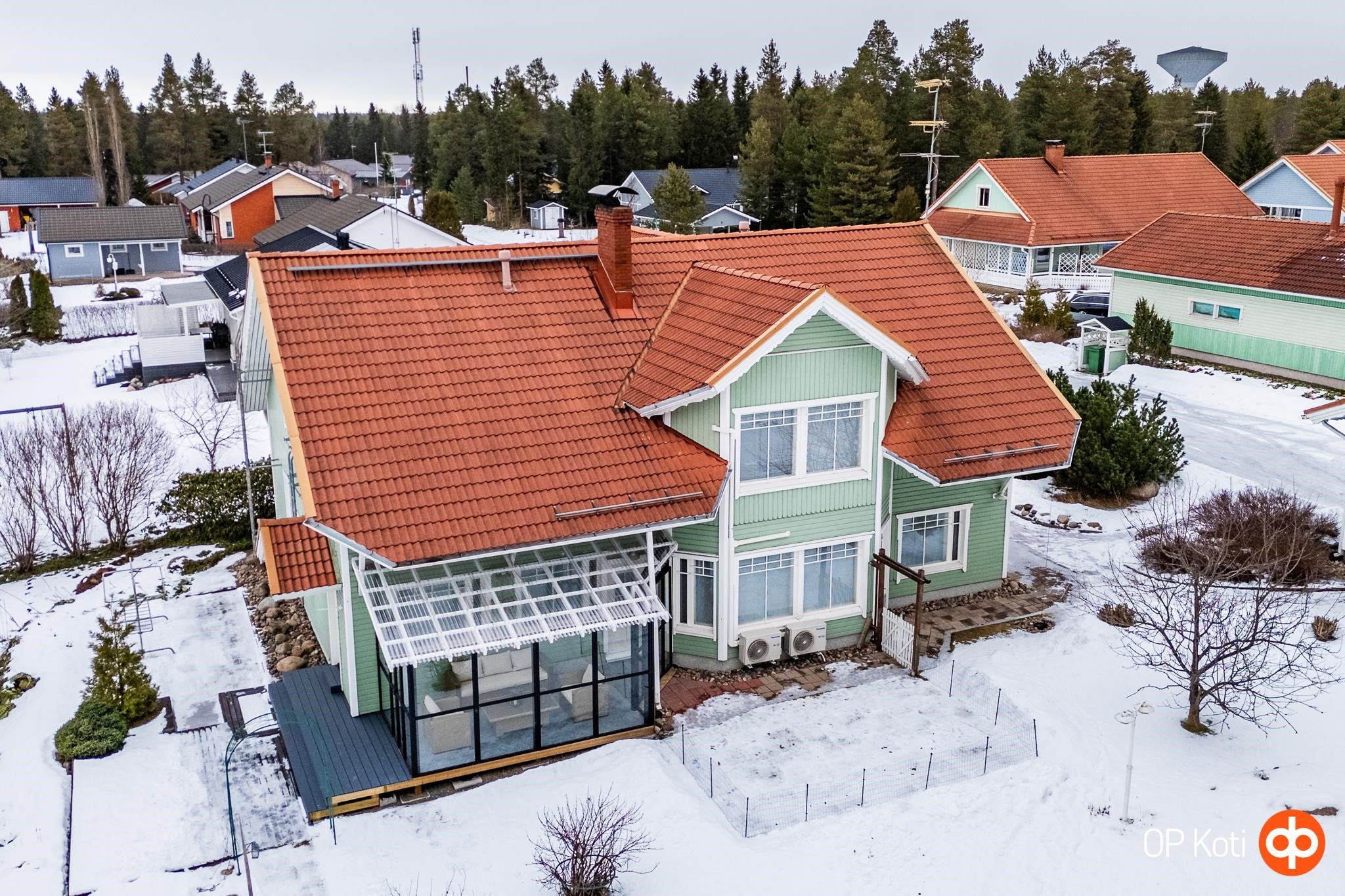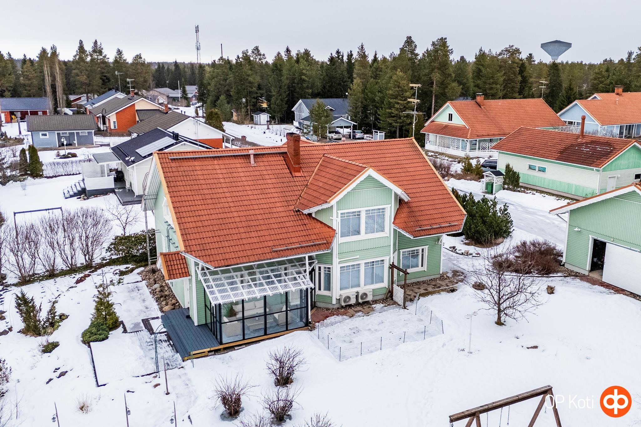 Tässä isomallekin perheelle sopiva omakotitalo Raahen Honganpalossa tarjoaa viisi makuuhuonetta, kattavat varusteet, lasitetun terassin sekä oman pihasaunan rauhallisella tontilla.