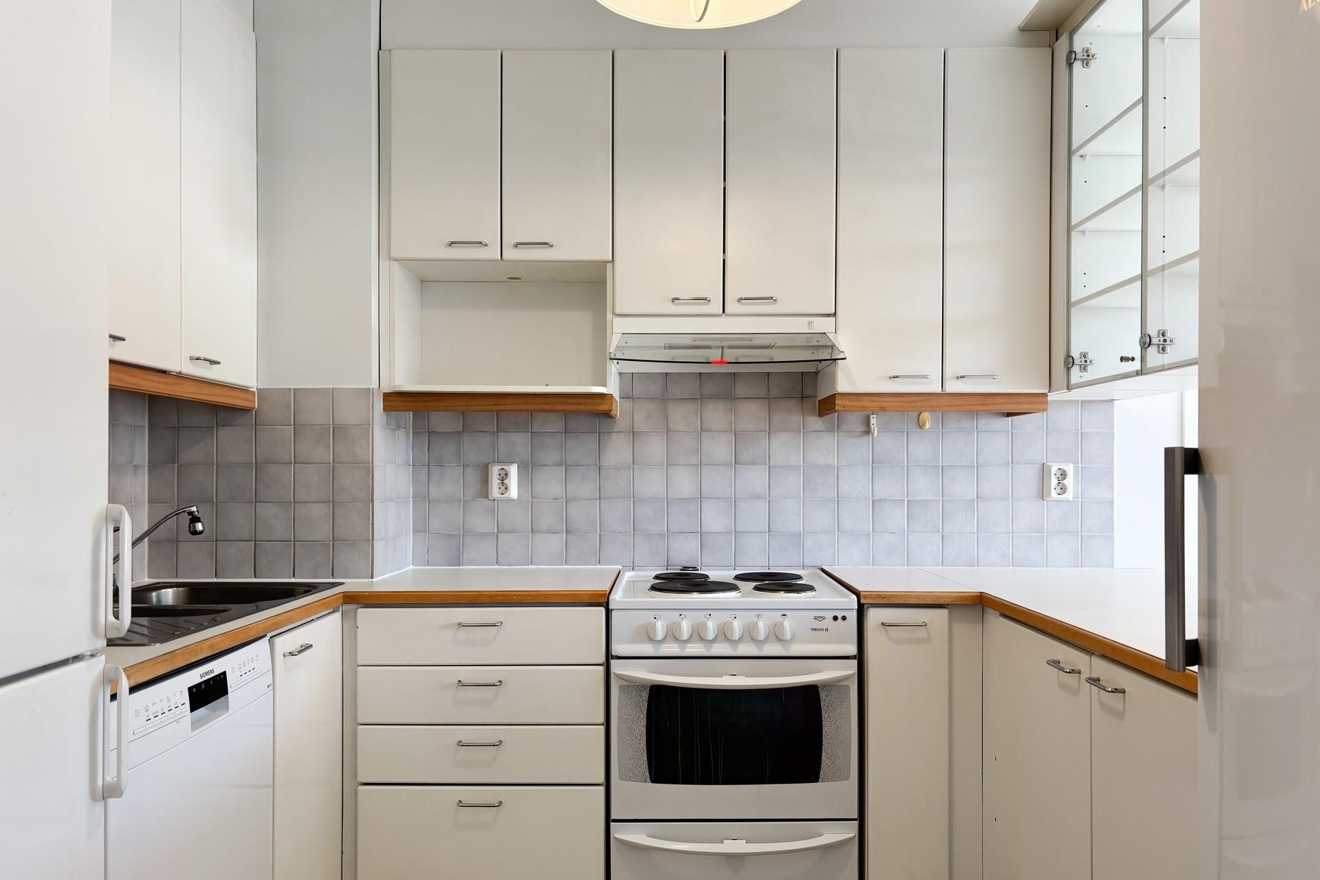 - Jääkaappi, pakastekaappi, keraaminen liesi, liesituuletin, astianpesukone, kaapistot, kiinteät valaisimet.