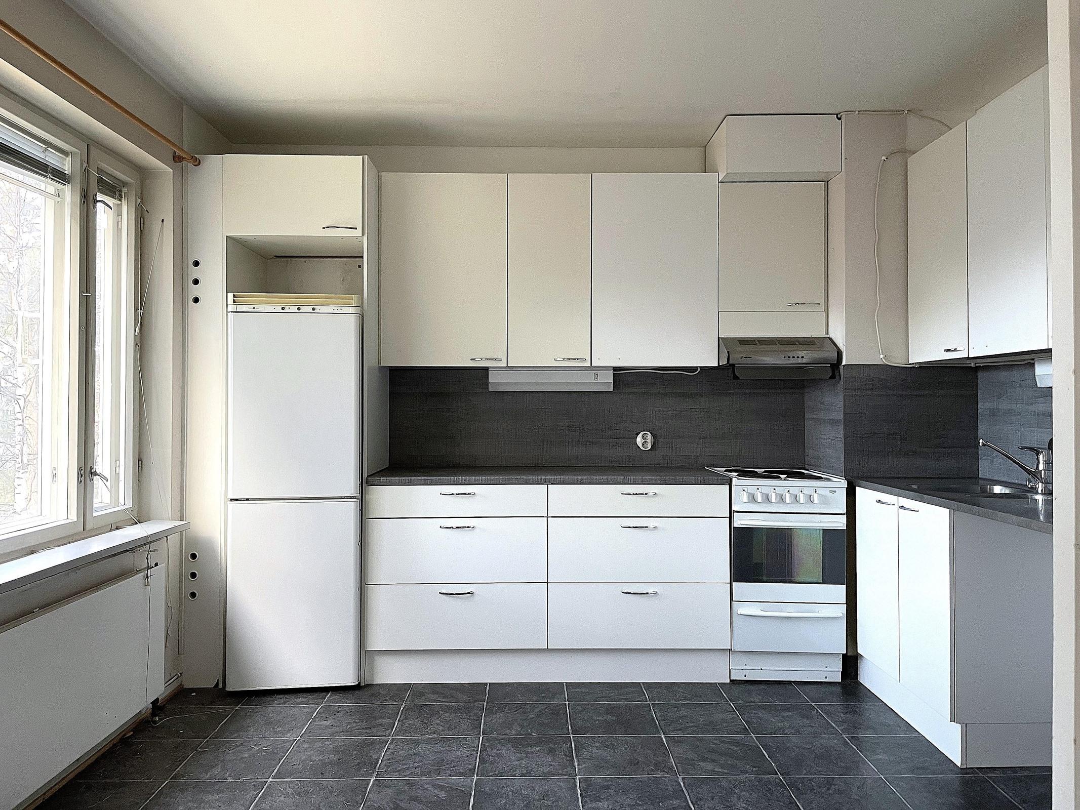 Kaukovainiolta tarjolla tilava kolmio. Asunto on talon kolmannessa (3/3) kerroksessa. Lattiat on muovimattoa ja seinät valkoiseksi maalatut. Keittiössä runsaasti säilytystilaa. Kylpyhuoneessa liitännät ja paikka päältä täytettävälle pyykinpesukoneelle. Viihtyvyyttä tuo lasitettu parveke. Lämmitys sisältyy vuokraan. Vuokralainen tekee oman sähkösopimuksen käyttösähköstä ja vesimaksut laskutetaan kulutuksen mukaan, ennakkomaksu 17€/hlö/kk. Hakijoilta tarkastetaan luottotiedot.