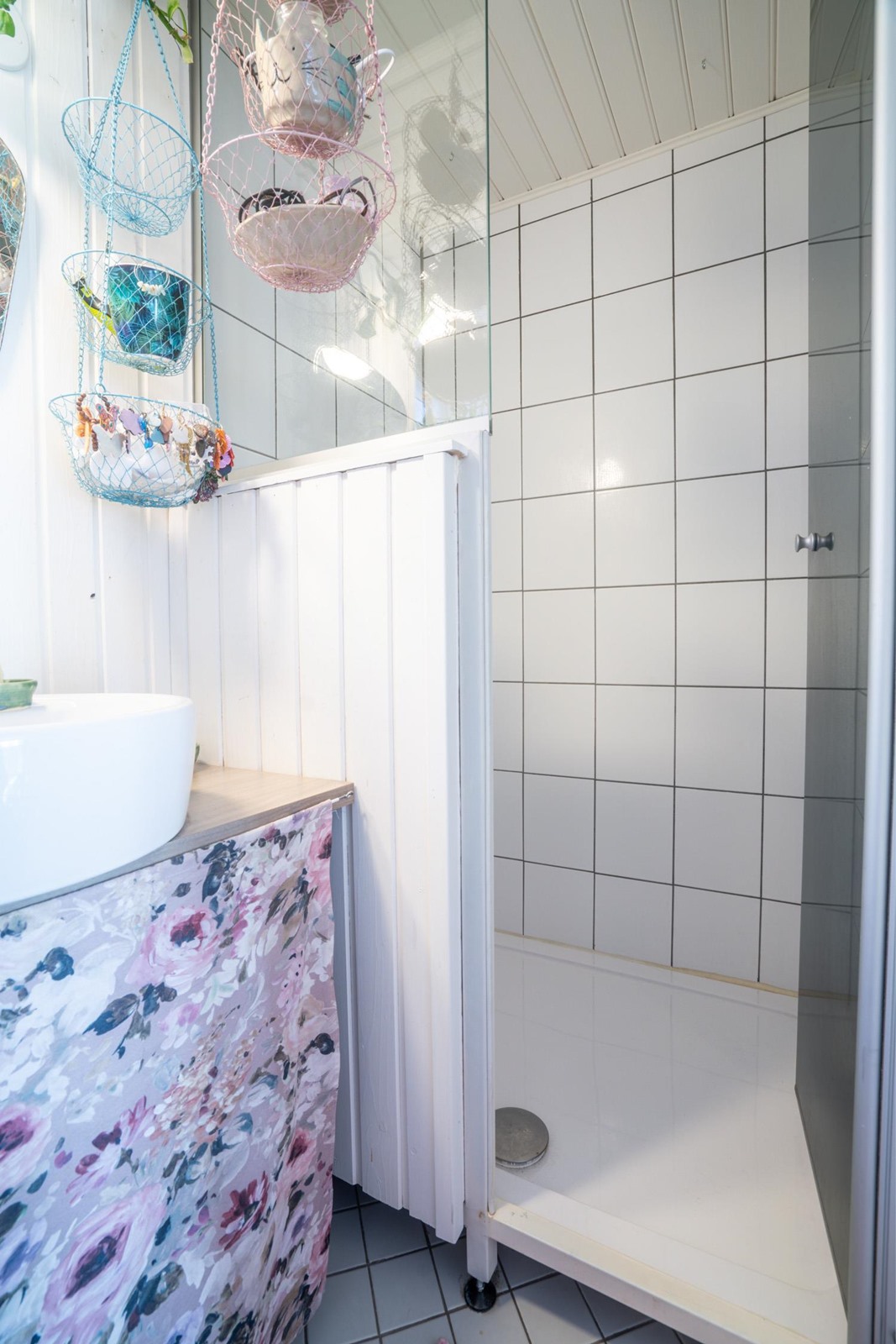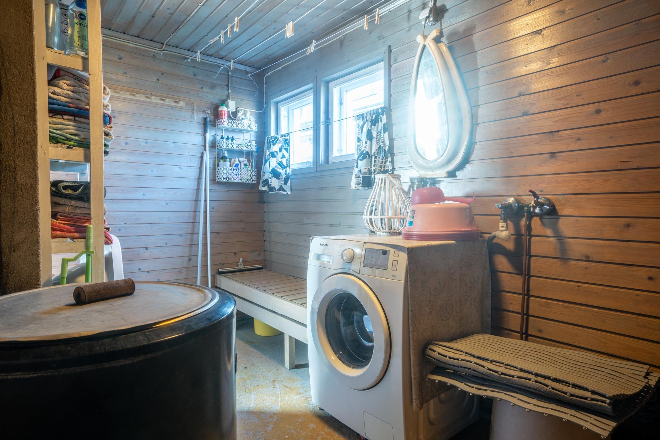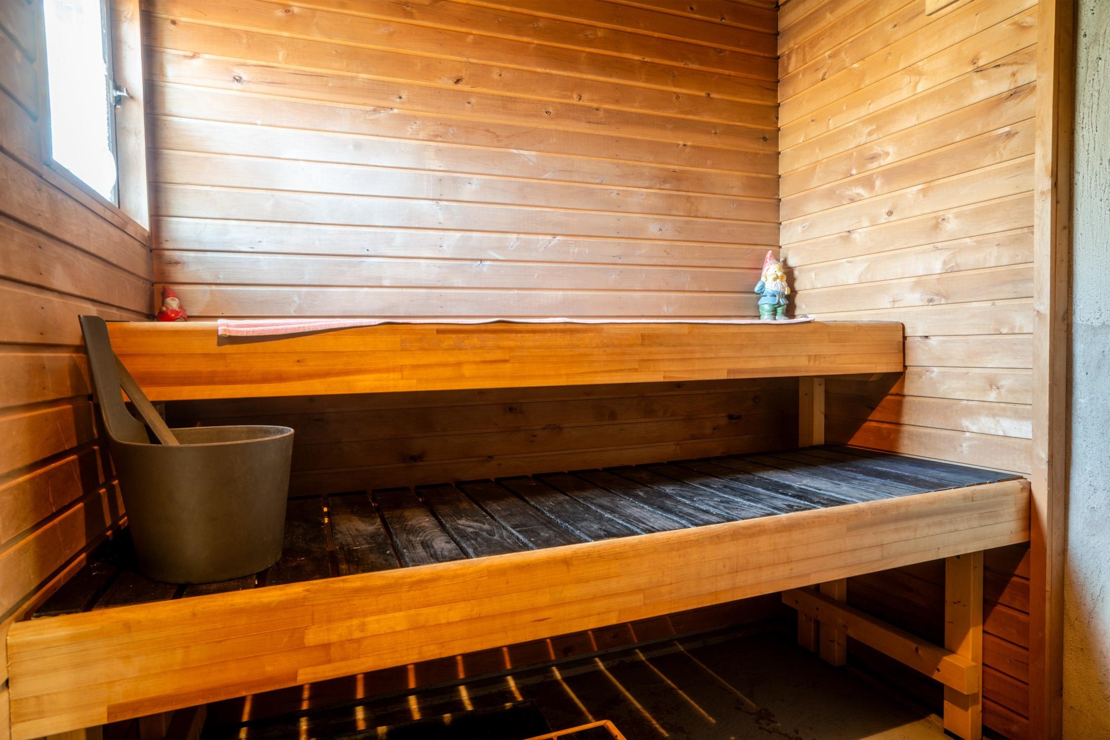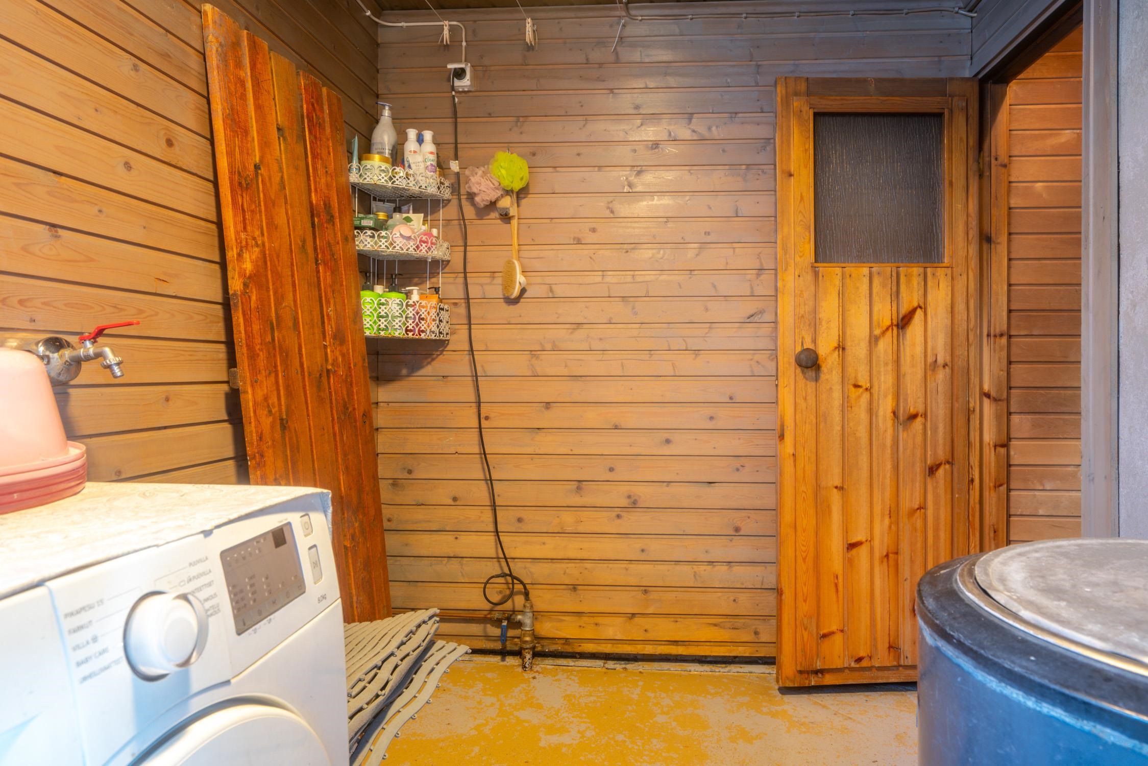 - Suihku, suihkuseinä, kiinteät valaisimet. Ulkosauna jossa perinteinen pesutila.