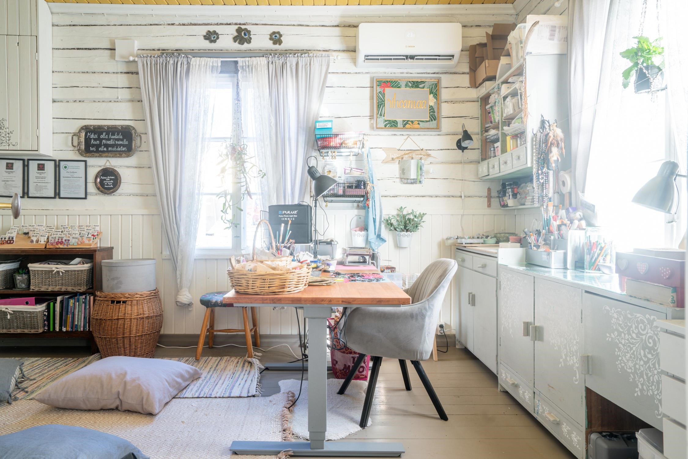 - Muu. Märkätilassa lattialämmitys, 2 x ilmalämpöpumppu joka kierrättää tulisijoissa lämmitettyä ilmaa. Yläkerran toisessa makuuhuoneessa sähköpatteri.