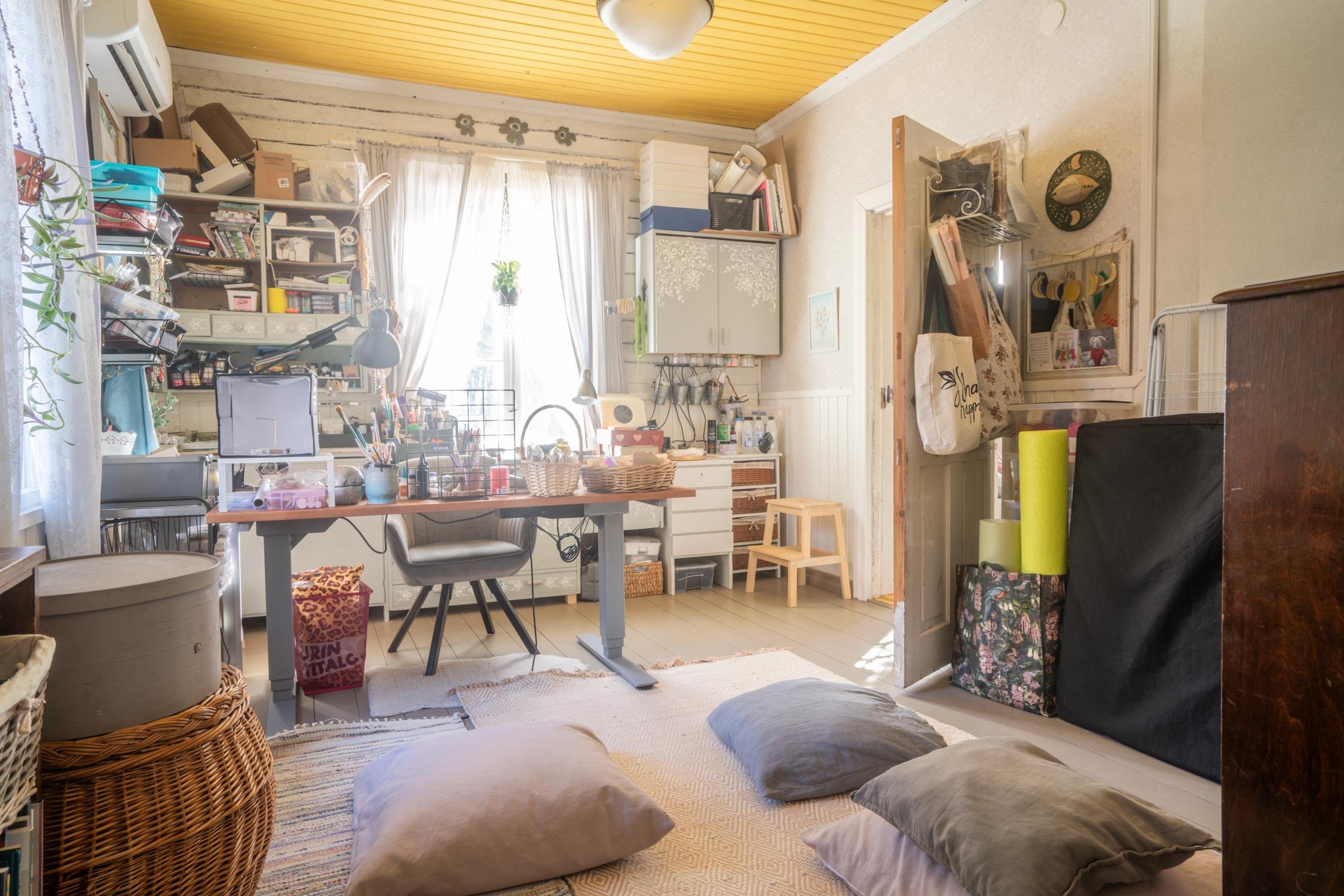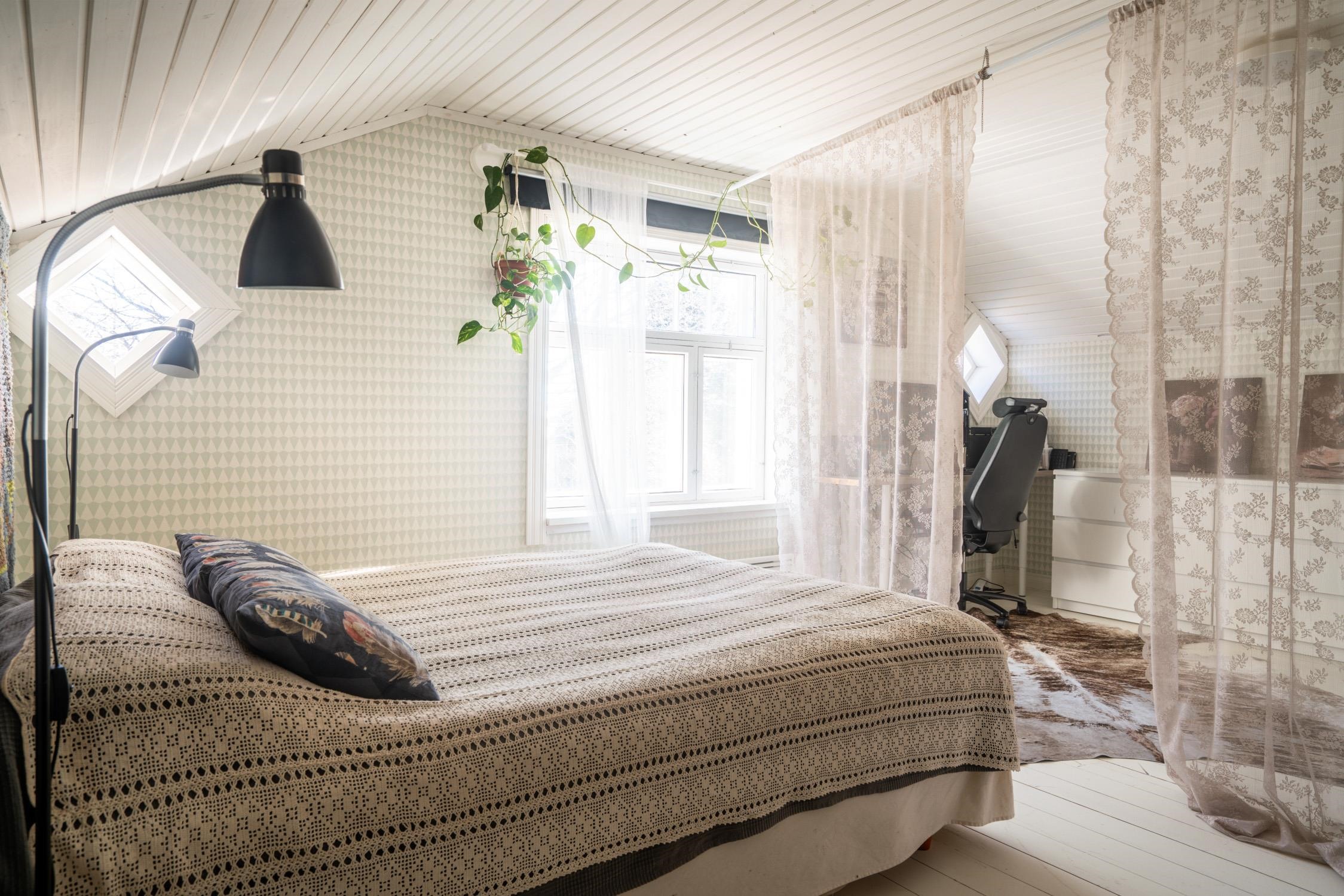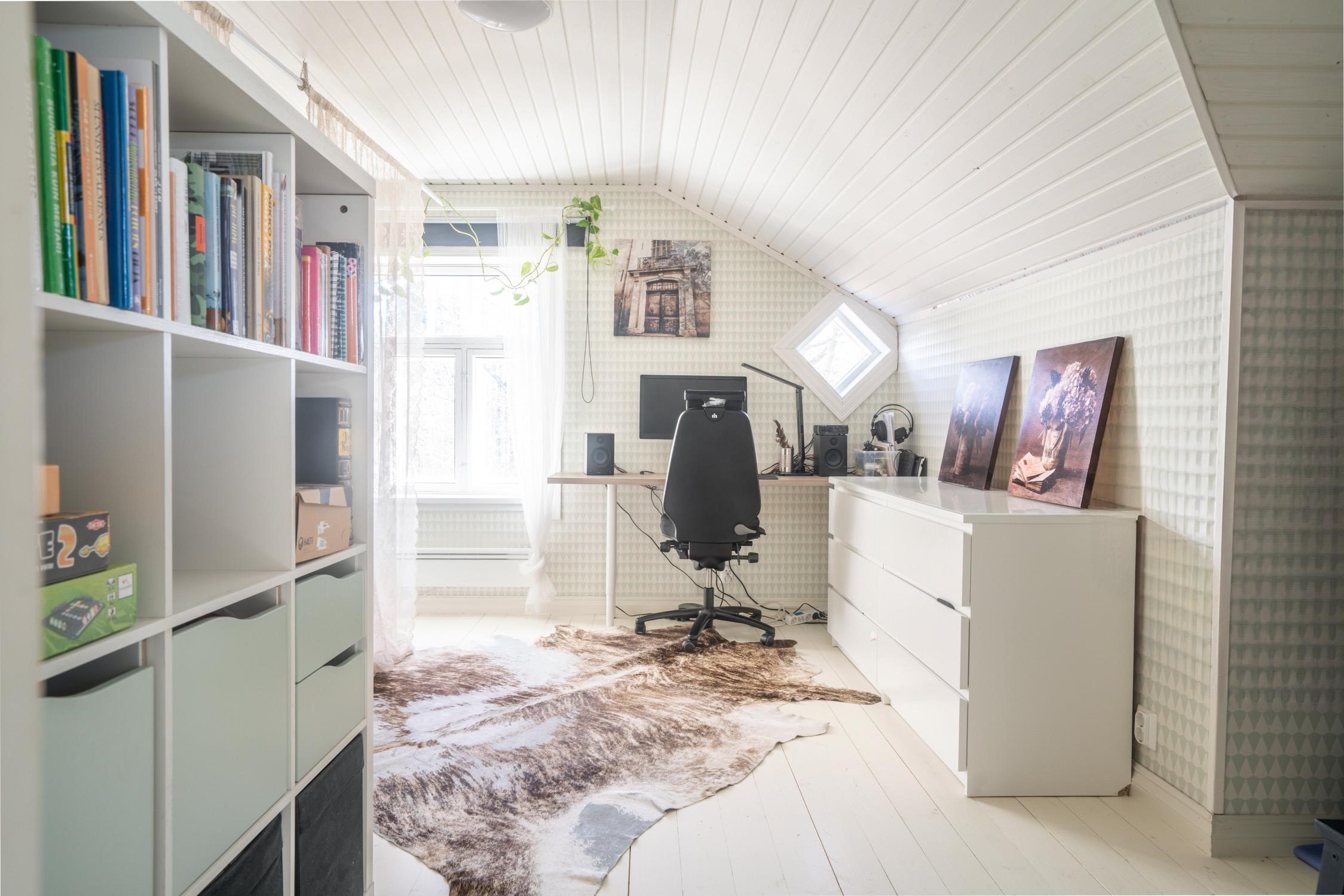 - 13 m2Yläkerran Muihin tiloihin lukeutuu takapihan puoleinen yläkerran ullakko ja kuisti.