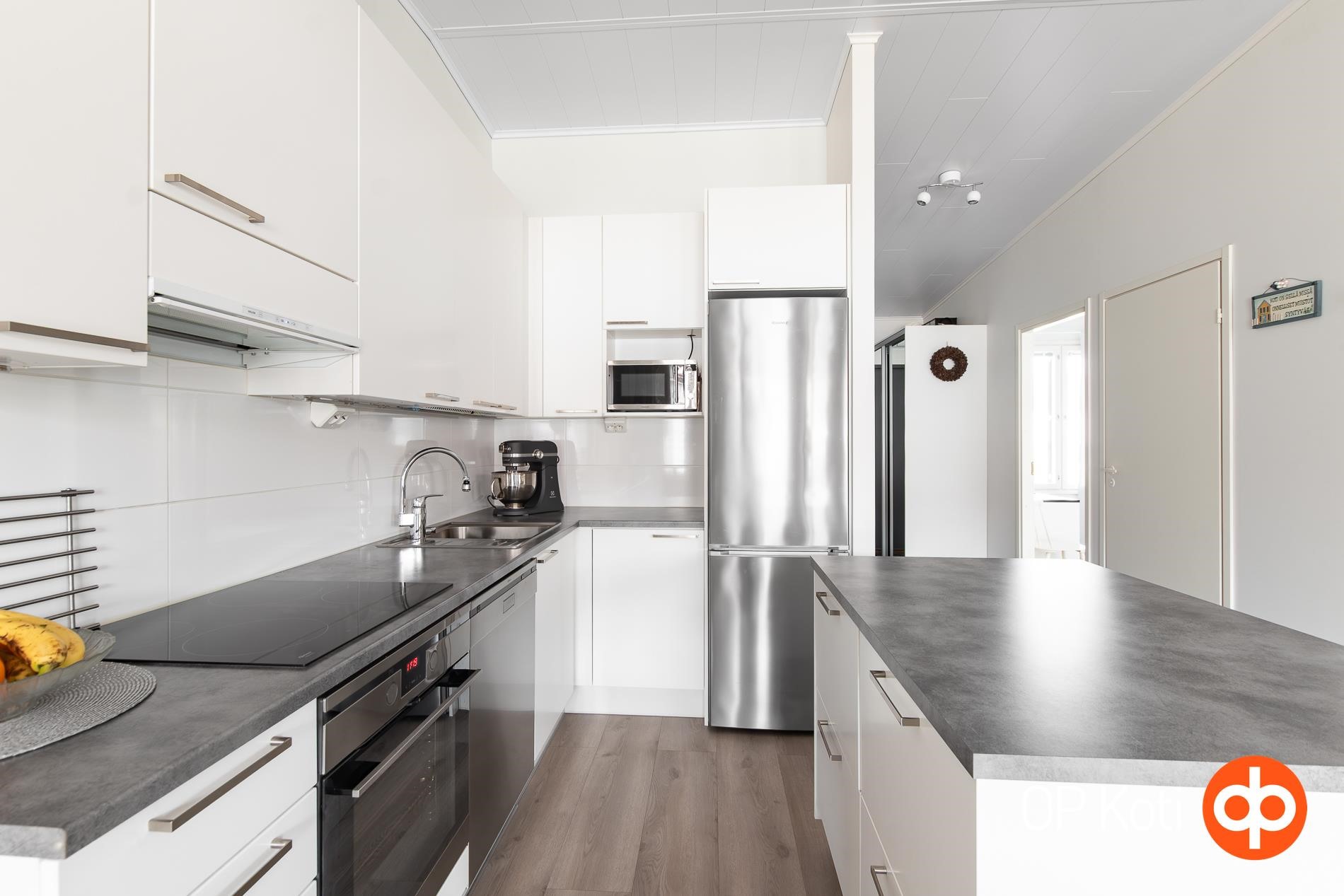 Tervetuloa tutustumaan tähän valoisaan ja hyvin suunniteltuun yksitasoiseen päätyasuntoon, jossa moderni asumismukavuus kohtaa käytännölliset ratkaisut. Vuonna 2019 valmistunut koti tarjoaa selkeän ja toimivan pohjaratkaisun, joka palvelee niin arjen sujuvuutta kuin viihtyisyyttä. Olohuoneen upeat vinot sisäkatot tuovat tilaan avaruutta ja näyttävyyttä ja suuret ikkunat päästävät luonnonvalon virtaamaan kauniisti sisään. Keittiö on varusteltu nykyaikaisesti, ja siihen lisätty siirrettävä saareke tuo kätevää lisätyötilaa ja toiminnallisuutta arjen kokkailuihin. Lattiat on toteutettu käytännöllisellä ja helppohoitoisella vinyylillä, joka sopii erinomaisesti aktiiviseen elämään. Erillinen kodinhoitohuone helpottaa arjen järjestelyä ja asunnosta löytyy runsaasti säilytystilaa. Yksi tämän kodin ehdottomista valteista on reilunkokoinen etelään suuntautuva terassi ja piha-alue täydellinen paikka nauttia auringosta, grillata tai viettää rauhallisia hetkiä omassa rauhassa. Autokatospaikka myydään erikseen. Tämä koti on valmis toivottamaan uudet asukkaat tervetulleiksi! Kohdetta esitellään vain yksityisesti! Varaa oa esittelyaikasi! Sari Kvick 040-7331590