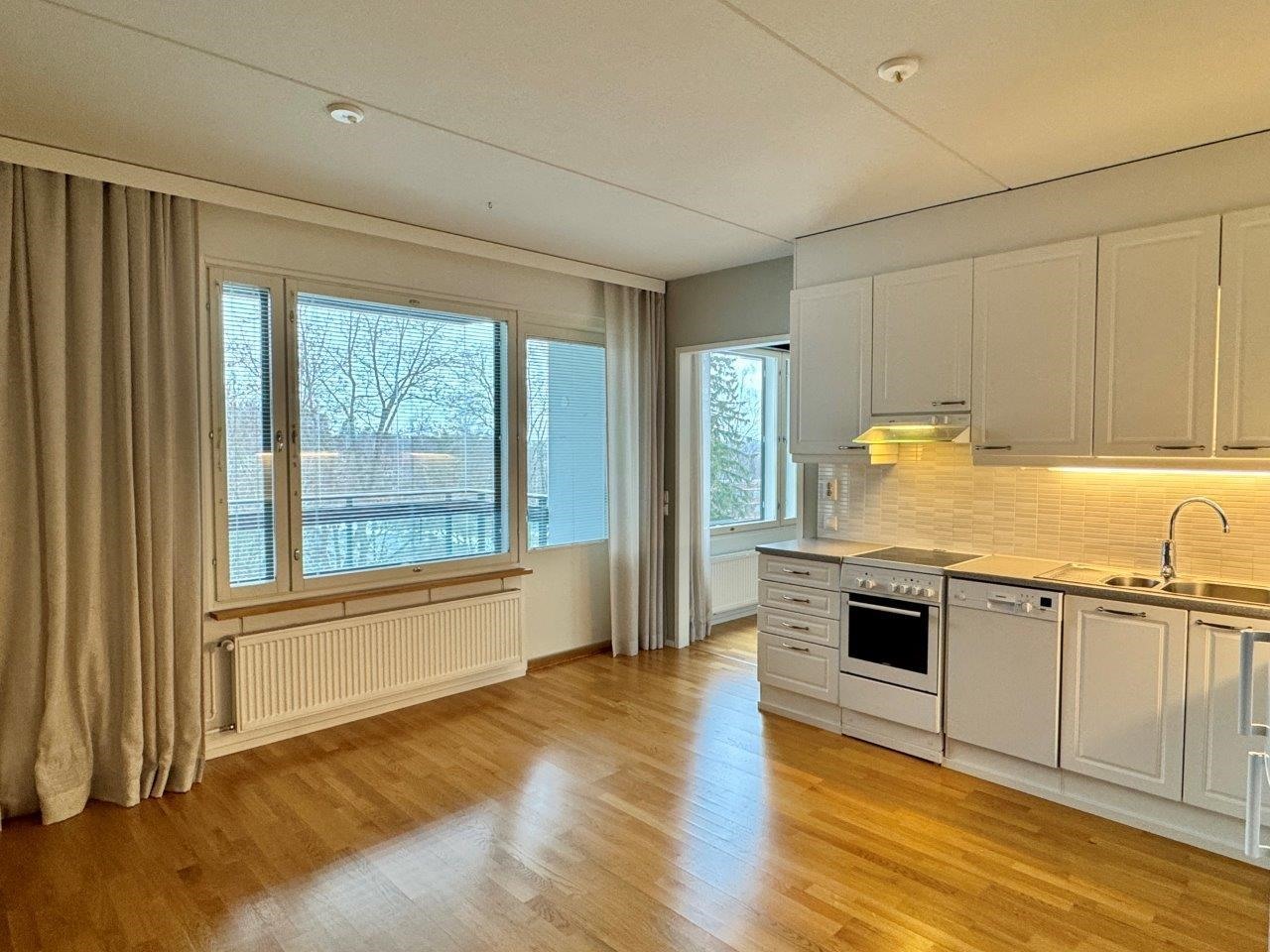 - Jääkaappipakastin, keraaminen liesi, liesikupu, astianpesukone, kiinteät valaisimet.