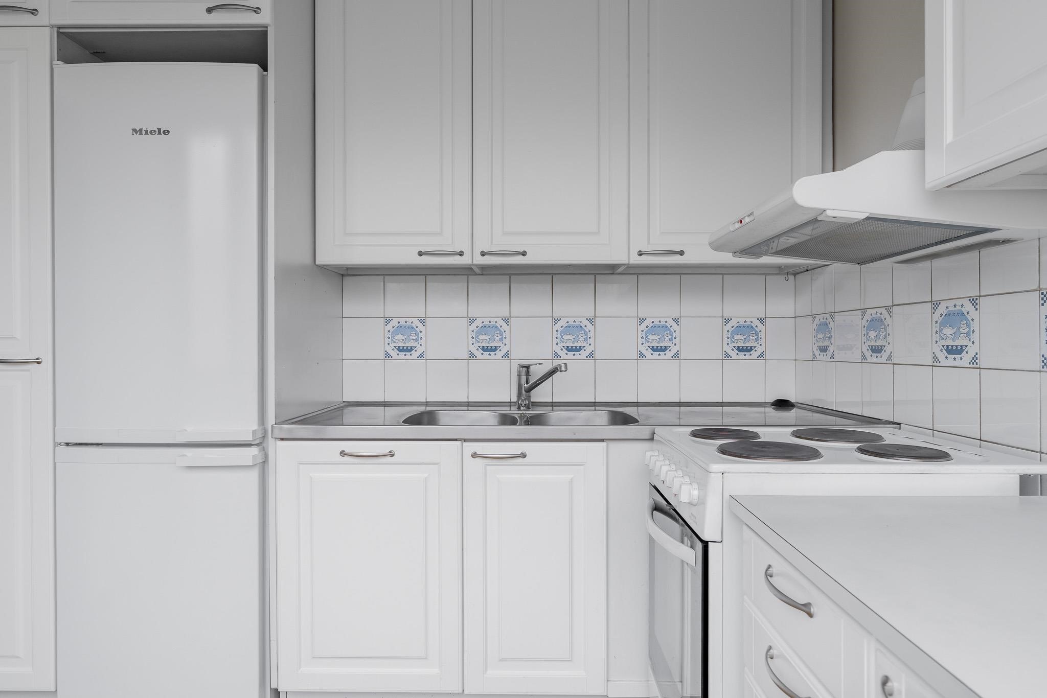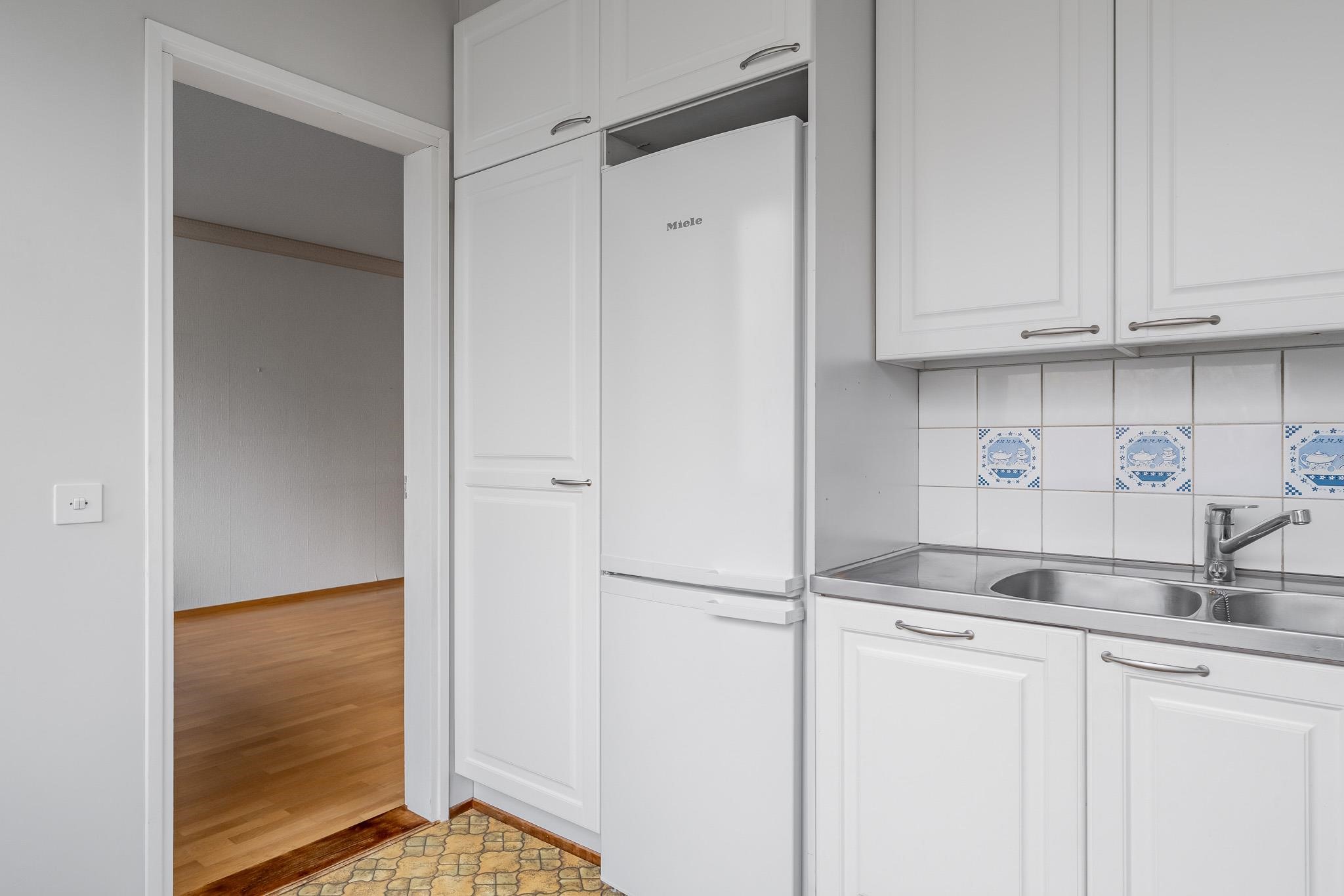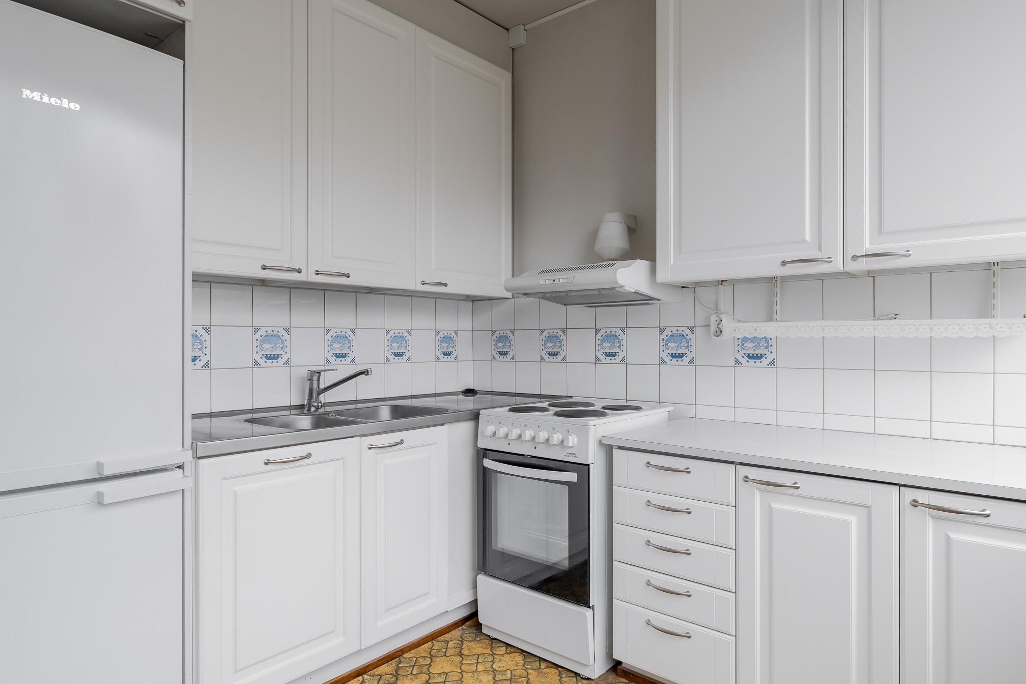 - Jääkaappipakastin, lattialiesi, sähköliesi, liesituuletin, kaapistot, kiinteät valaisimet.
