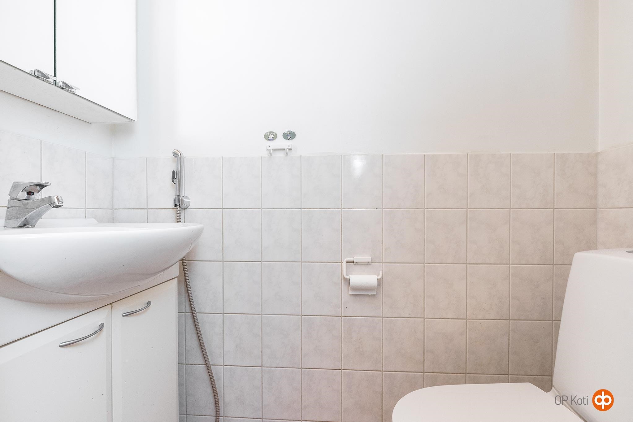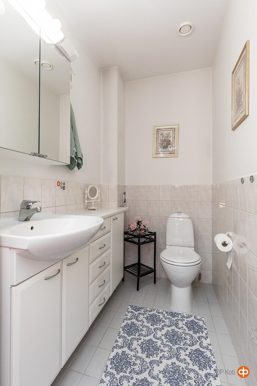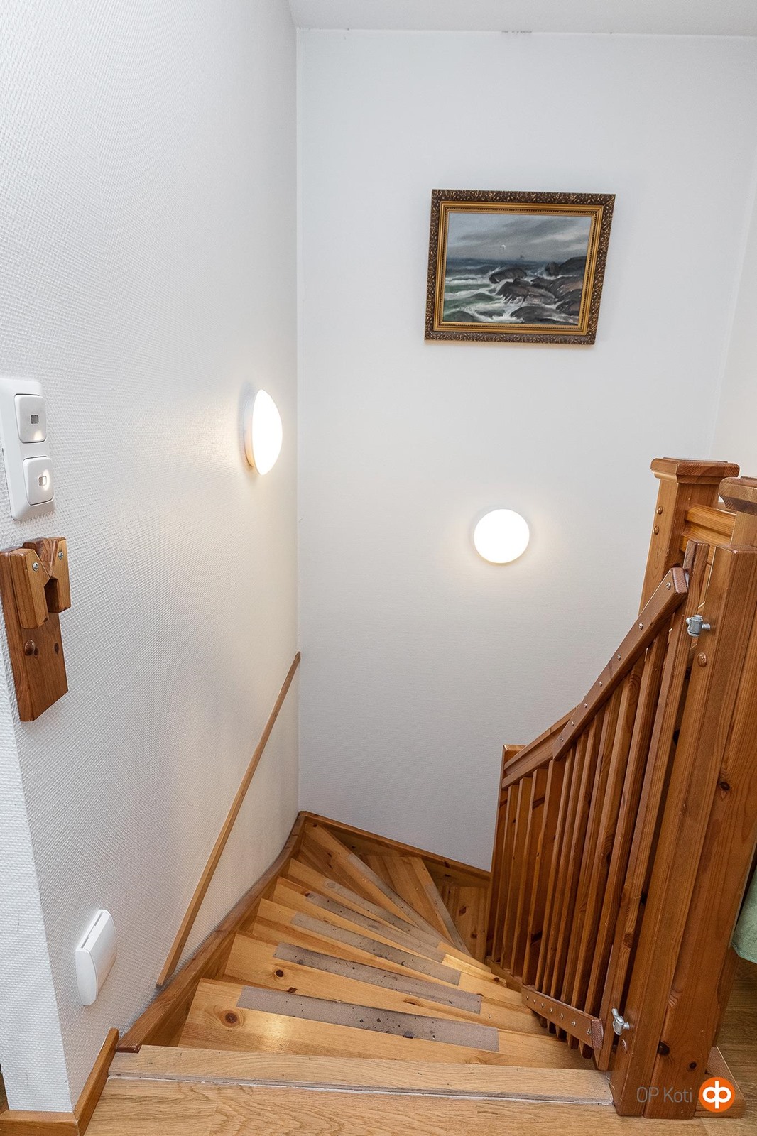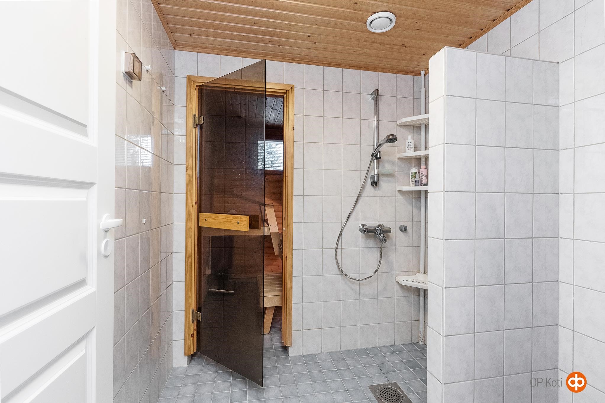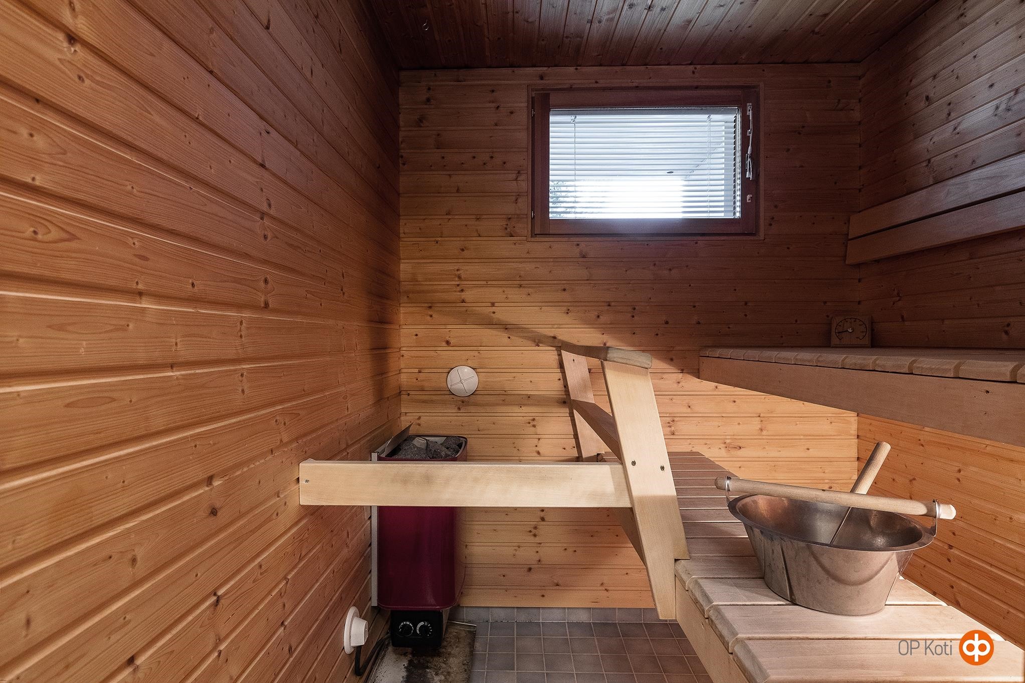 - Sauna, sähkökiuas, kylpyhuone, erillinen wc, suihkuseinä, peilikaappi Myös kylpyhuoneessa, allaskaappi, pesukoneliitäntä, lattialämmitys Alakerrassa kauttaaltaan ja yläkerrassa wc ja tuulikaappi, kiinteät valaisimet.