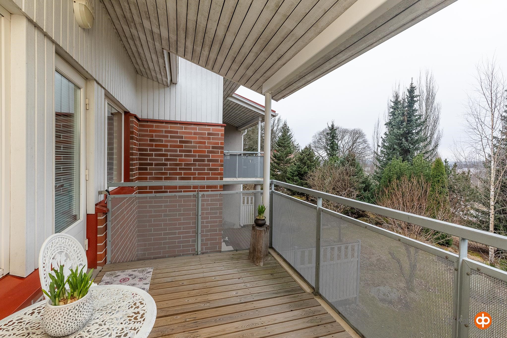 - Parvekkeen ja alaterassin ikkunat, sekä olohuone ja makuuhuoneitten ikkunat lännen suuntaan. Idän suuntaan on vain keittiön ikkuna ja sisäänkäynti.