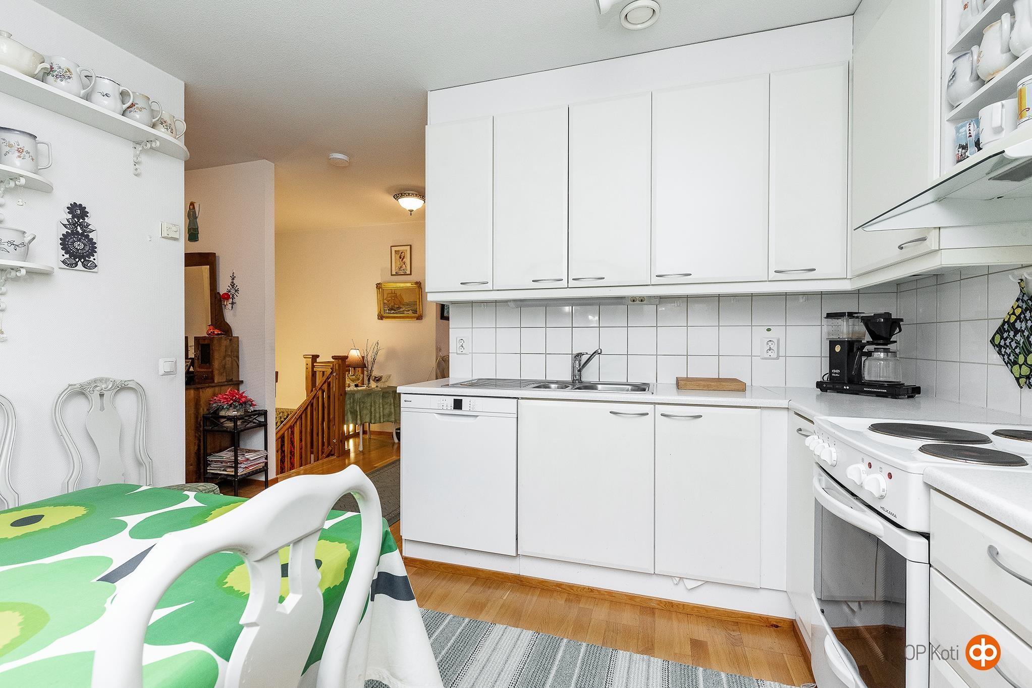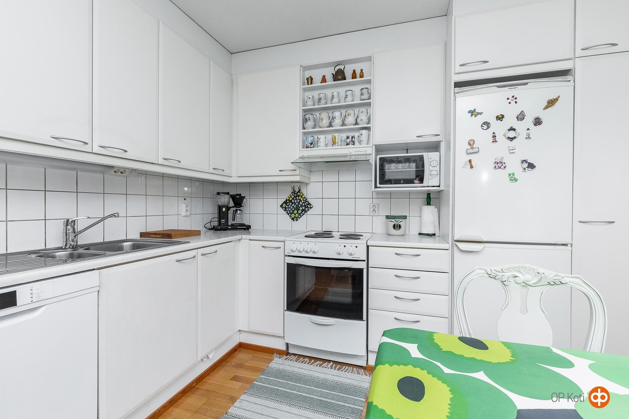 - Jääviileäkaappi, sähköliesi, liesikupu, astianpesukone, kiinteät valaisimet.