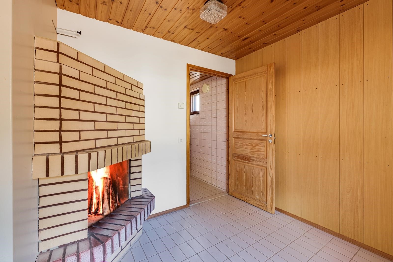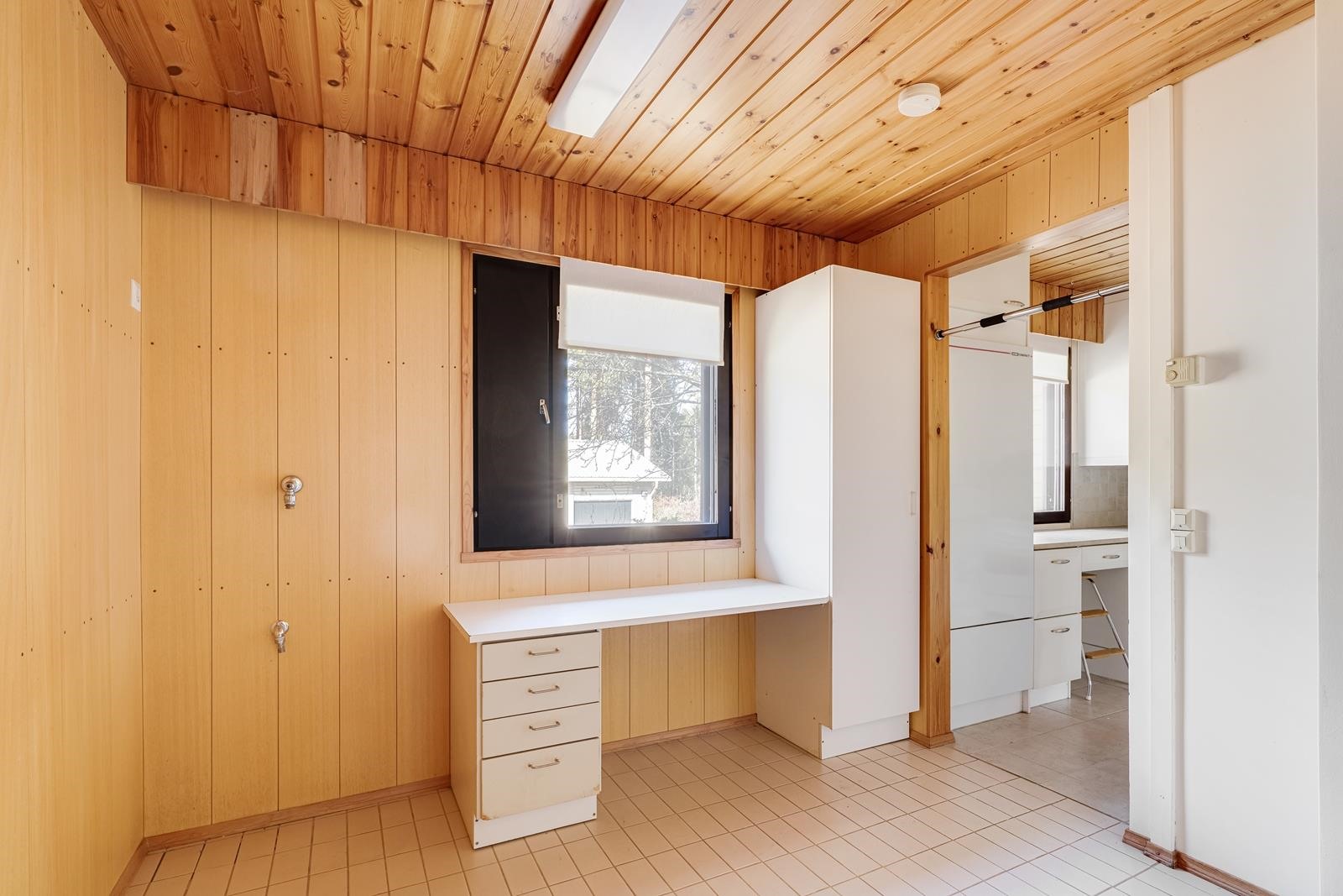Keittiö: Lattia laatta. Olohuone: Lattia laminaatti, seinät maalattu. Makuuhuone 1: lattia muovimatto, seinät tapetti. Makuuhuone 2: lattia muovimatto, seinät maalattu. Wc: lattia laatta, seinät laatta. Takkahuone: lattia laatta, seinä maalattu, puupaneeli.