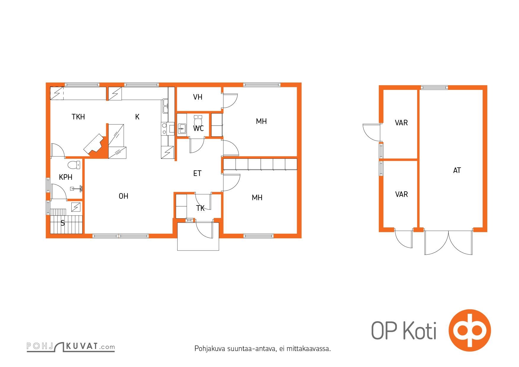 - 2 mh, tupakeittiö, wc, tkh, psh, s, vh