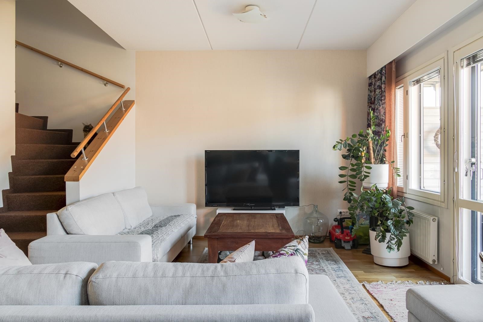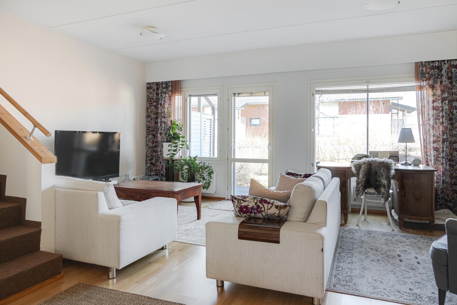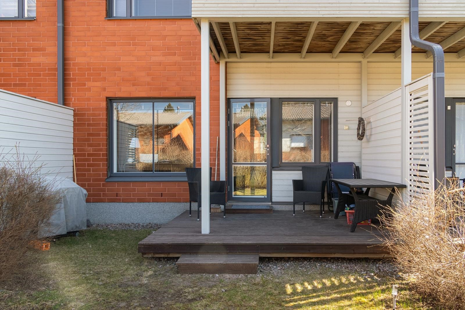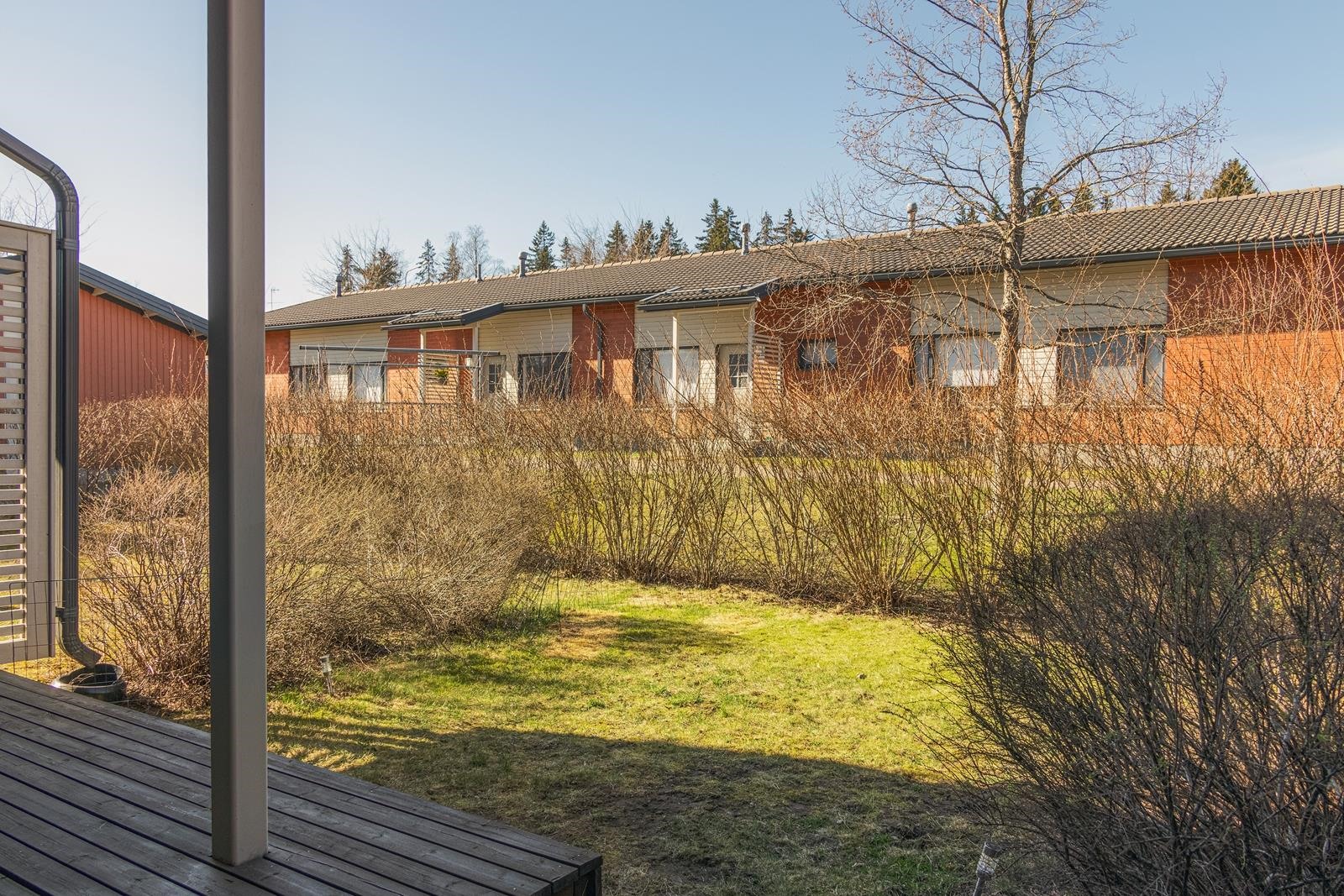 Valoisasta olohuoneesta on kulku omalle terassille ja pihalle, jotka tuovat lisätilaa asumiseen suuren osan vuodesta. Oma piha tarjoaa mahdollisuuden niin oleskeluun kuin pieneen puutarhaharrastukseen. Asunnon yleisilme on pidetty erinomaisessa kunnossa, joten muuttamaan pääsee ilman remonttihuolia.
