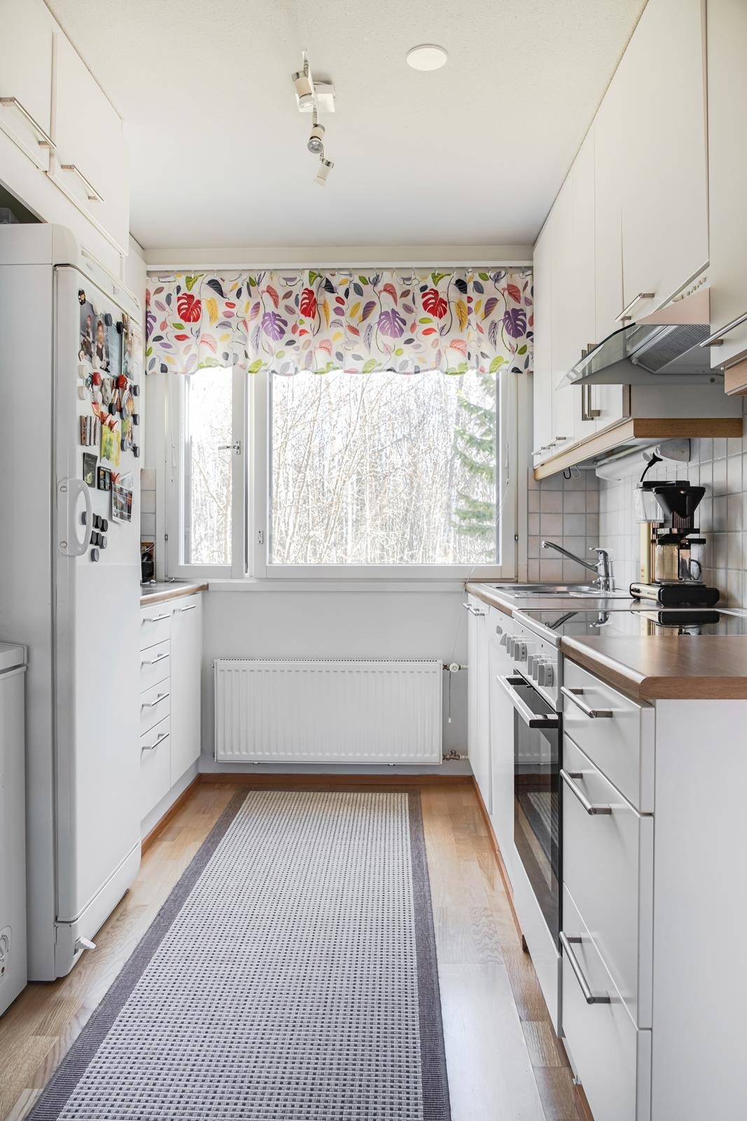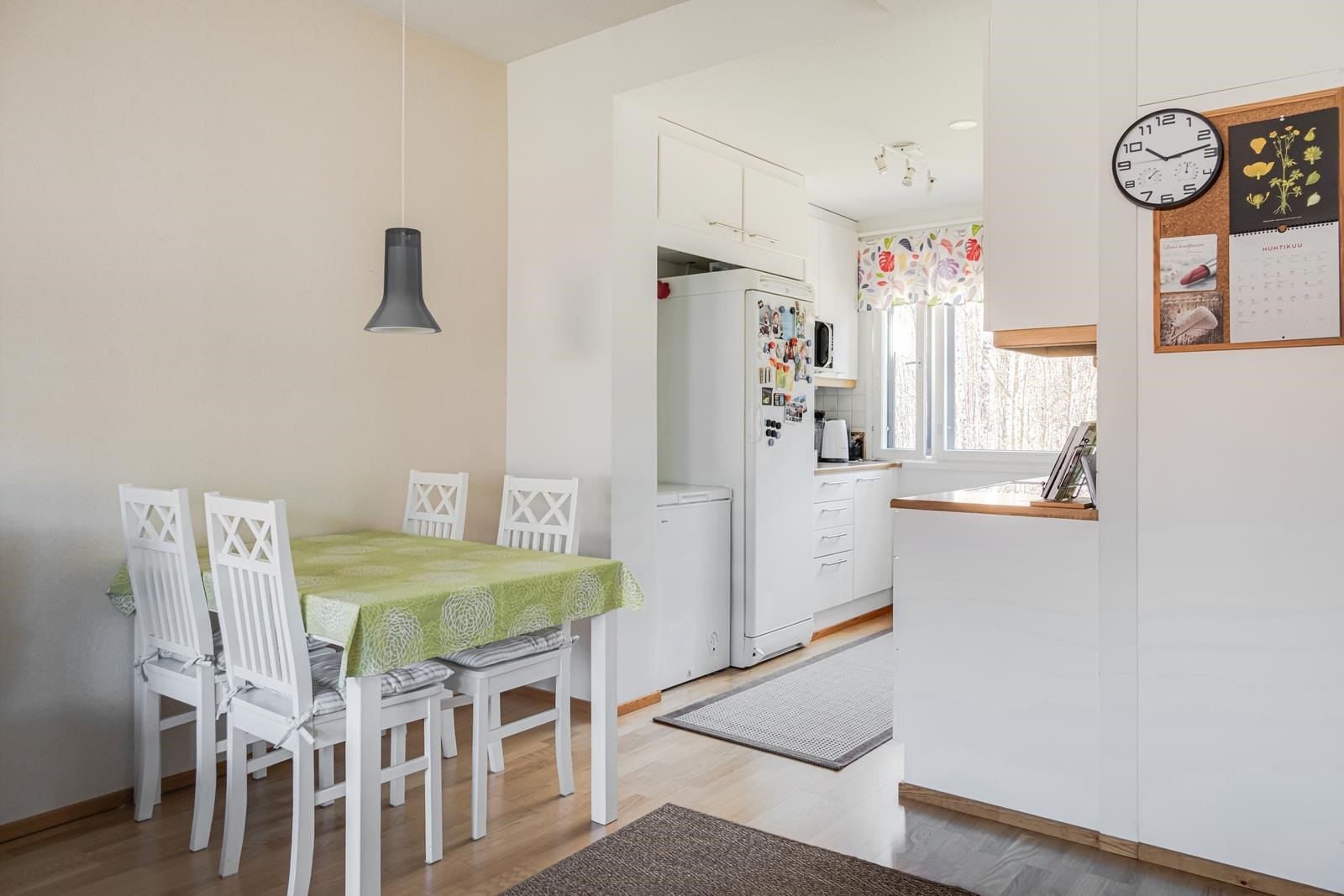 - Jääkaappipakastin, lattialiesi, keraaminen liesi, liesituuletin, astianpesukone, kaapistot, kiinteät valaisimet.