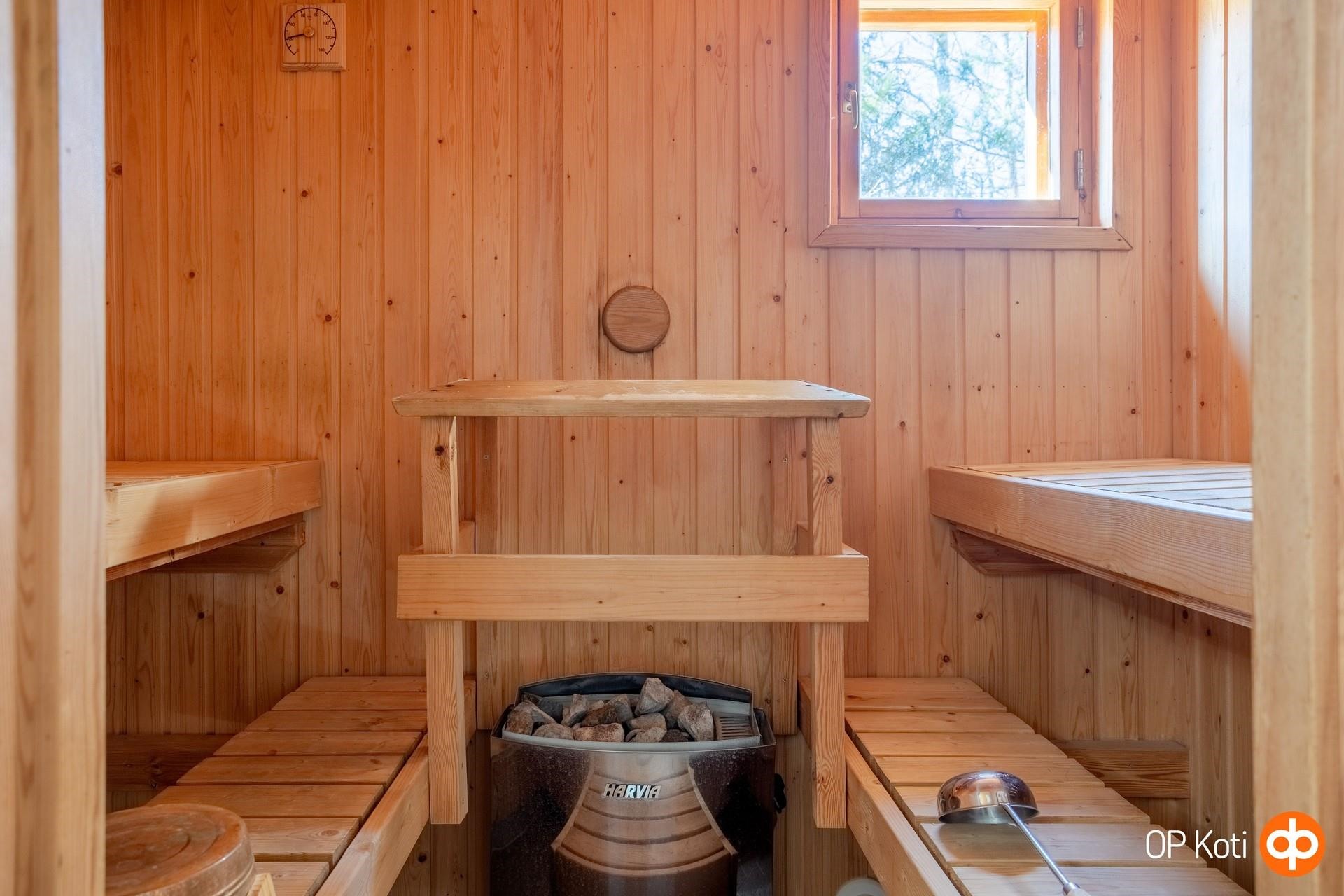 - Sauna, sähkökiuas, kylpyhuone, erillinen wc 2 kpl, suihku, pesukoneliitäntä pukuhuone/khh.