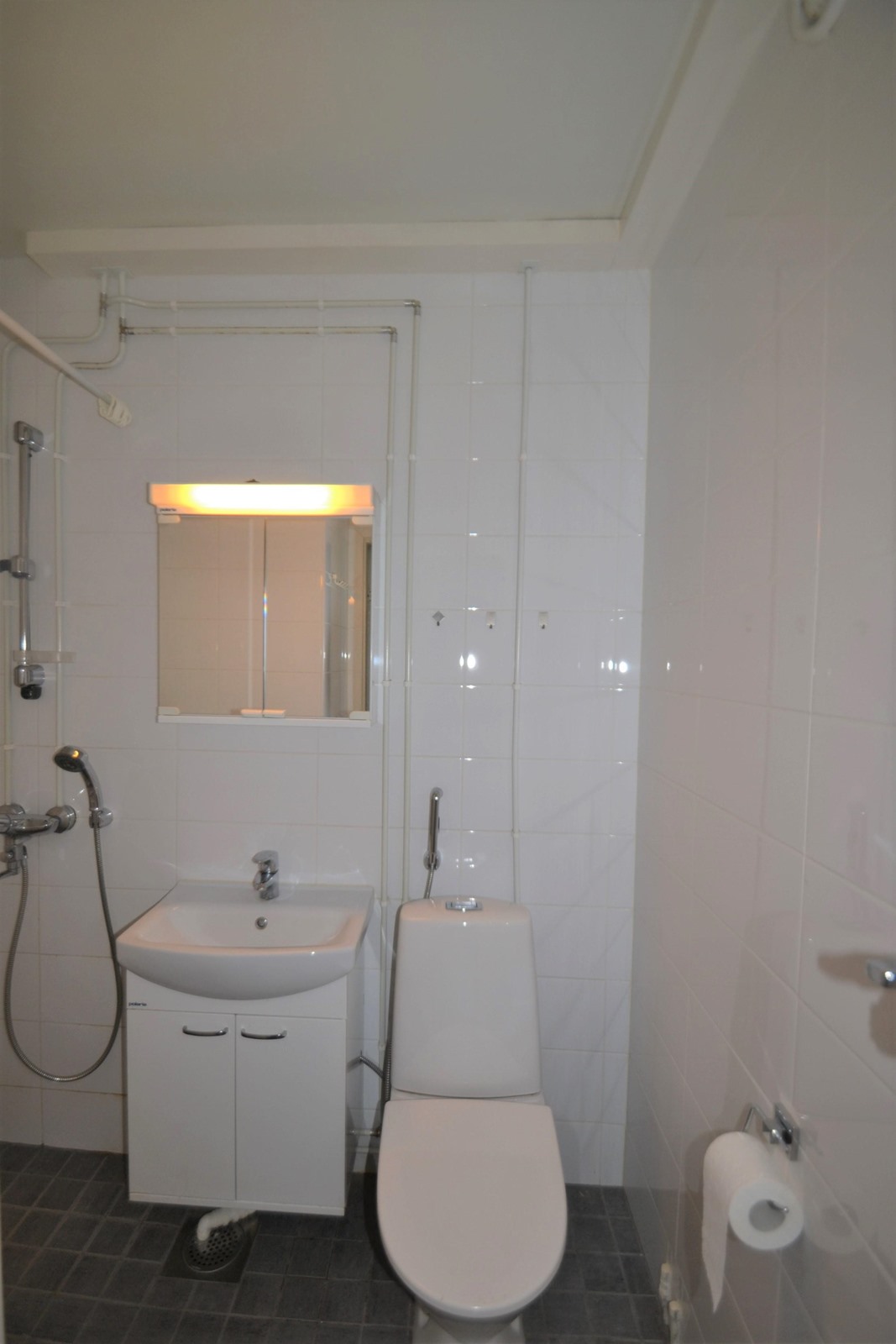- Suihku, peilikaappi, pesukoneliitäntä.