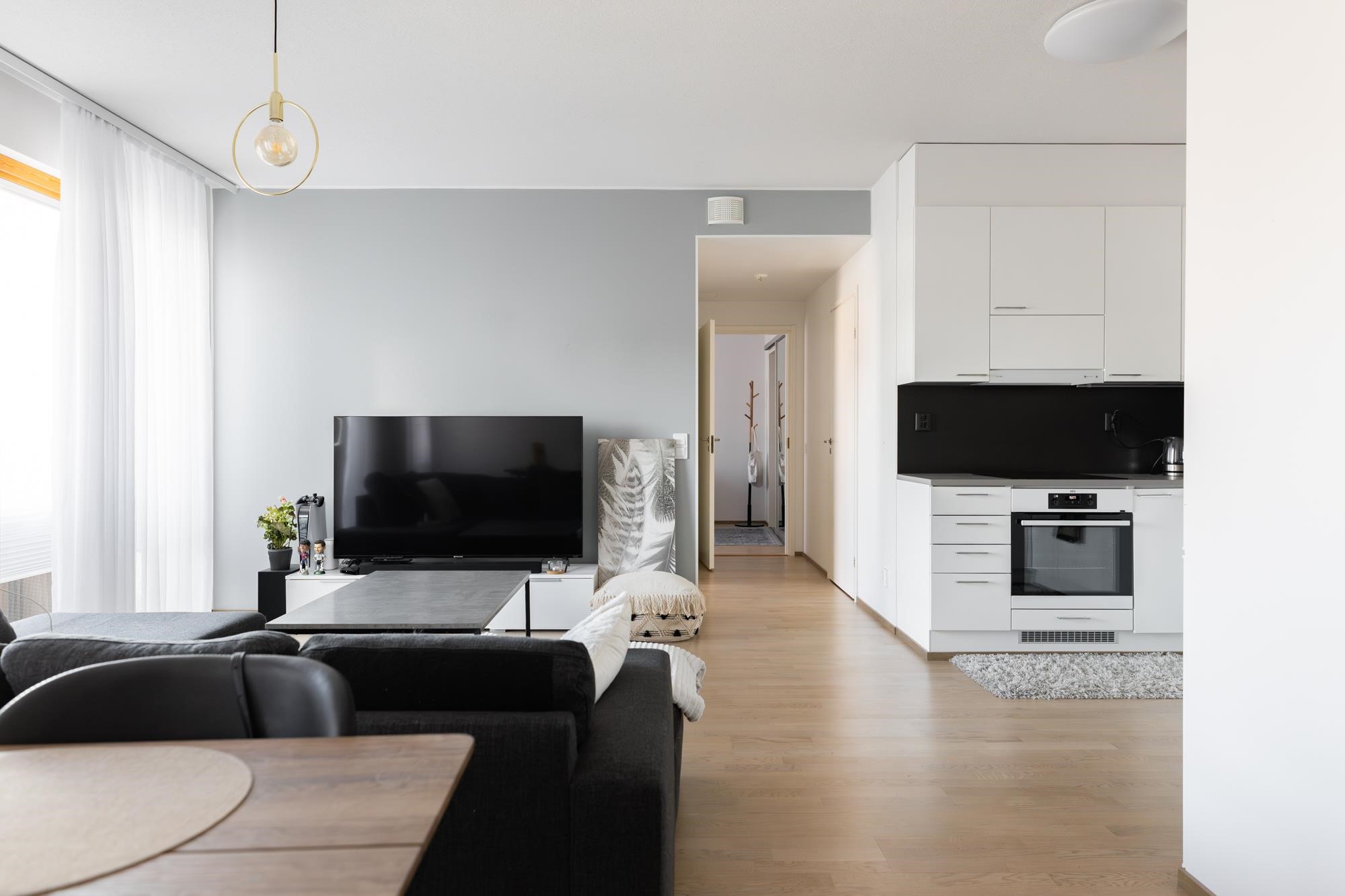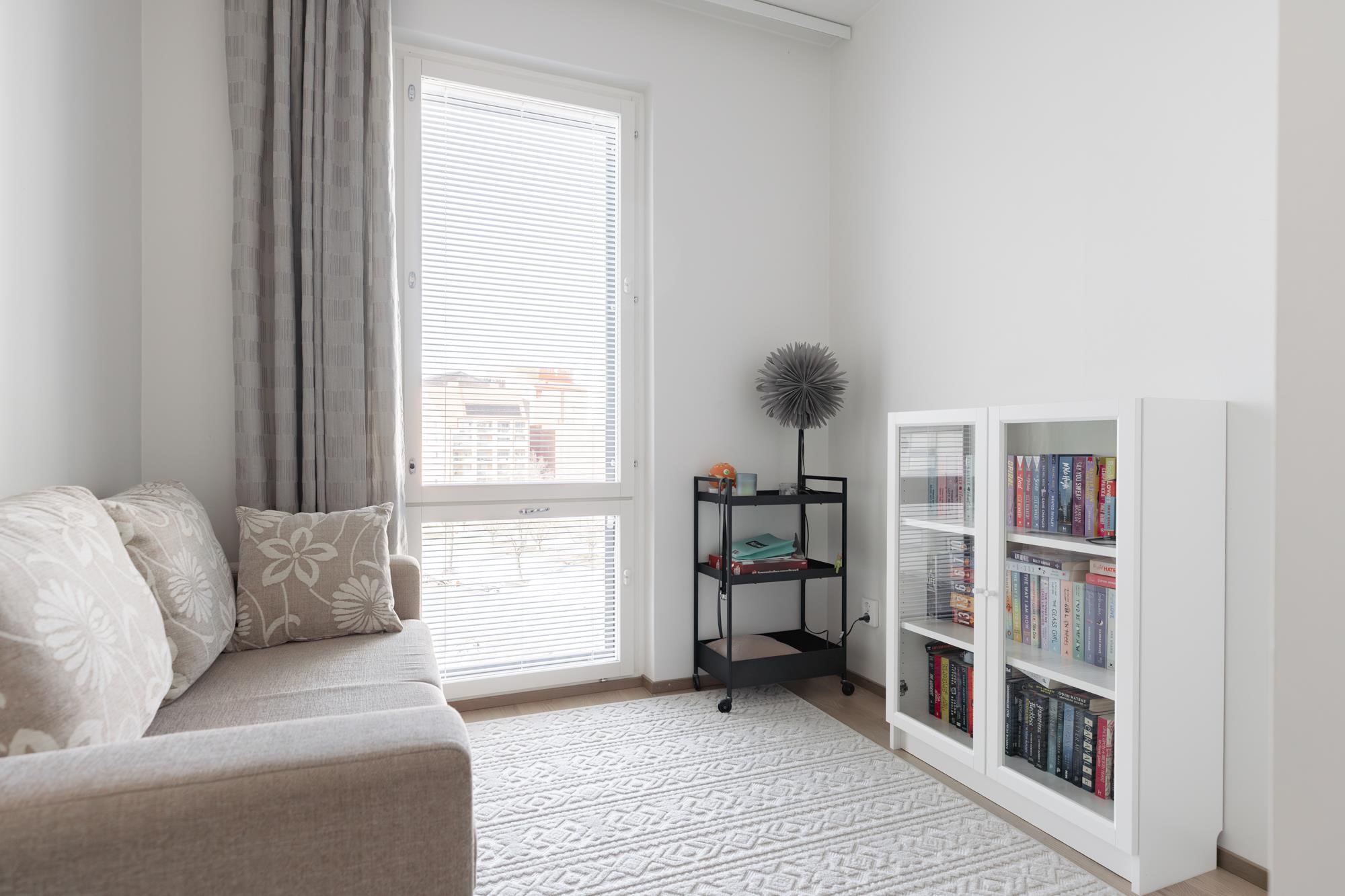 Mukavana lisänä on erillinen wc, joka sujuvoittaa arkea. Viihtyvyyttä lisää lasitettu parveke, jossa rentoudut aikaisesta keväästä pitkälle syksyyn. Asunnon suuret ikkunat tekevät kodista valoisan kaupunkiasunnon, jossa asuminen on vaivatonta ja leppoisaa.