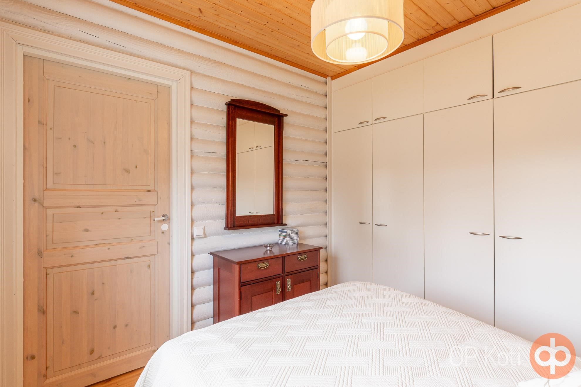 - Kylpyhuone, suihku, peilit, kaapit, allaskaappi, lattialämmitys, kiinteät valaisimet. Pesukoneliitäntä saunarakennuksessa.