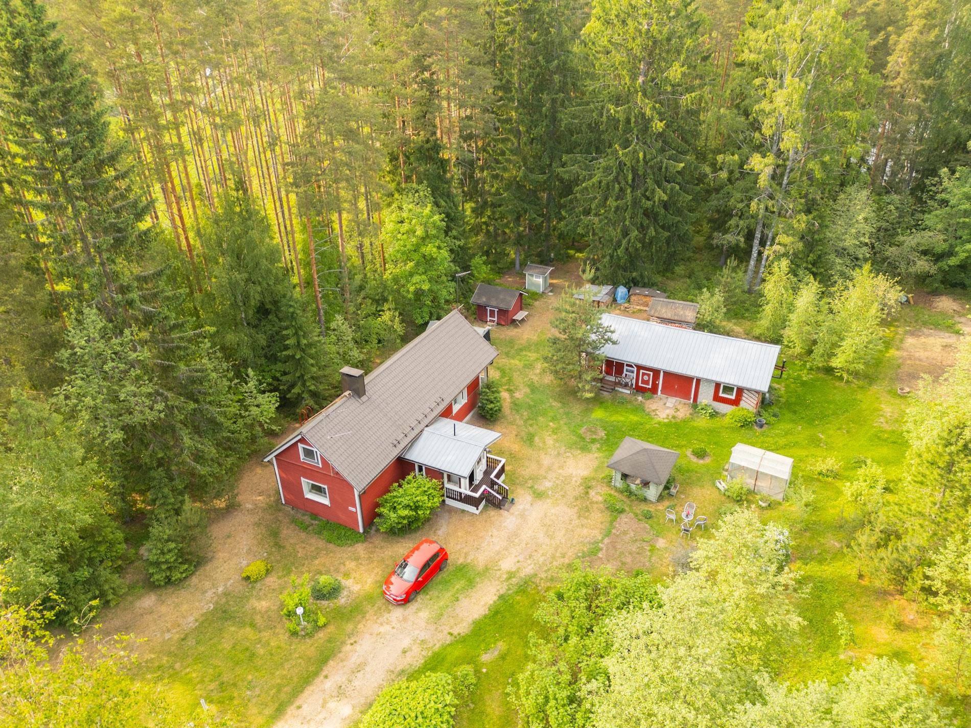 Päärakennus on peruskorjattu ja laajennettu 2005. Päärakennus on ympärivuotisesti asuttava (omakotitalo) ja löydät esimerkiksi sisältä vessan ja suihkun. Lämmitysmuotona toimii lattialämmitys, varaava takka ja sähköpatterit. Makuuhuoneita on yhteensä kolme, ylhäällä kaksi ja alhaalla laajennetulla puolella yksi isompi. Pihapiiristä löydät kaksi aittaa, ulkohuussin, ison verstaan ja erillisen rantasaunan!