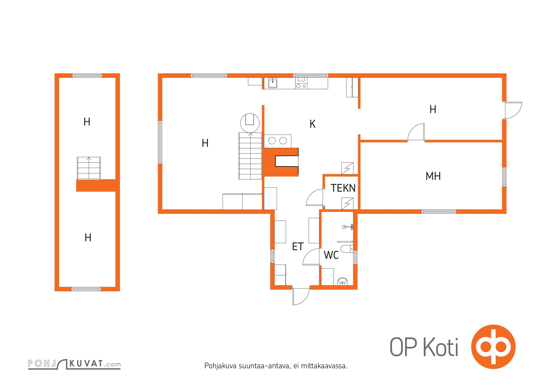 - oh, k, 2mh, kph/wc + yläkerrassa 2 huonetta