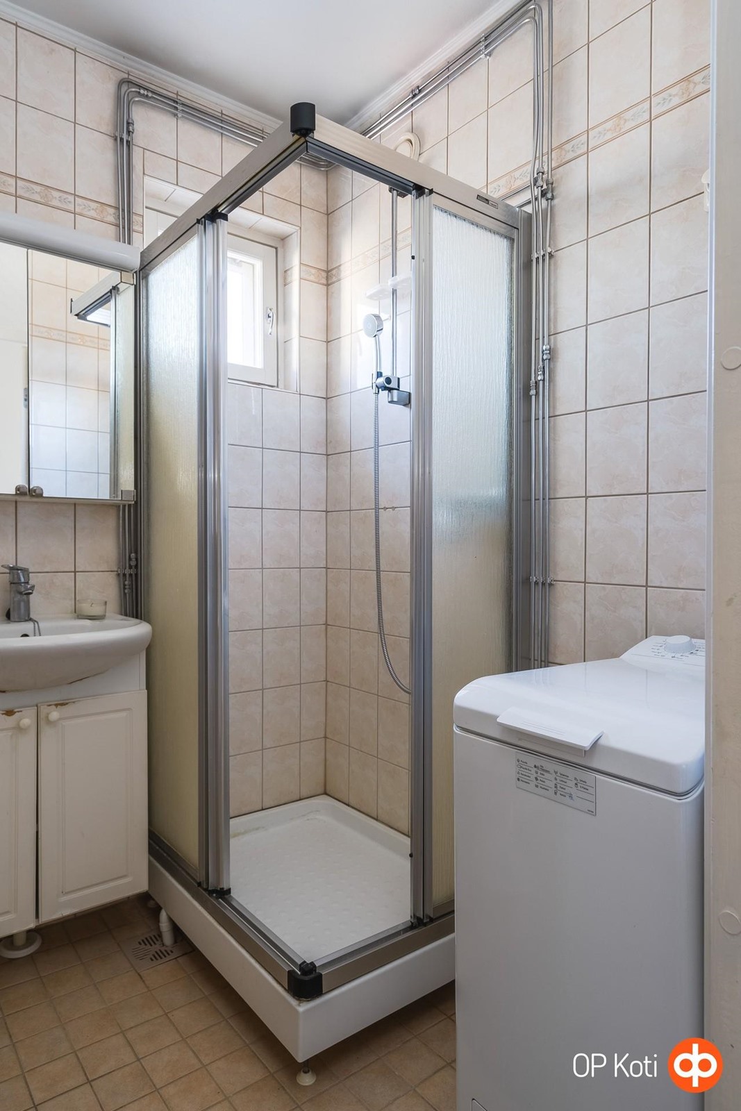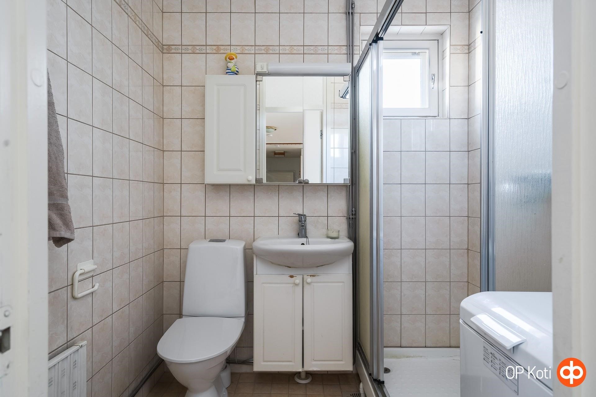 - Kylpyhuone, suihku, peilikaappi, pesukoneliitäntä, kiinteät valaisimet.