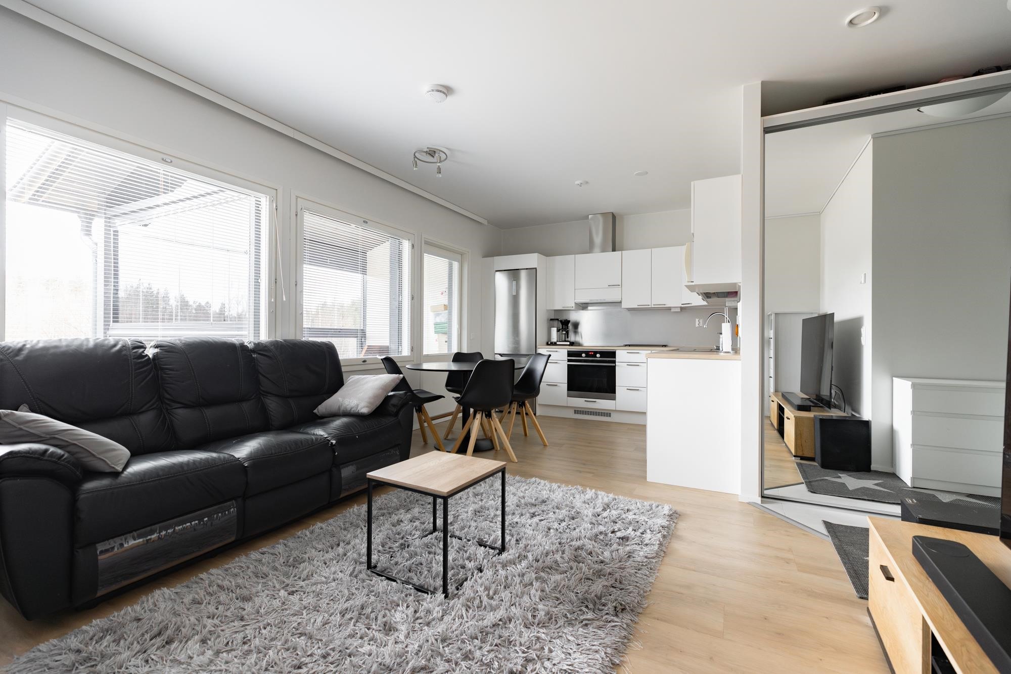 Tarjolle viihtyisä ja sopivan kokoinen 65 m²:n saunallinen kolmio suositulta ja kehittyvältä Kärjen asuinalueelta. Asunnon valoisa ja selkeä pohjaratkaisu palvelee monenlaisia asumistarpeita. Erityisesti toinen makuuhuoneista on tavallista suurempi, ja länteen, suojaisalle suunnalle oleva lasitettuparveke tuo mukavasti lisää oleskelutilaa arkeen.