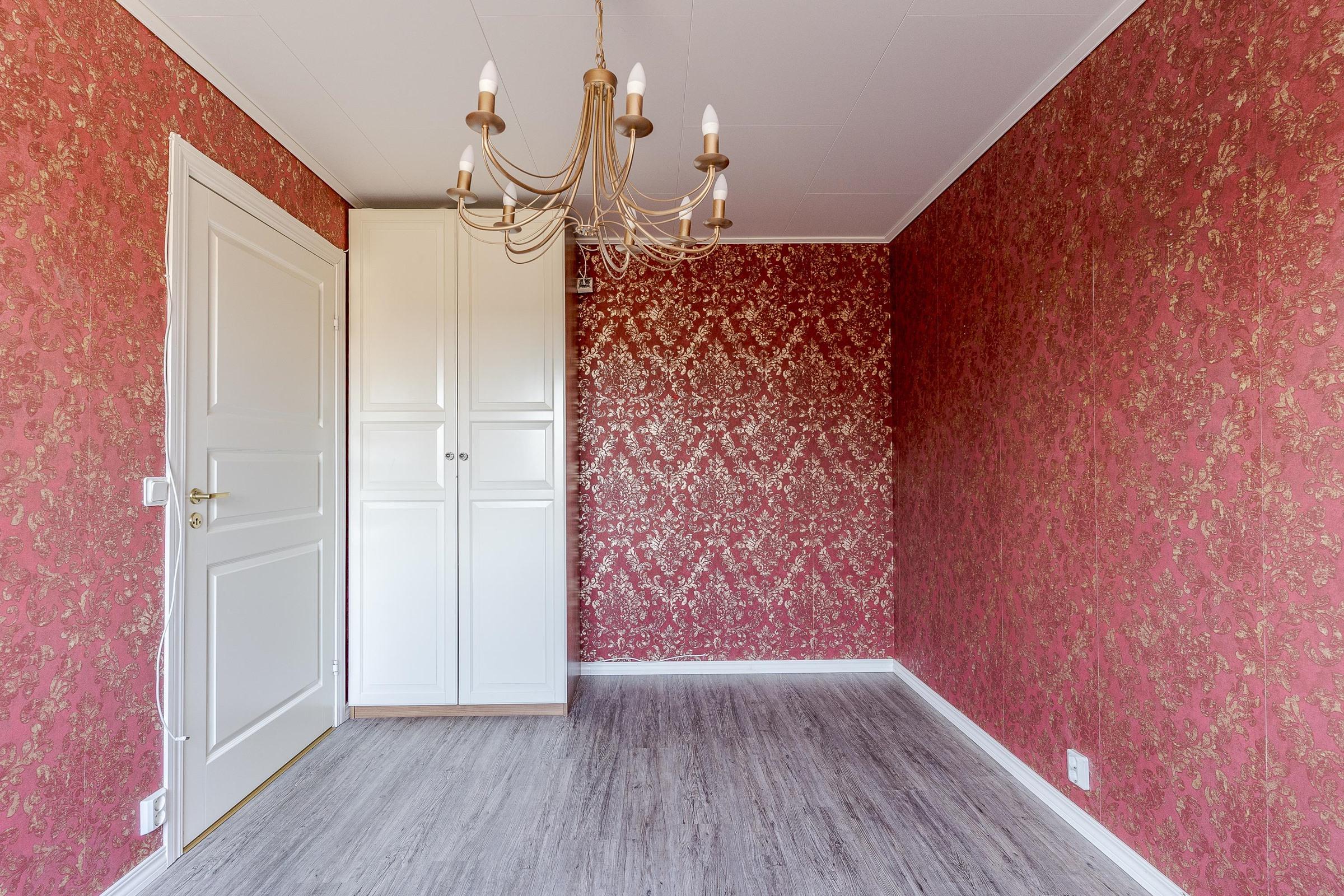 Keittiö: Vinyylilankku ja tapetoidut seinät. Olohuone: Vinyylilankku ja tapetoidut/maalatut seinät. Makuuhuone 1: Laminaattilattia ja tapetoidut seinät. Sauna: Vinyylimatto ja puuseinät. Kylpyhuone: Lattia ja seinät vinyyli. Eteinen: Vinyylilankku ja maalatut seinät. Wc: Laminaattilattia ja maalatut seinät.