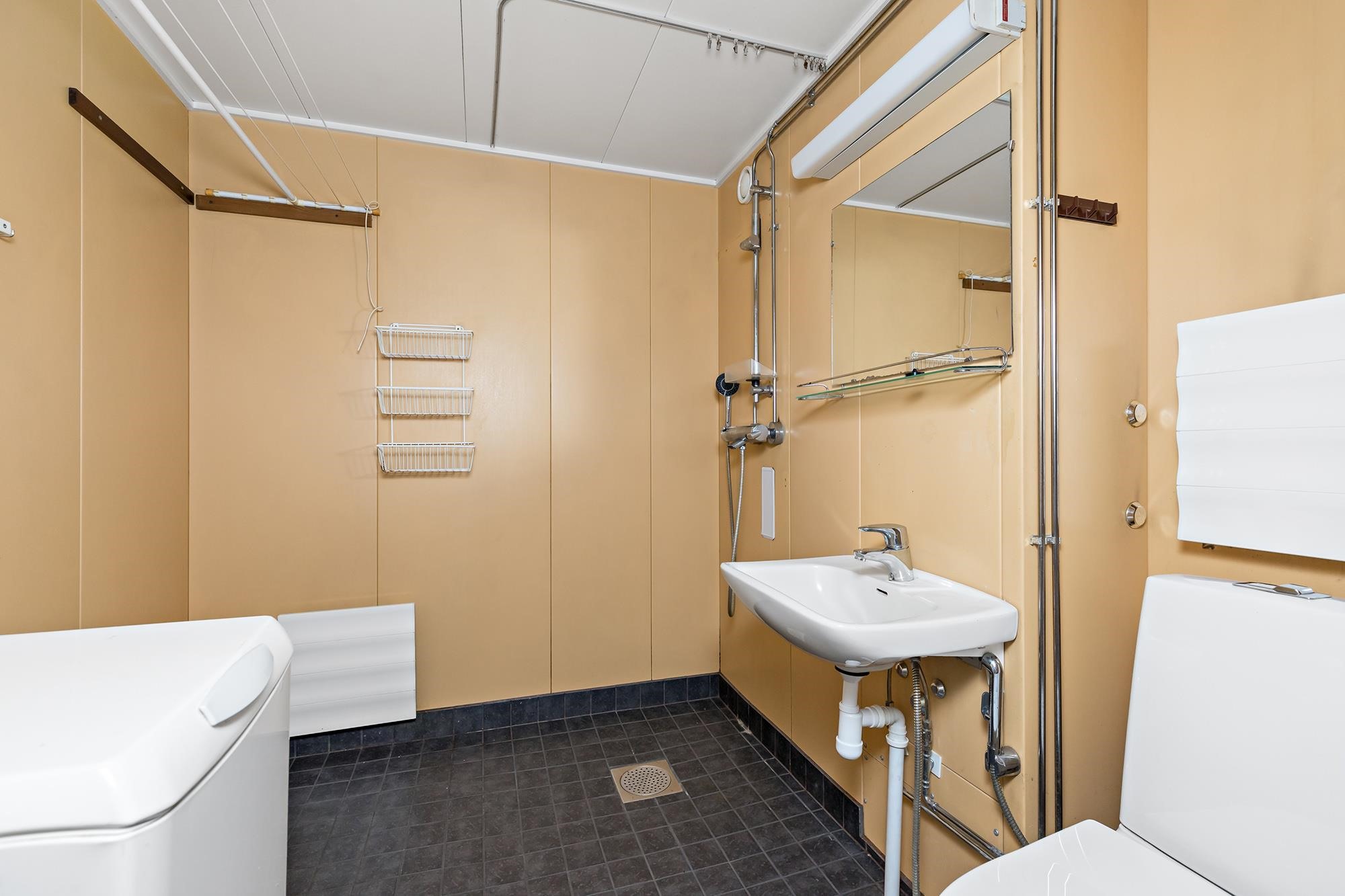 - Kylpyhuone, suihku, peilit, pesukoneliitäntä, kiinteät valaisimet.