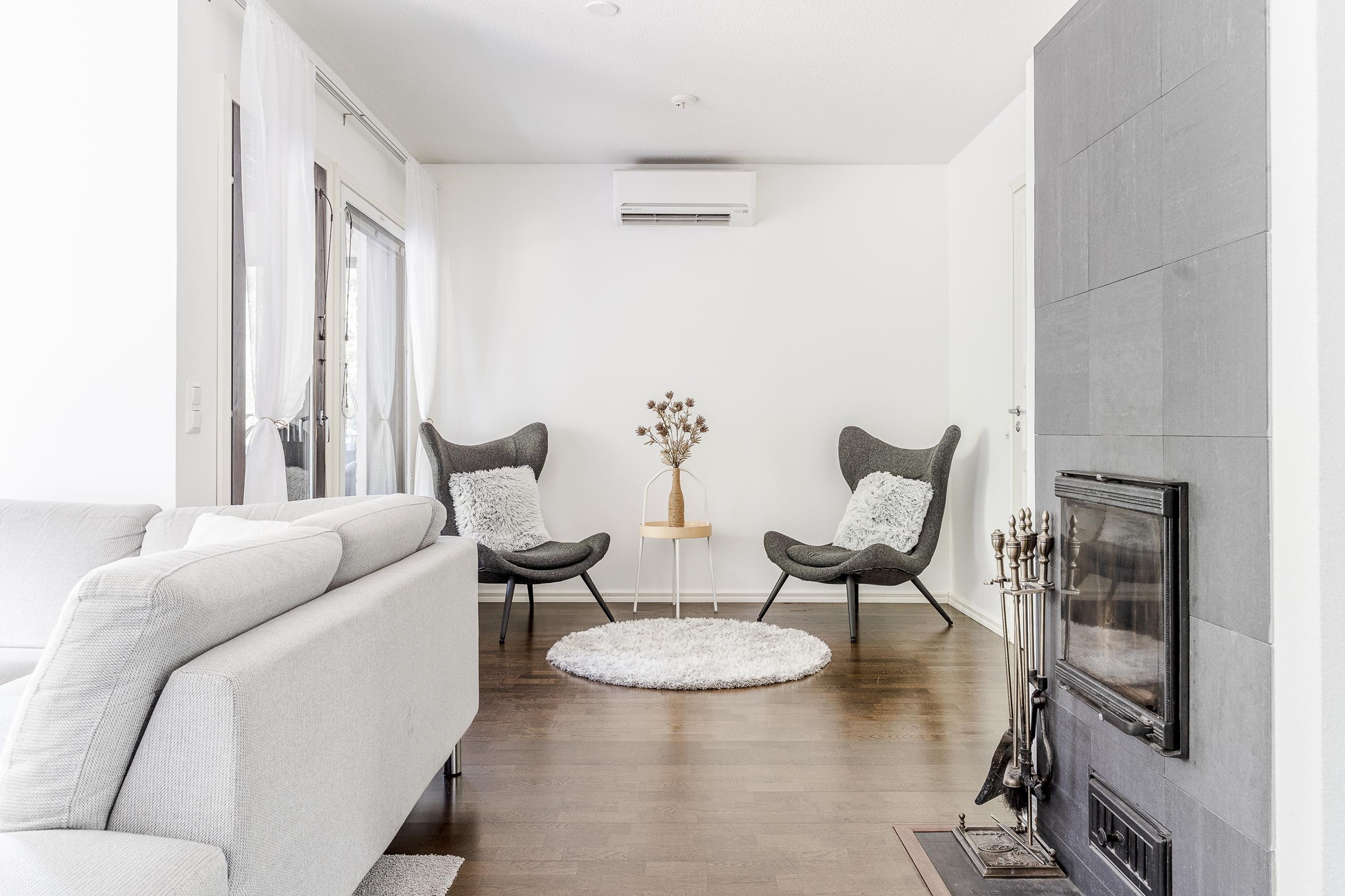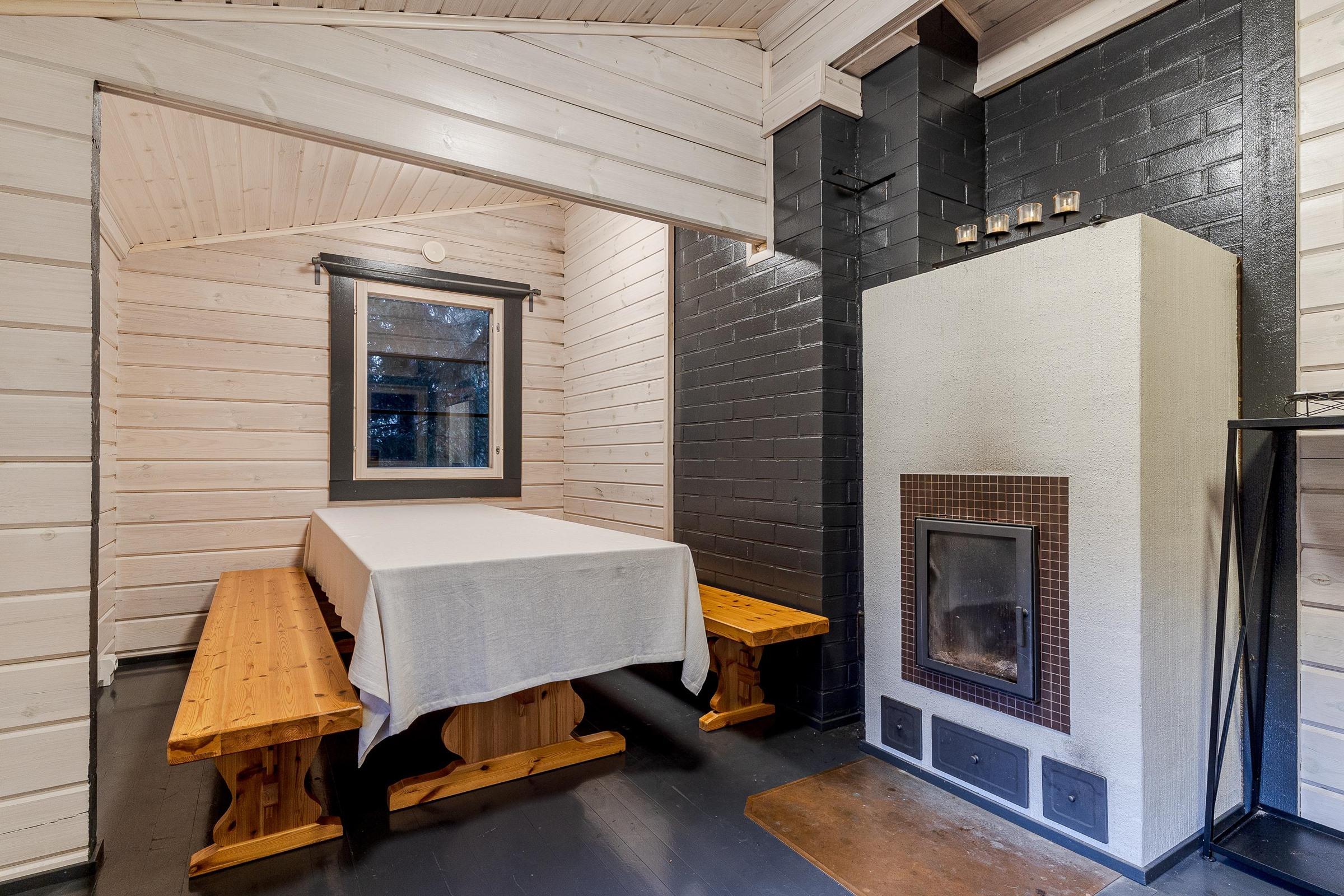 - Sähkö. Avustavana järjestelmänä varaava takka, puuhella ja ilmalämpöpumput (takkahuoneessa ja autotallissa).