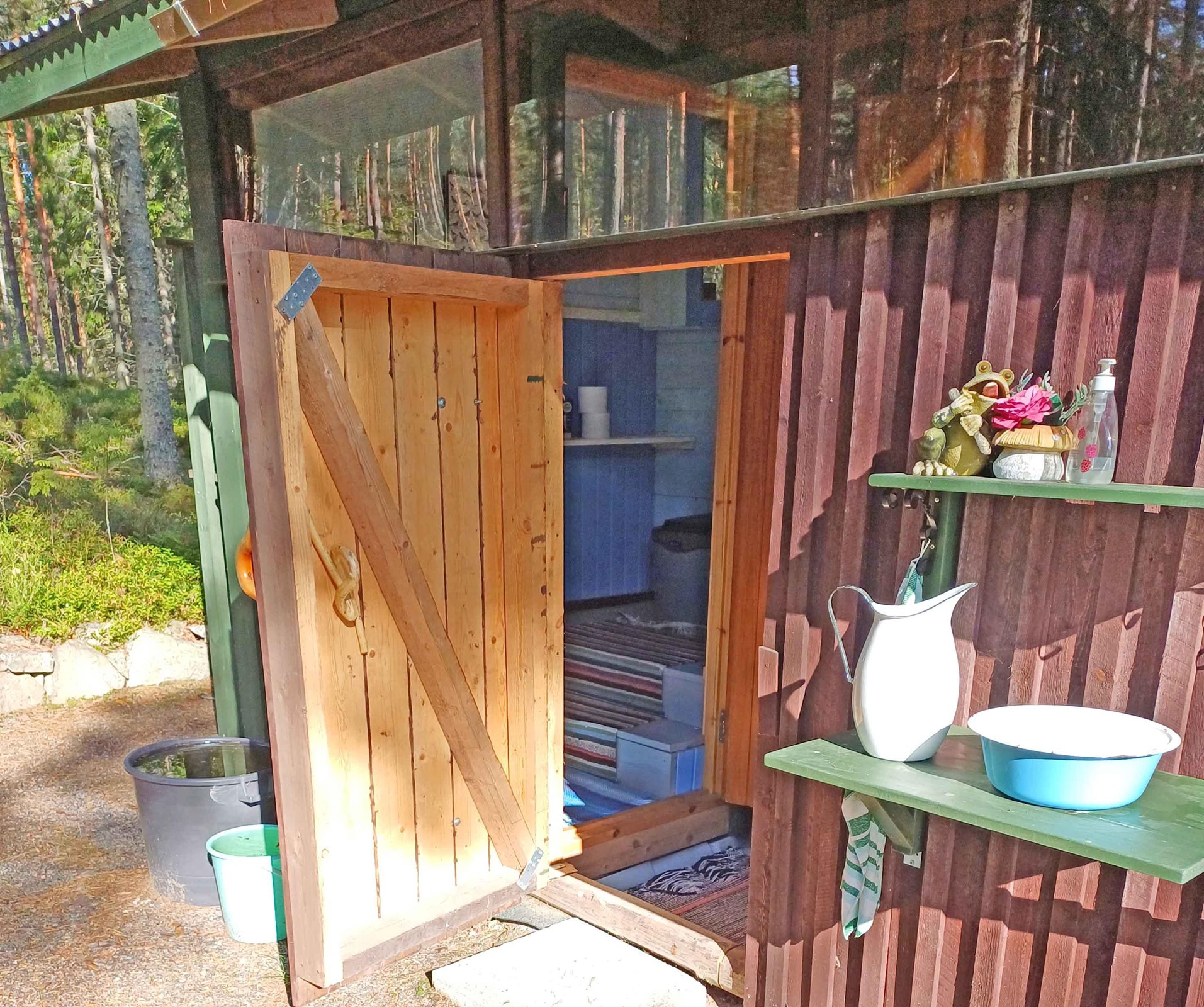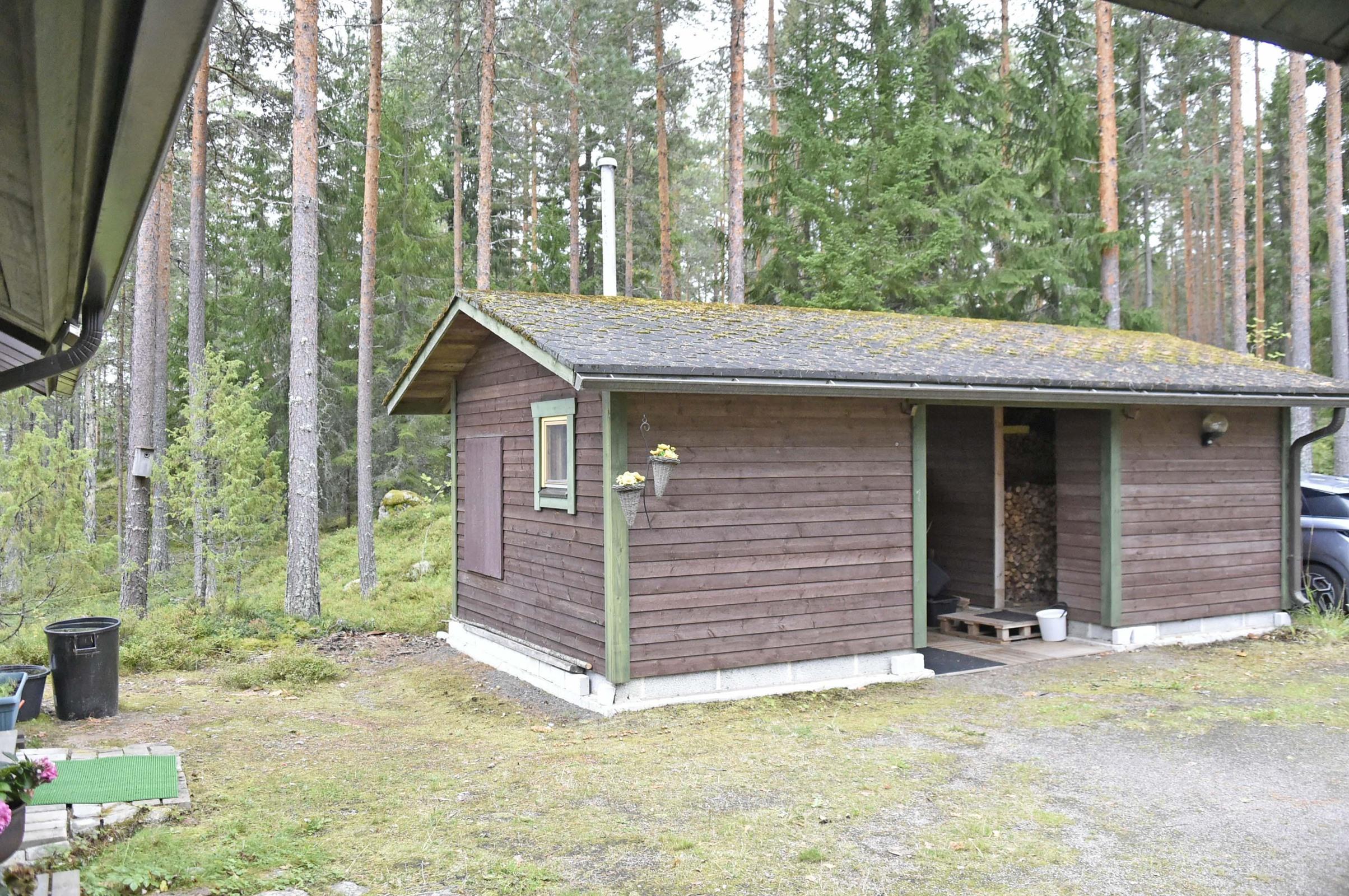 - Sauna Erillinen saunarakennus, puukiuas, kylpyhuone, suihku, suihkuseinä, peilikaappi, kaapit, allaskaappi, pesukoneliitäntä, lattialämmitys, kiinteät valaisimet. Vesi wc, suihku.