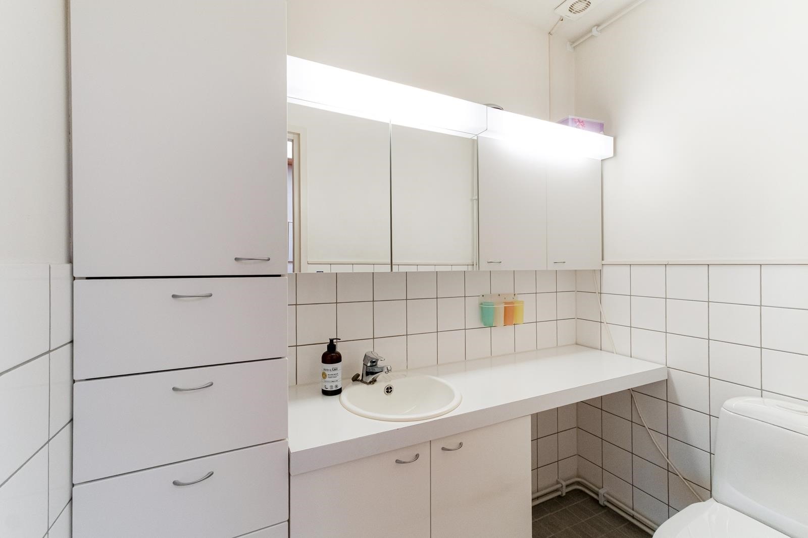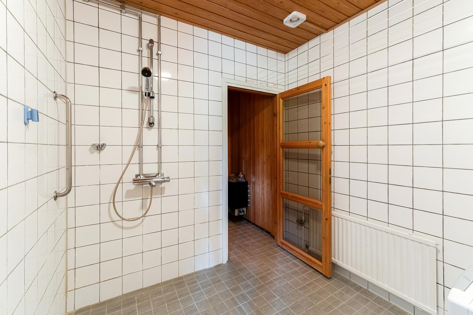 - Sauna, sähkökiuas, kylpyhuone, erillinen wc, suihku, pesukoneliitäntä, lattialämmitys pesuhuone, wc, kiinteät valaisimet.