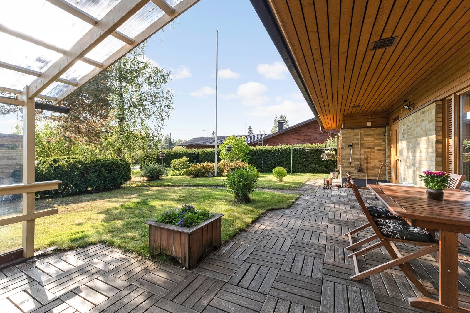 - Terassi julkisivupuoli etelään